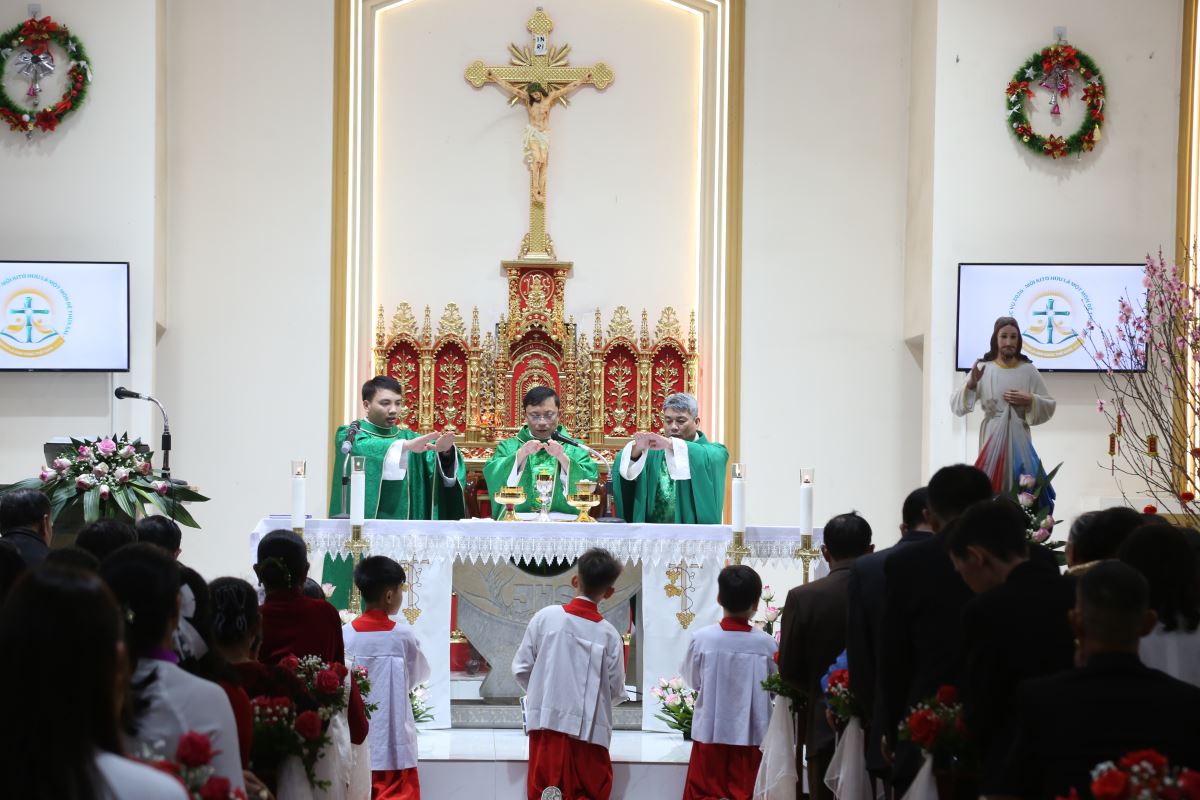 WGPHH - Tối thứ Bảy, ngày 14/02/2026 – đúng ngày lễ Valentine, tại Giáo xứ Sơn Đông, Đức cha Phaolô Nguyễn Quang Đĩnh, Giám mục Phụ tá Giáo phận Hưng Hóa, đã chủ sự Thánh lễ Tạ ơn mừng kỷ niệm hôn nhân cho 30 đôi vợ chồng trong giáo xứ. Đồng tế với Đức cha có cha xứ Giuse Nguyễn Đình Tuyến và cha phó Vinh Sơn Bùi Mạnh Cừ. Hiệp dâng Thánh lễ còn có quý thầy, thân nhân các gia đình cùng đông đảo cộng đoàn dân Chúa.