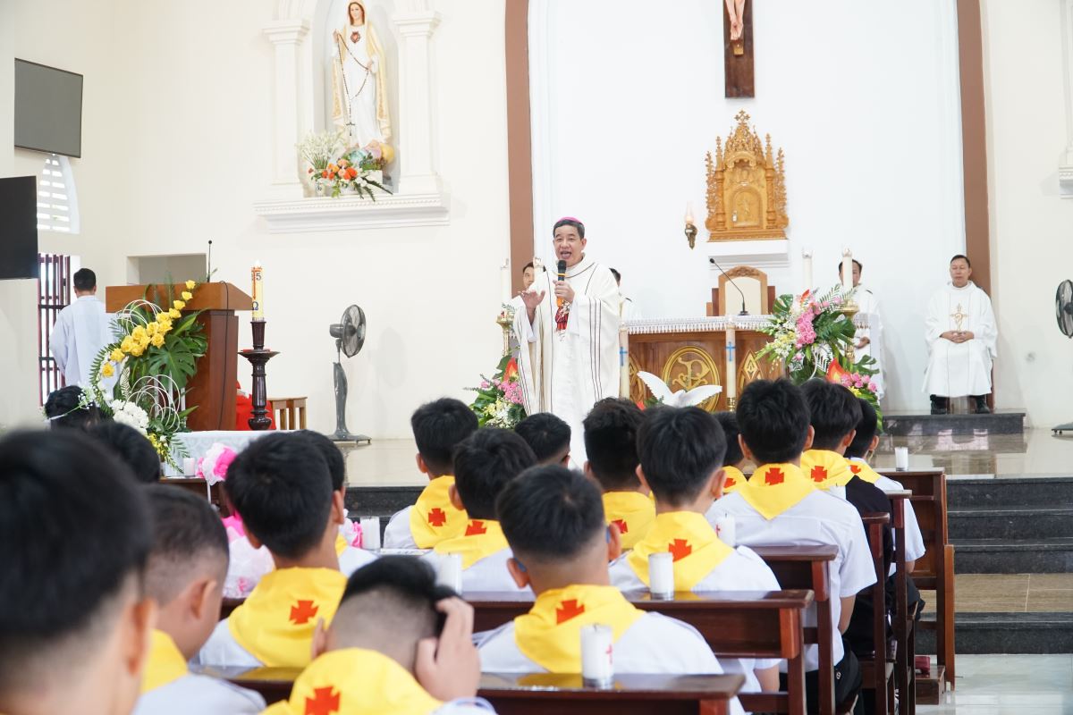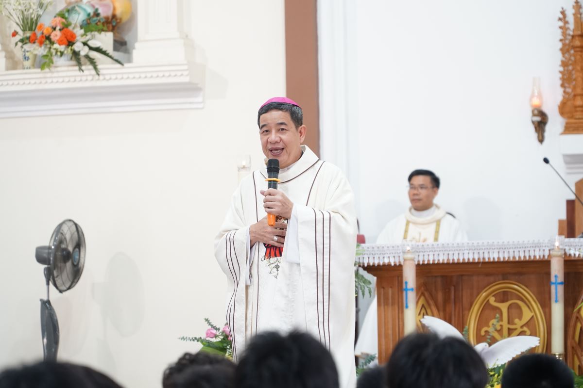 “Nhờ ơn Chúa Thánh Thần, chúng ta được vững mạnh trong đức tin, đức cậy và đức mến; được sống giữa đời như chứng nhân của Chúa và được thúc đẩy yêu thương phục vụ tha nhân.” Ngài mời gọi cộng đoàn hiệp ý cầu nguyện cho các em sắp lãnh nhận Bí tích Thêm Sức, đồng thời cầu xin ơn Chúa Thánh Thần thấm đẫm trên từng gia đình và mỗi người.