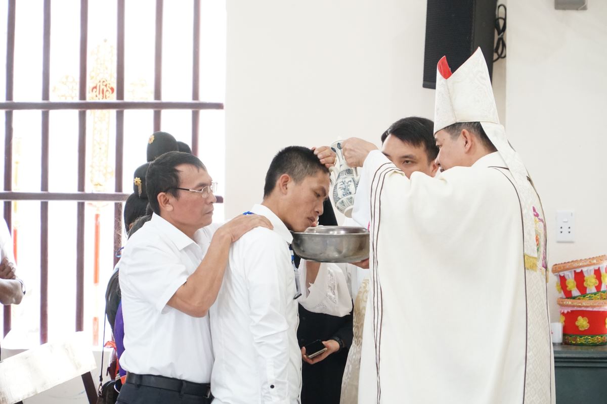 Sau bài giảng, cha xứ Giuse giới thiệu các em đã đủ điều kiện lãnh nhận Bí tích Thêm Sức. Trong bầu khí trang nghiêm và sốt sắng, cộng đoàn cùng các em tuyên xưng đức tin một cách vững vàng. Kế đến, Đức cha đặt tay đọc lời cầu nguyện xin ơn Chúa Thánh Thần. Sau đó, từng em cùng cha mẹ đỡ đầu tiến lên, cúi đầu khiêm tốn lãnh nhận Ấn Tín ơn Chúa Thánh Thần qua việc đặt tay và xức dầu thánh của Đức cha.