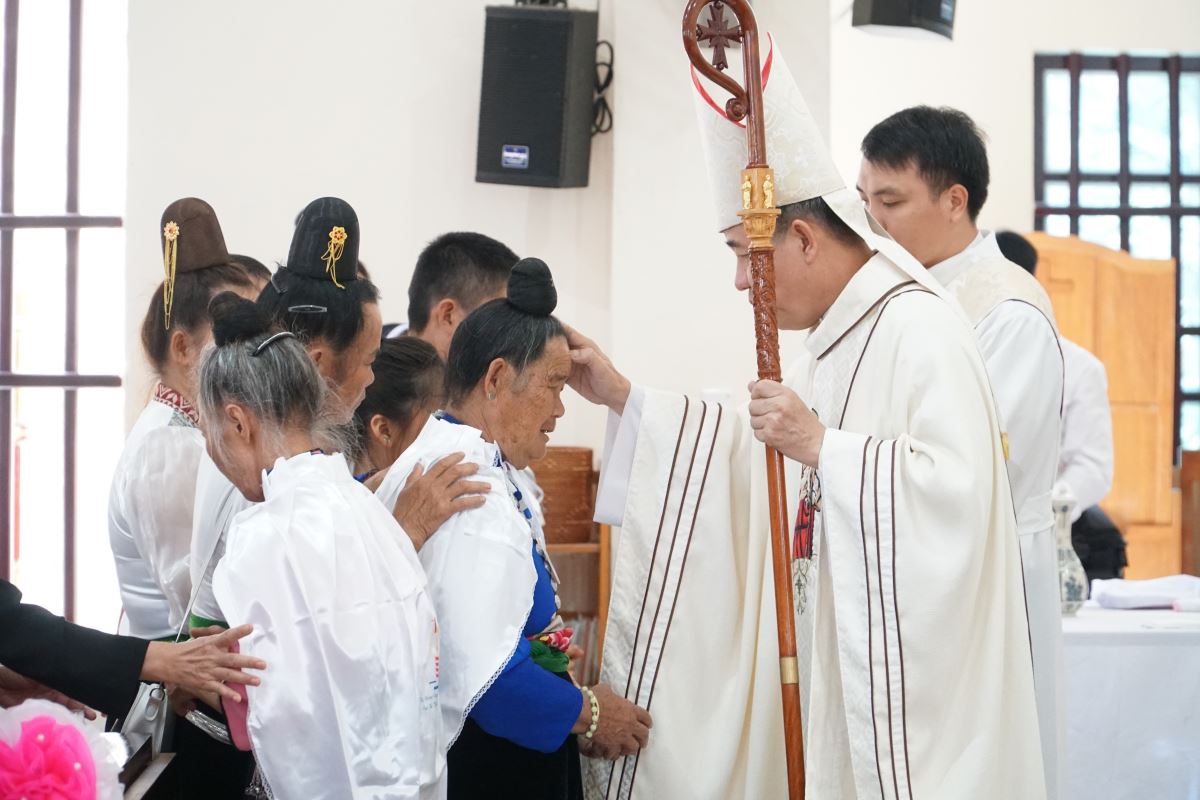 9 anh chị em dân tộc Thái được lãnh nhận các bí tích Khai Tâm Kitô giáo.