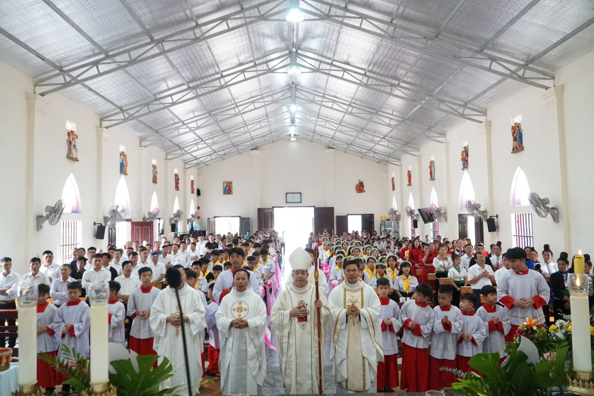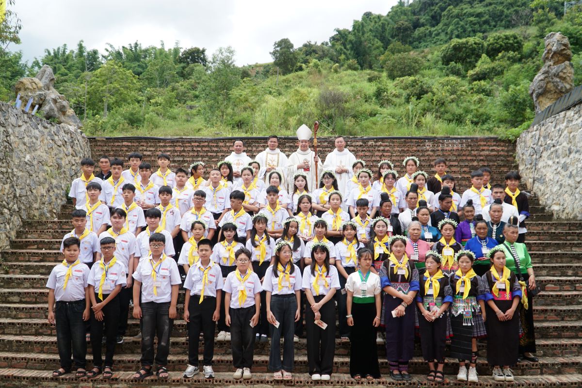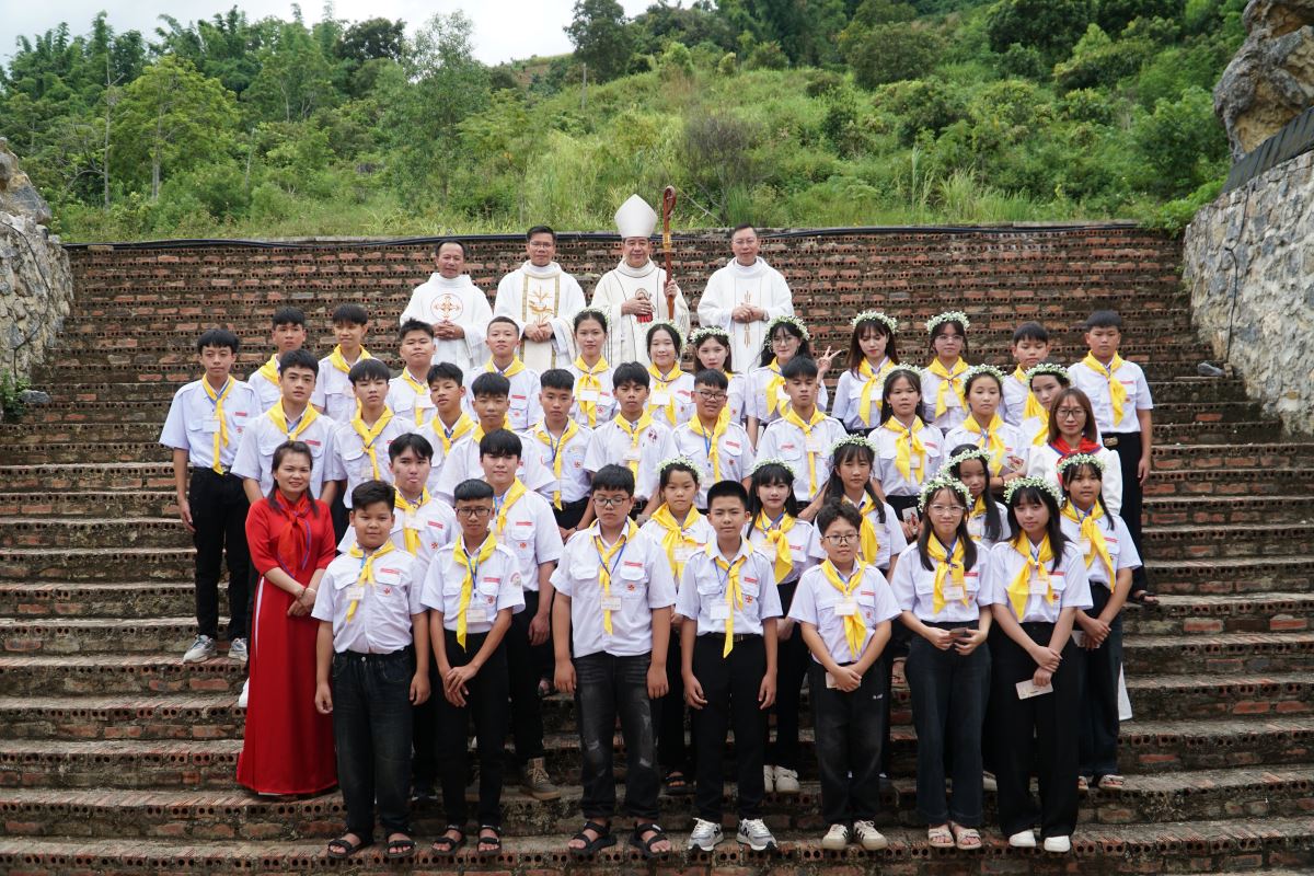 WGPHH – Chúa nhật, ngày 17/8/2025 là một ngày tràn đầy hồng ân đối với cộng đoàn giáo xứ Sơn La, khi có 66 em thiếu nhi được chính Đức cha Đaminh Hoàng Minh Tiến – Giám mục giáo phận Hưng Hóa đặt tay ban Bí tích Thêm Sức.