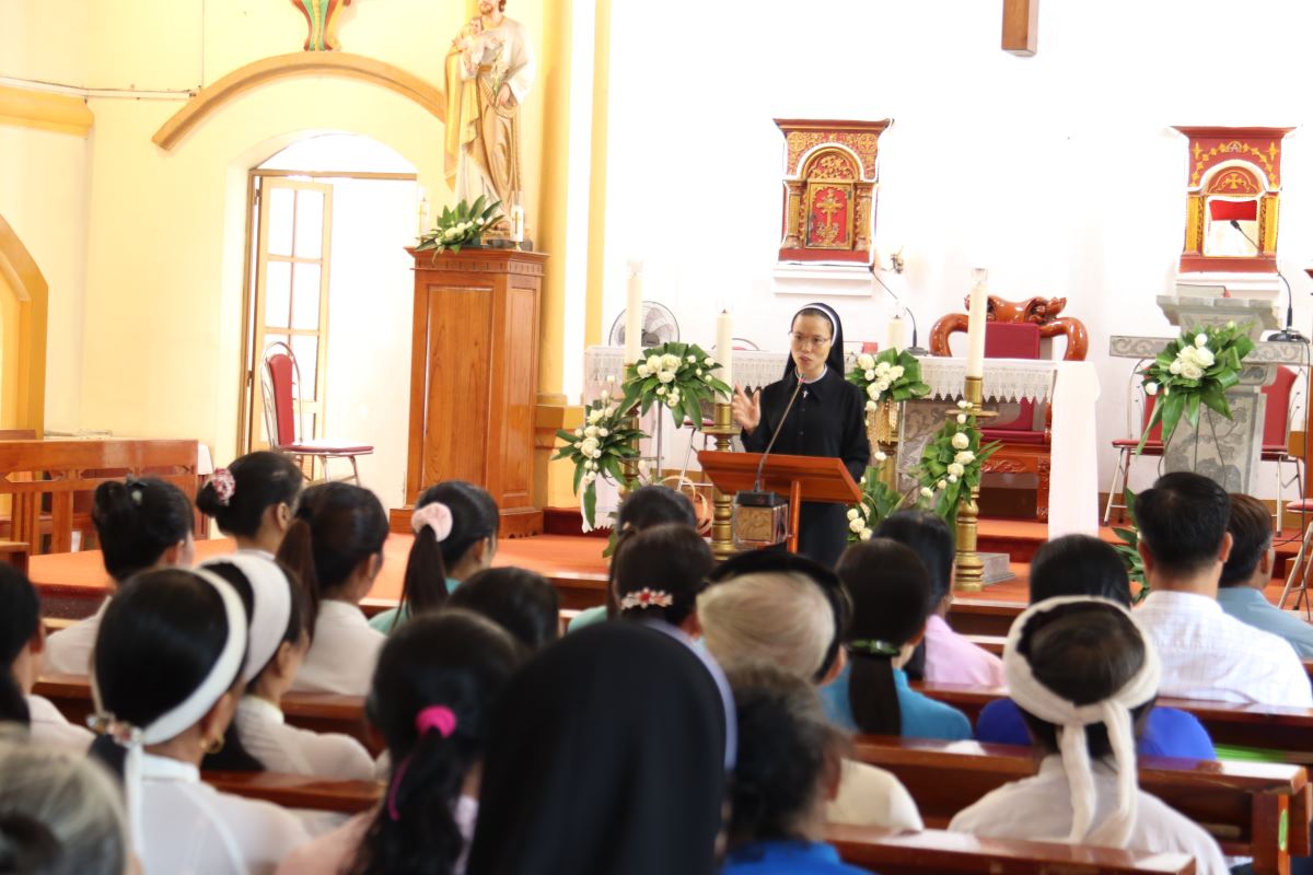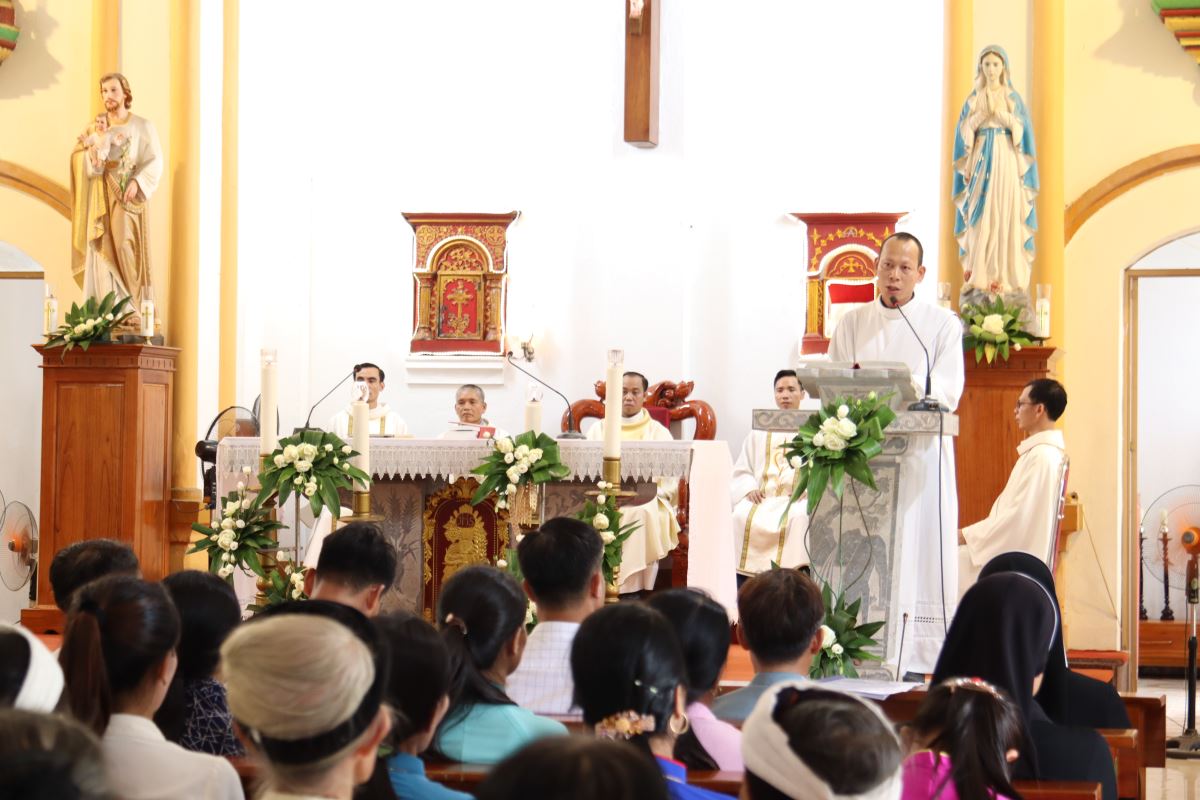 Trong phần giảng lễ, Thầy Phó tế Giuse Vũ Tình Thực khởi đi từ sứ mạng Chúa trao cho các Tông đồ, để nhắn nhủ cộng đoàn: thành công hay thất bại trong cuộc đời không hệ tại ở tài năng hay quyền lực, nhưng trước hết là nhờ ơn Chúa và sự quan phòng của Ngài. Người môn đệ Chúa Kitô được mời gọi loan báo Tin Mừng không chỉ bằng lời nói, nhưng bằng chính đời sống yêu thương, quảng đại và khiêm tốn trong gia đình cũng như ngoài xã hội. Niềm vui Tin Mừng mà Chúa ban không phải là niềm vui chóng qua, nhưng là niềm vui vĩnh cửu, hướng con người tới hạnh phúc Nước Trời.