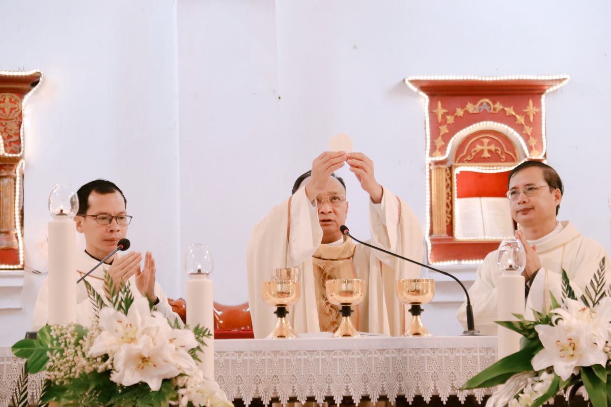 Cao điểm của ngày hành hương là Thánh lễ do Cha Giuse Nguyễn Hữu Tứ chủ tế, cùng đồng tế với quý cha trong phiên trực.