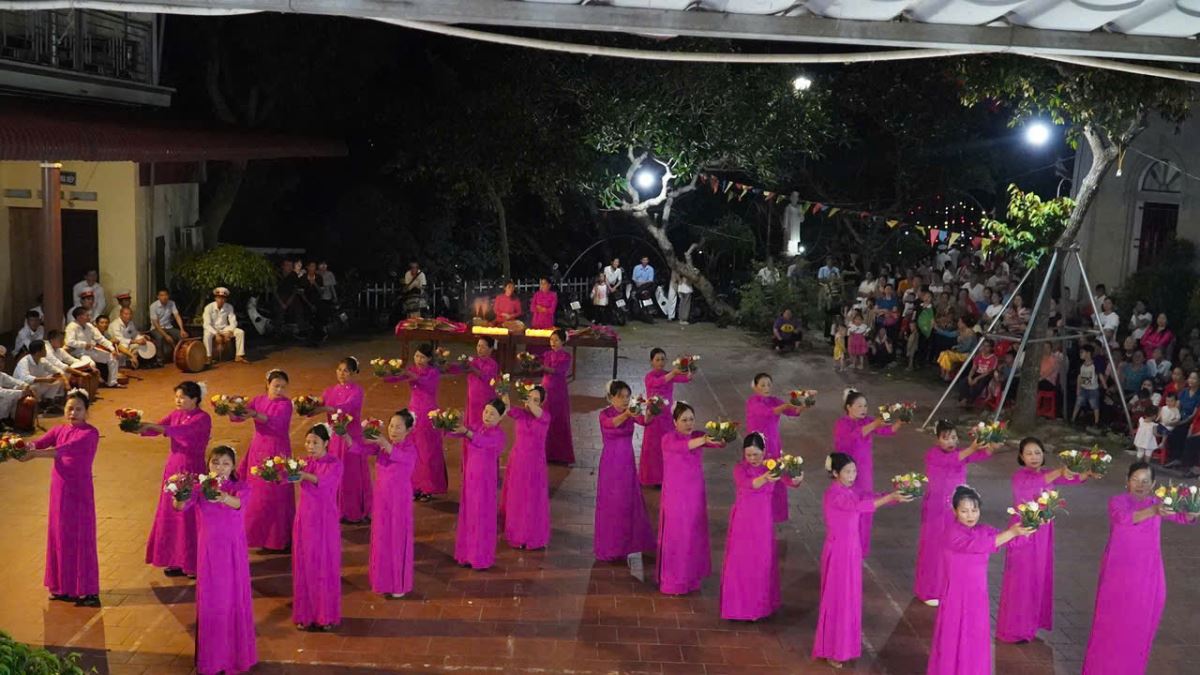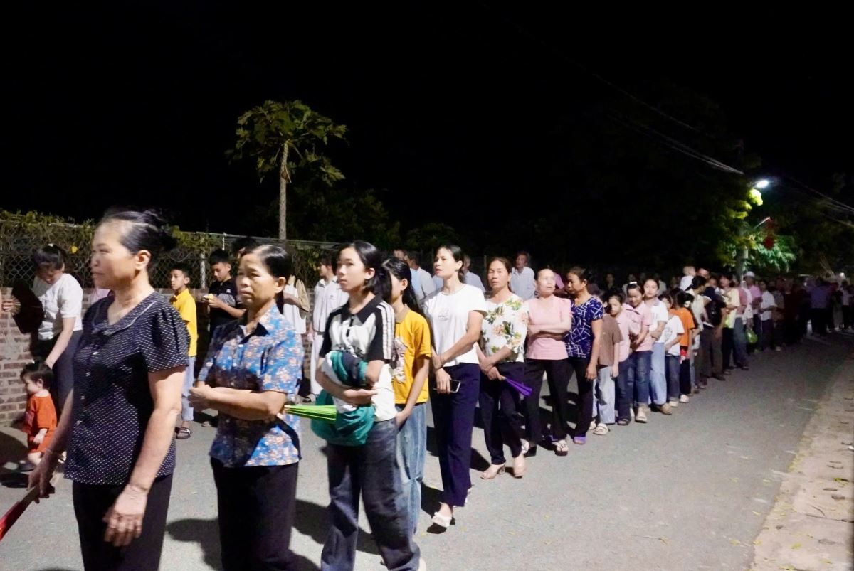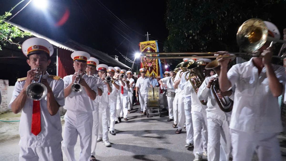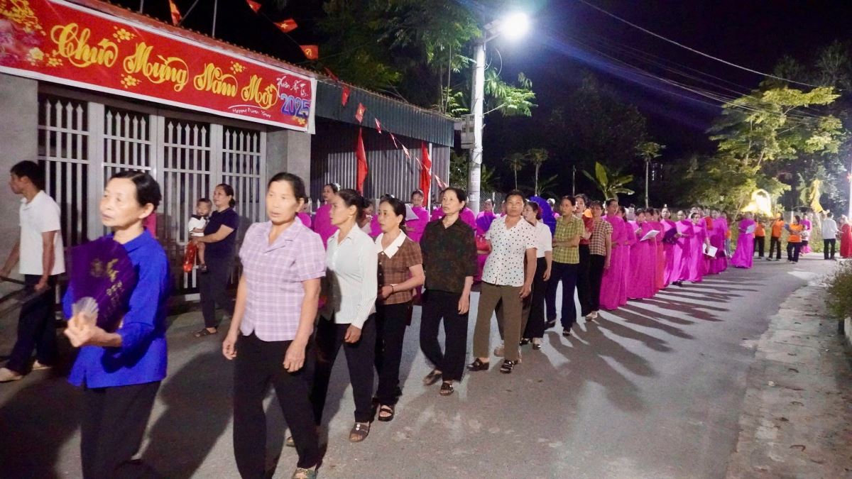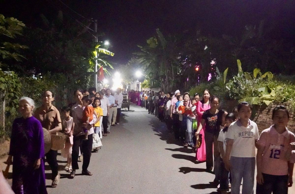 Trước khi bước vào cuộc rước kiệu, Cha xứ Phêrô Lã Công Viên đã chủ sự giờ nguyện kinh và xông hương kiệu Đức Mẹ tại điểm khởi hành kiệu. Quãng đường rước kiệu dài khoảng 1.000m quanh các ngõ xóm trong giáo xứ. Cuộc rước kiệu đã diễn ra trong bầu khí trang nghiêm với những tiếng hát, lời kinh và những bản hòa tấu từ đội kèn và đội trống của giáo xứ.
