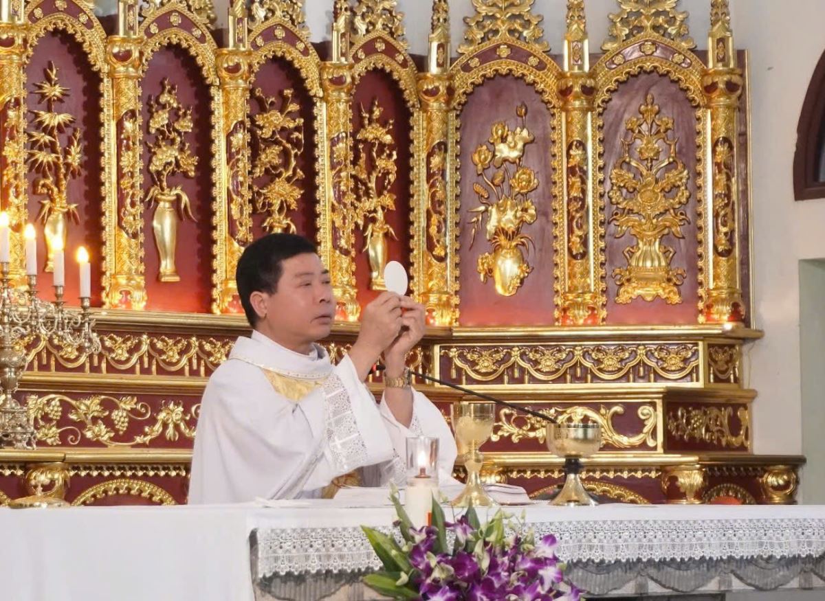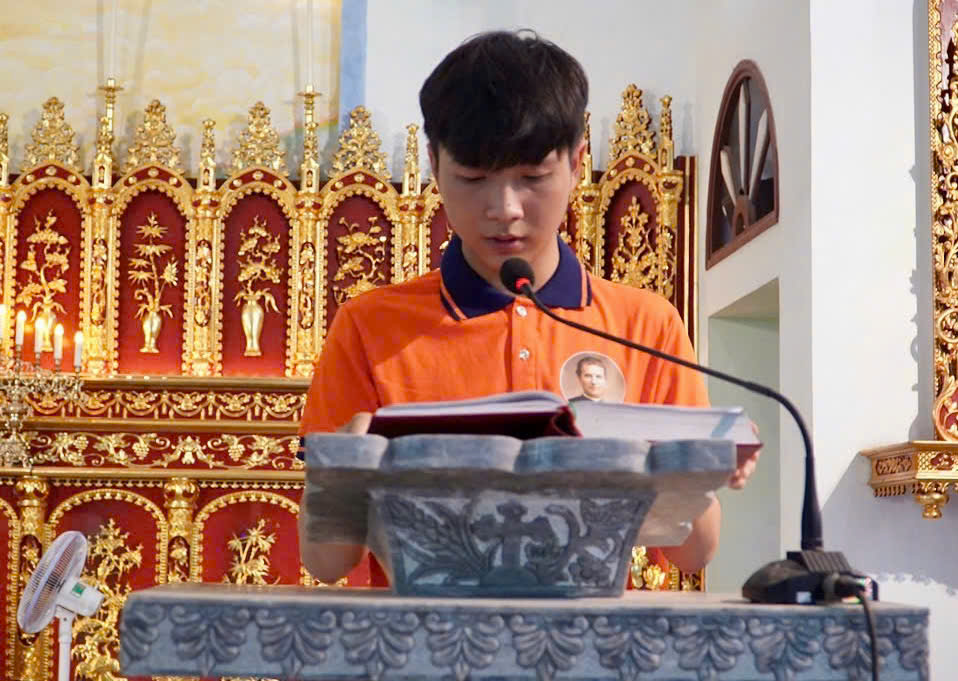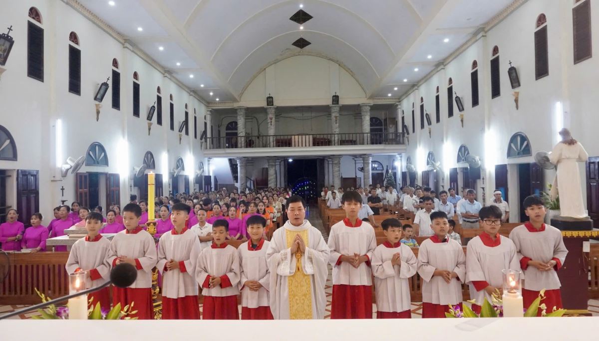 Kết thúc phần dâng hoa, cộng đoàn cùng tiến vào nhà thờ hiệp dâng Thánh lễ như thường lệ. Đông đảo cộng đoàn phụng vụ tham dự Thánh lễ một cách trang nghiêm và sốt sắng.