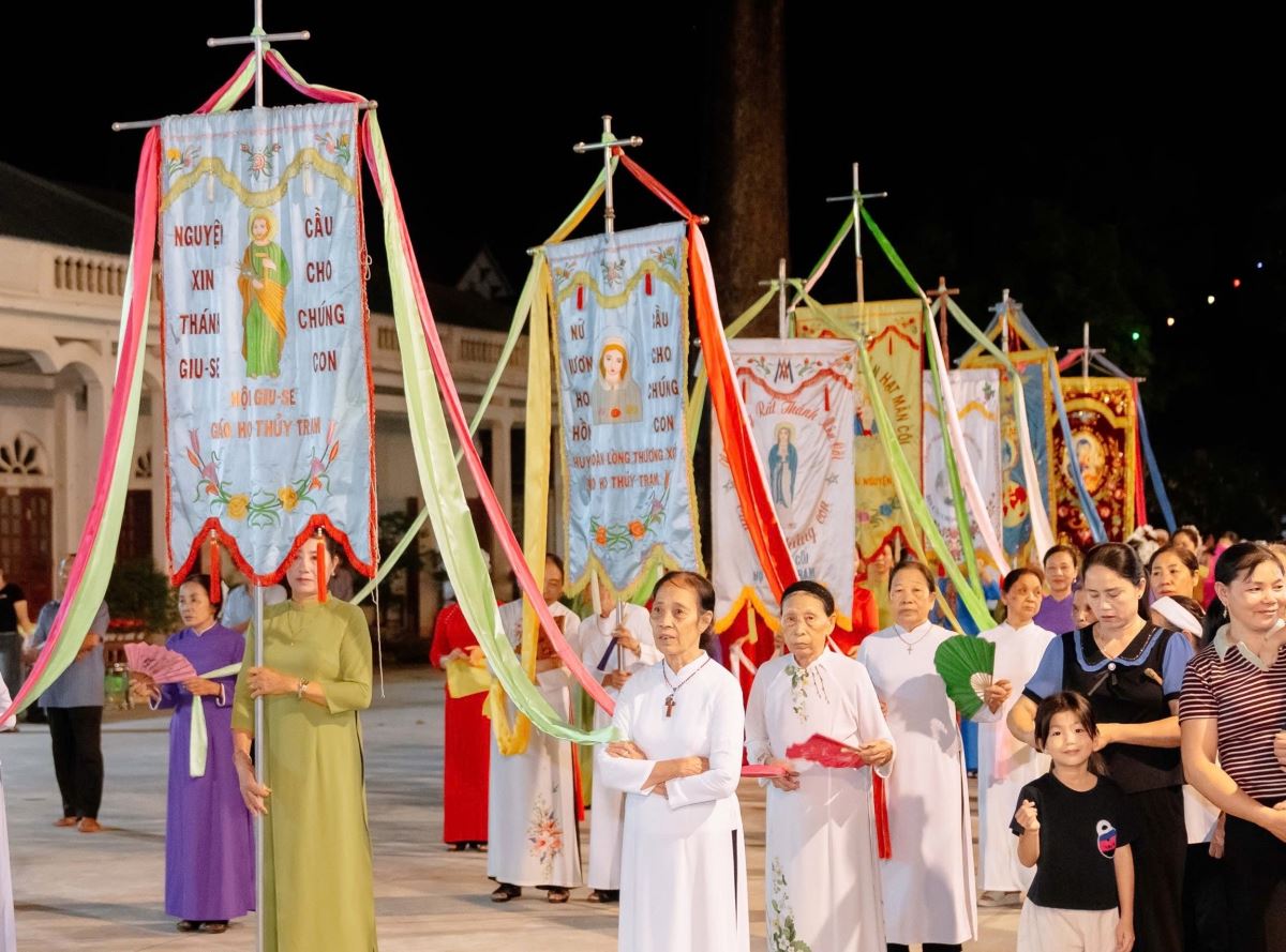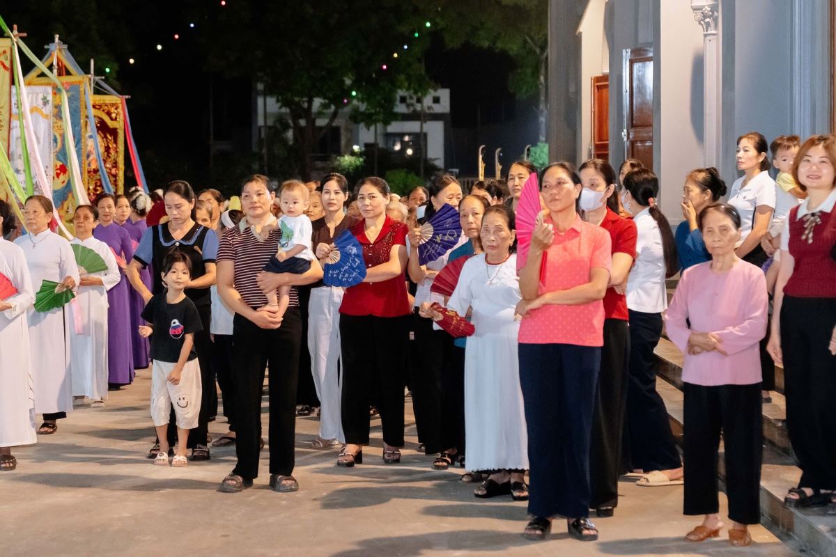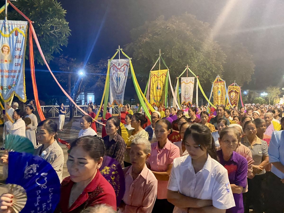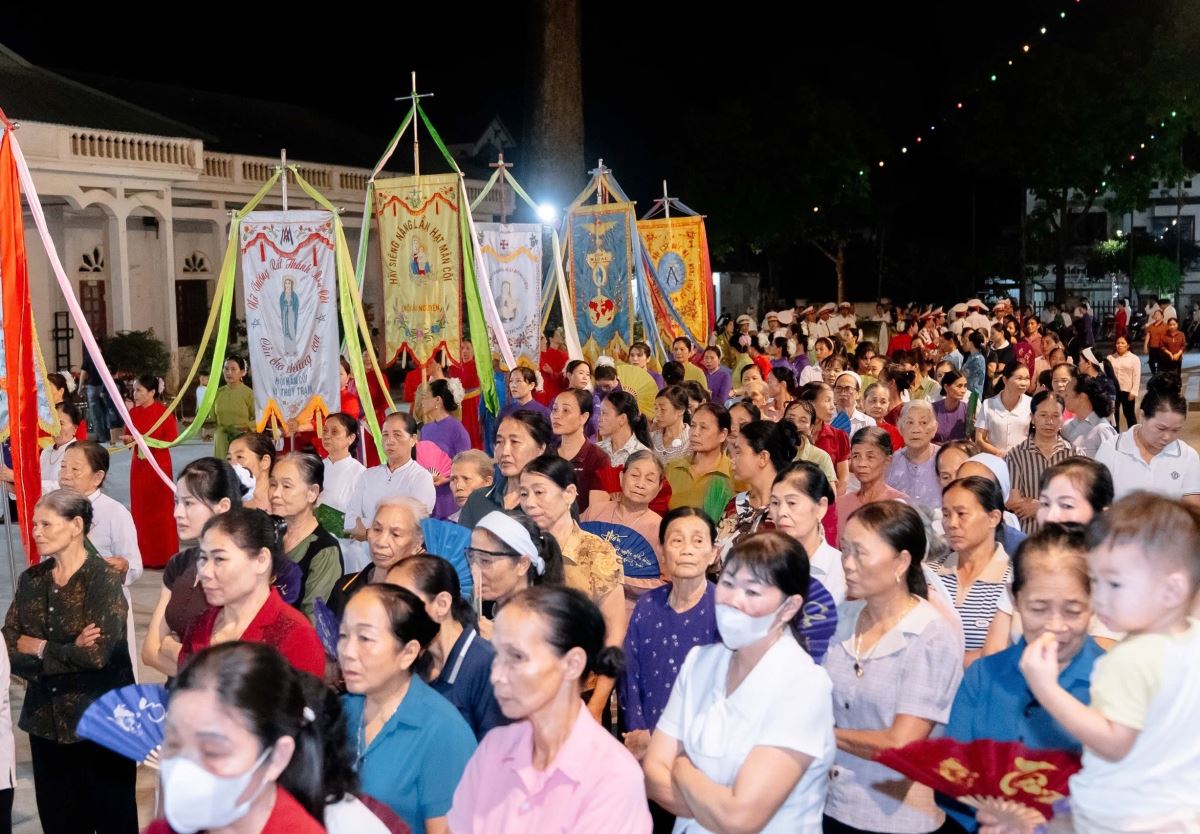 Sau giờ kinh nguyện, Cha xứ Giuse Vũ Công Phường chủ sự cuộc cung nghinh kiệu tôn vinh Đức Mẹ Mân Côi xung quanh khuôn viên nhà thờ. Cuộc rước kiệu diễn ra trong bầu khí linh thiêng và trang nghiêm, như lời tuyên xưng công khai niềm tin và lòng sùng kính của đoàn con cái dâng lên Mẹ Thiên Chúa.