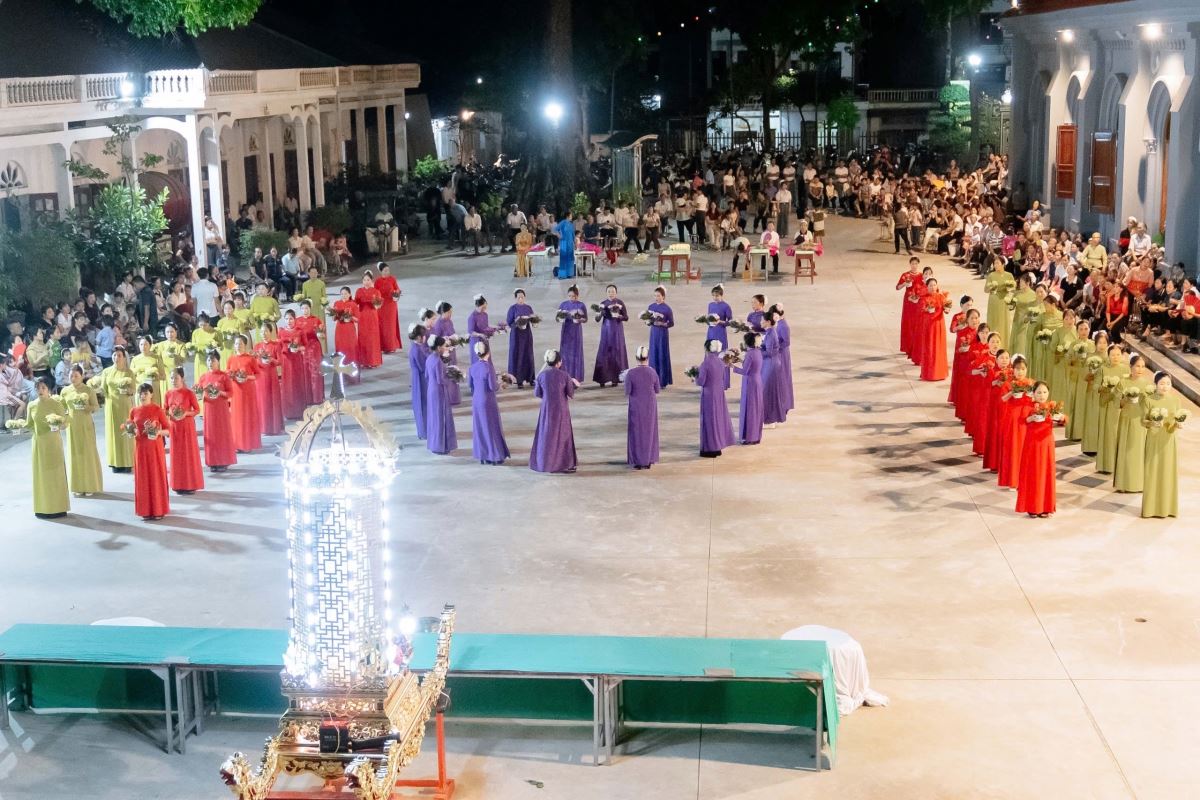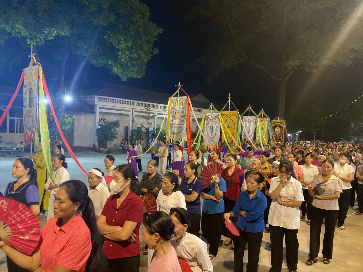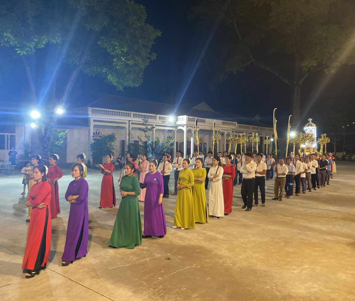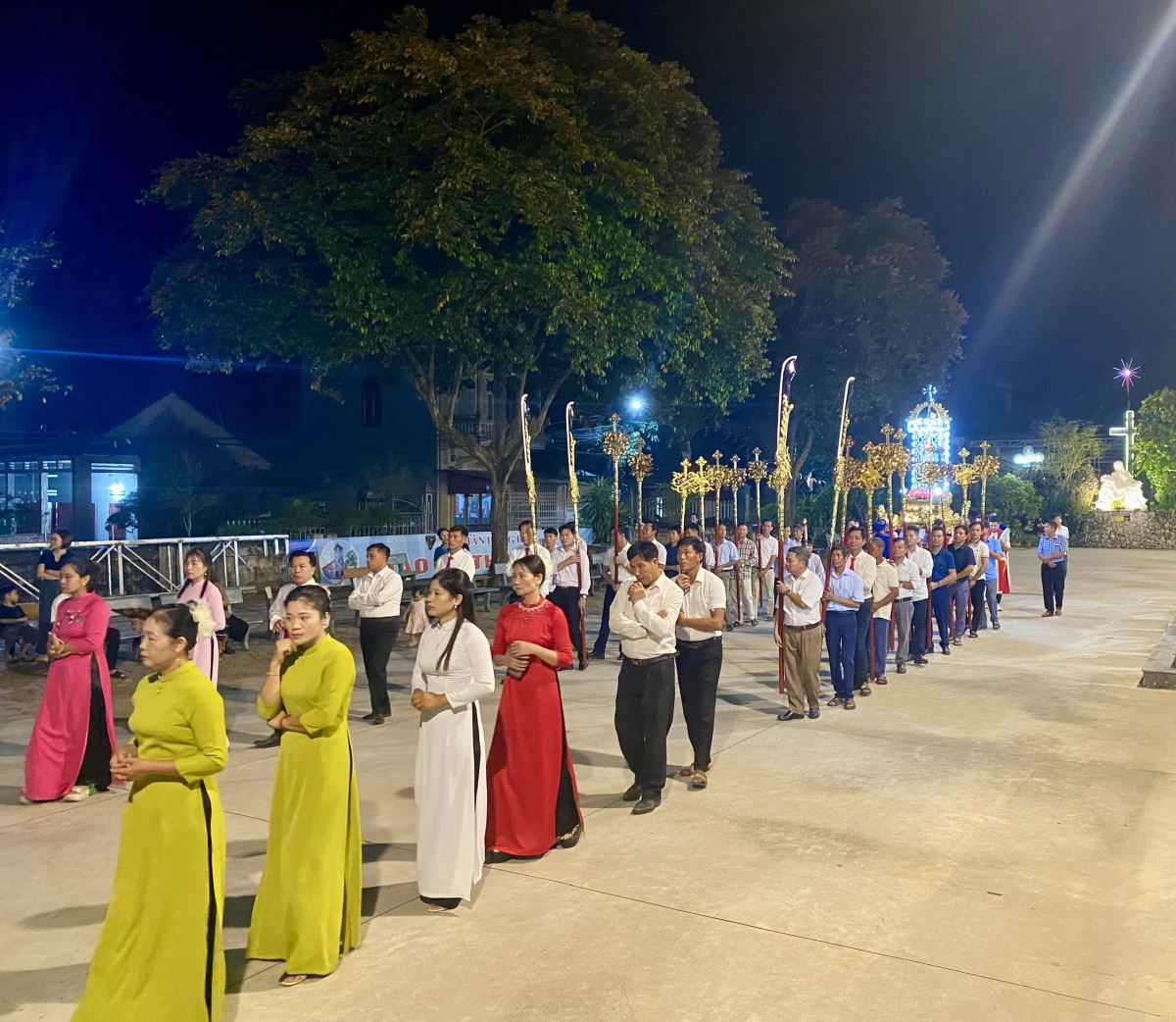 Sau giờ kinh nguyện, Cha xứ Giuse Vũ Công Phường chủ sự cuộc cung nghinh kiệu tôn vinh Đức Mẹ Mân Côi xung quanh khuôn viên nhà thờ. Cuộc rước kiệu diễn ra trong bầu khí linh thiêng và trang nghiêm, như lời tuyên xưng công khai niềm tin và lòng sùng kính của đoàn con cái dâng lên Mẹ Thiên Chúa.