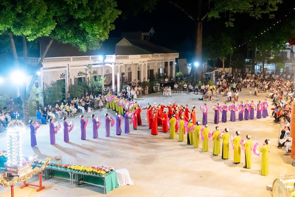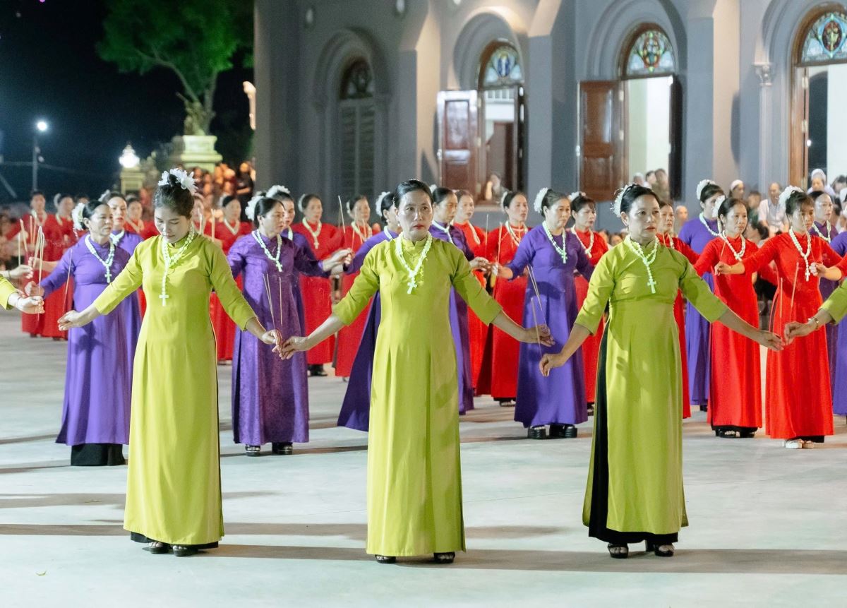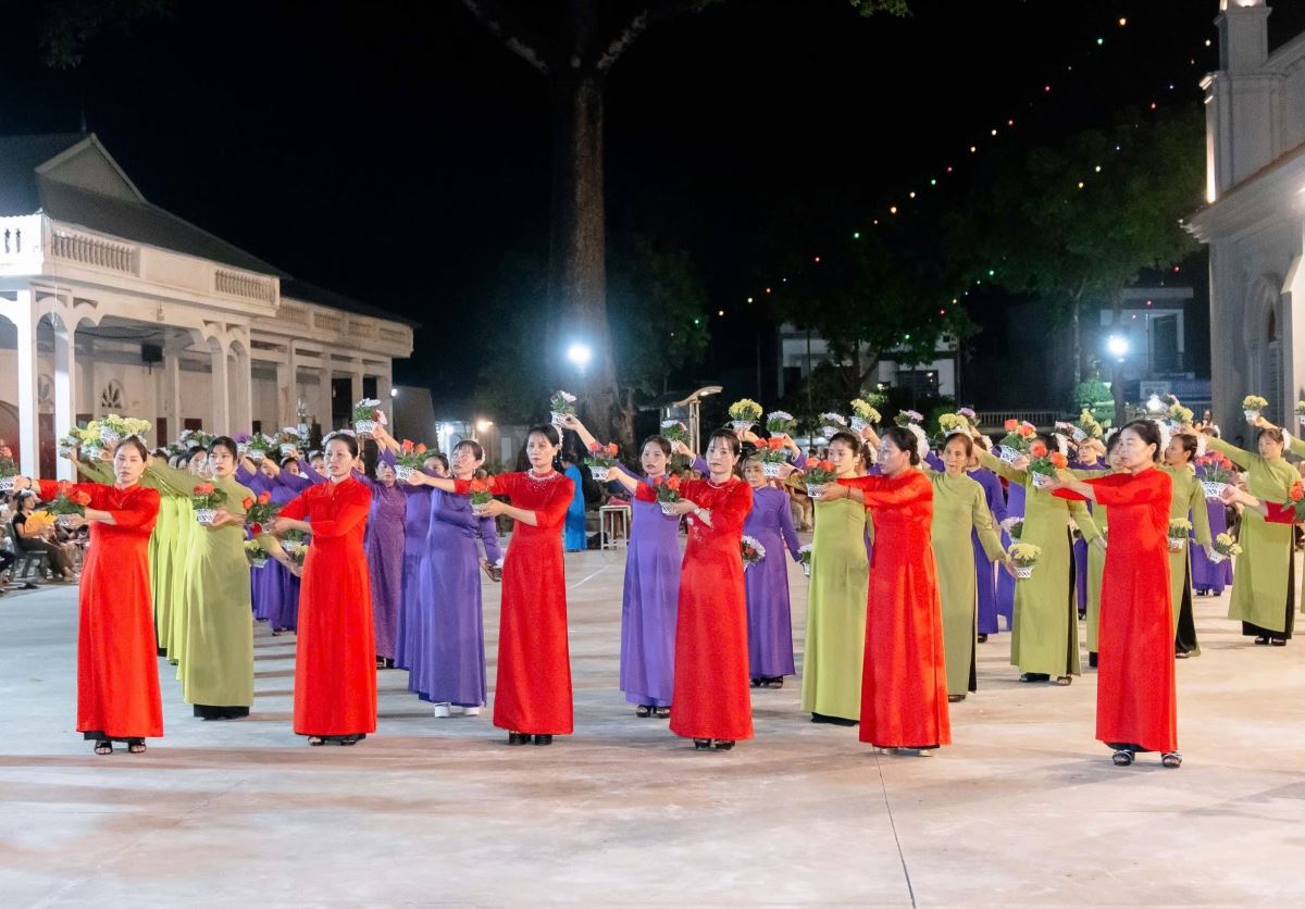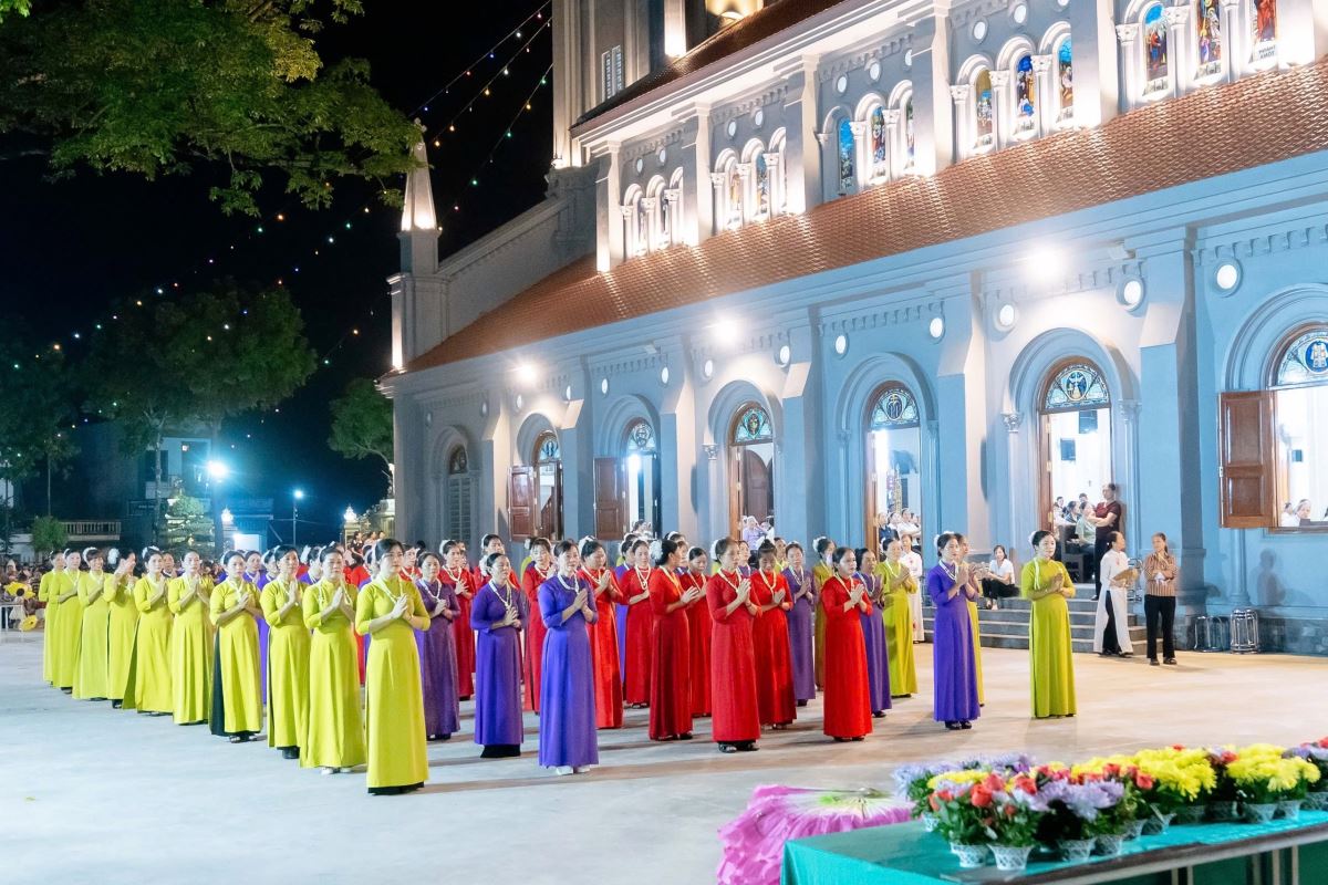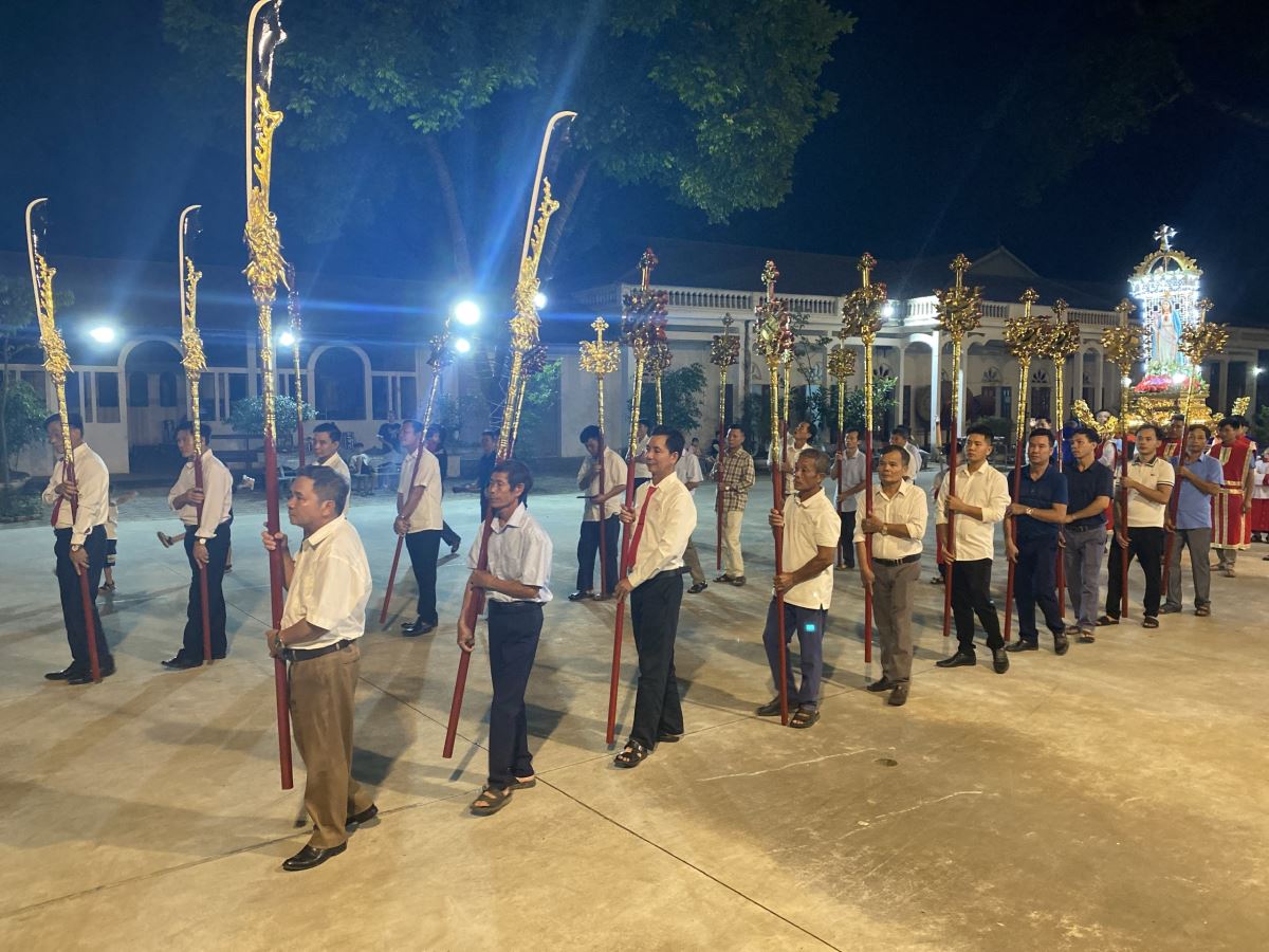 Sau giờ kinh nguyện, Cha xứ Giuse Vũ Công Phường chủ sự cuộc cung nghinh kiệu tôn vinh Đức Mẹ Mân Côi xung quanh khuôn viên nhà thờ. Cuộc rước kiệu diễn ra trong bầu khí linh thiêng và trang nghiêm, như lời tuyên xưng công khai niềm tin và lòng sùng kính của đoàn con cái dâng lên Mẹ Thiên Chúa.