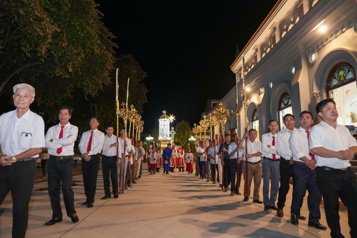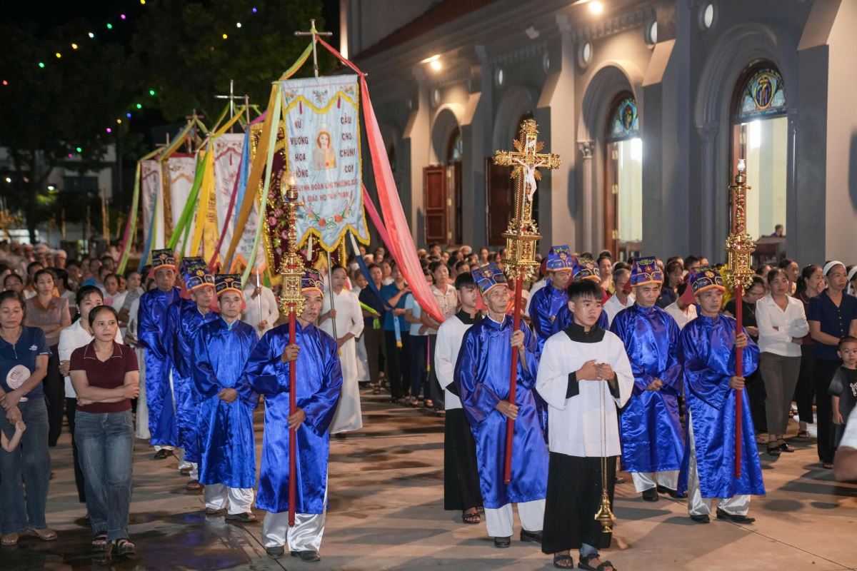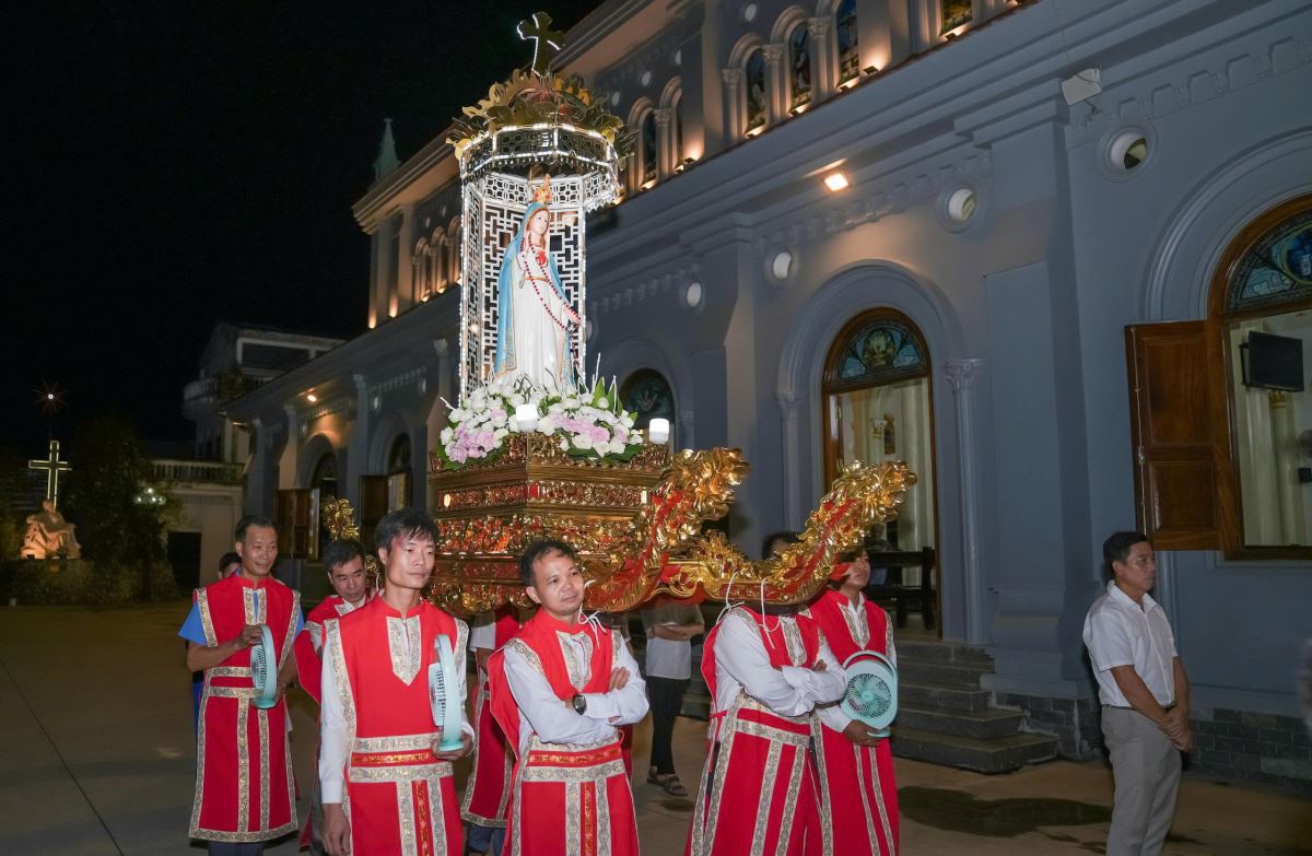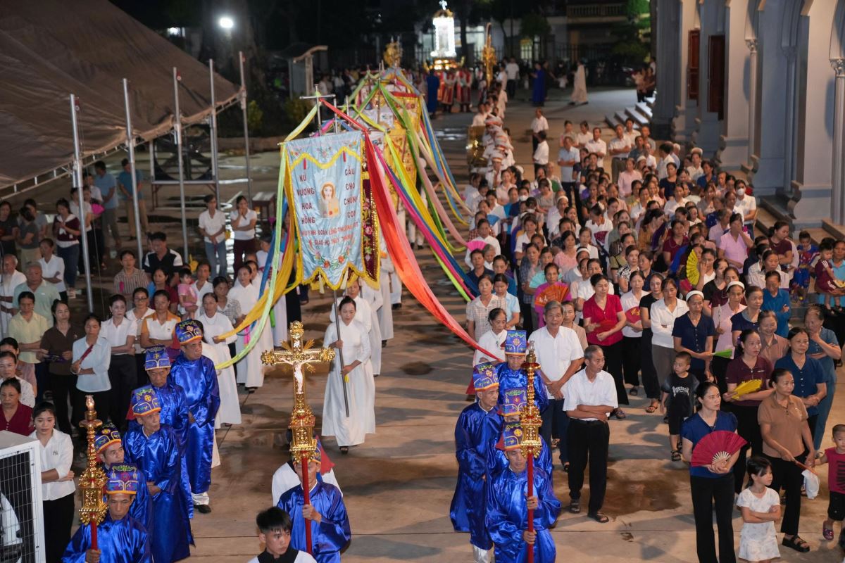 Cộng đoàn cung nghinh kiệu Đức Mẹ Sầu Bi quanh khuôn viên nhà thờ
