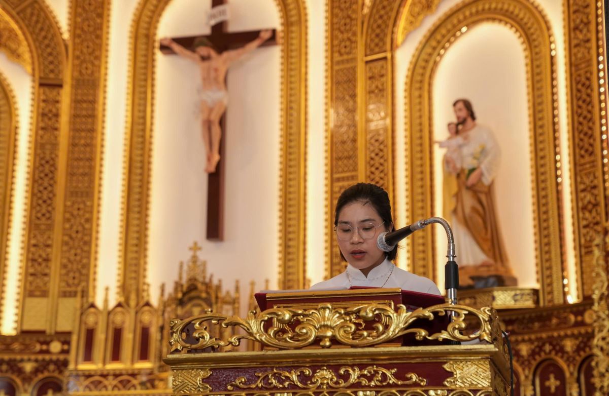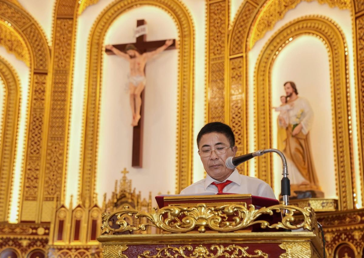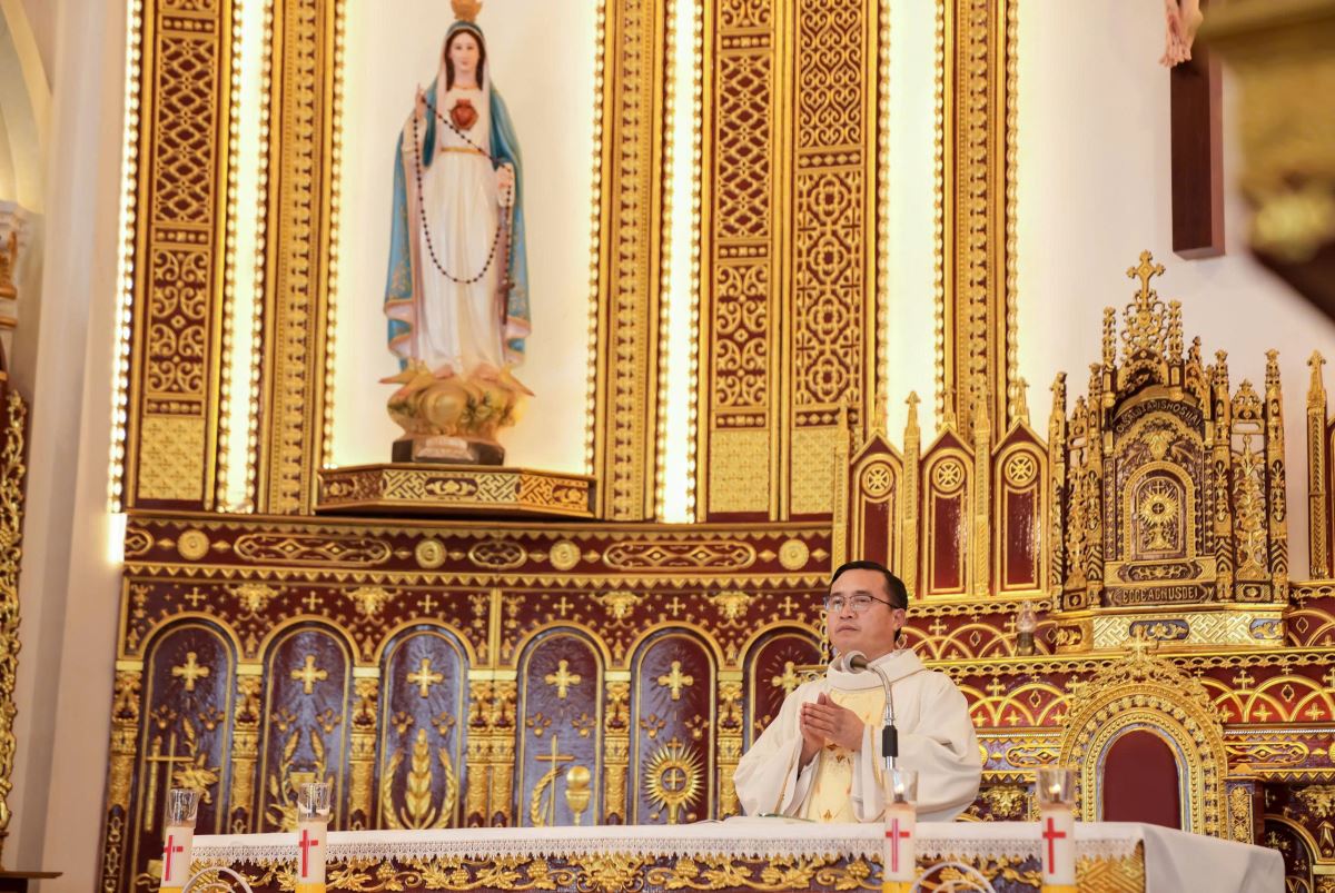 Trong bài giảng lễ, khởi đi từ đoạn Tin Mừng theo thánh Gioan (Ga 19, 25-27), Cha xứ Giuse mời gọi cộng đoàn chiêm ngắm hình ảnh Đức Mẹ đứng dưới chân thập giá, đỉnh cao của lễ kính Đức Mẹ Sầu Bi. Giữa nỗi đau tột cùng khi chứng kiến Con yêu dấu chịu chết ô nhục trên thập giá, Mẹ vẫn kiên trung đứng đó, thinh lặng đón nhận trong niềm tin tưởng và phó thác. Từ hình ảnh ấy, Cha nhấn mạnh ba điểm chính: - Thứ nhất, thái độ của Mẹ dưới chân thập giá dạy chúng ta biết can đảm đối diện với gian lao thử thách, vì chính đau khổ lại là con đường dẫn ta đến sự kết hiệp mật thiết với Chúa Giêsu.