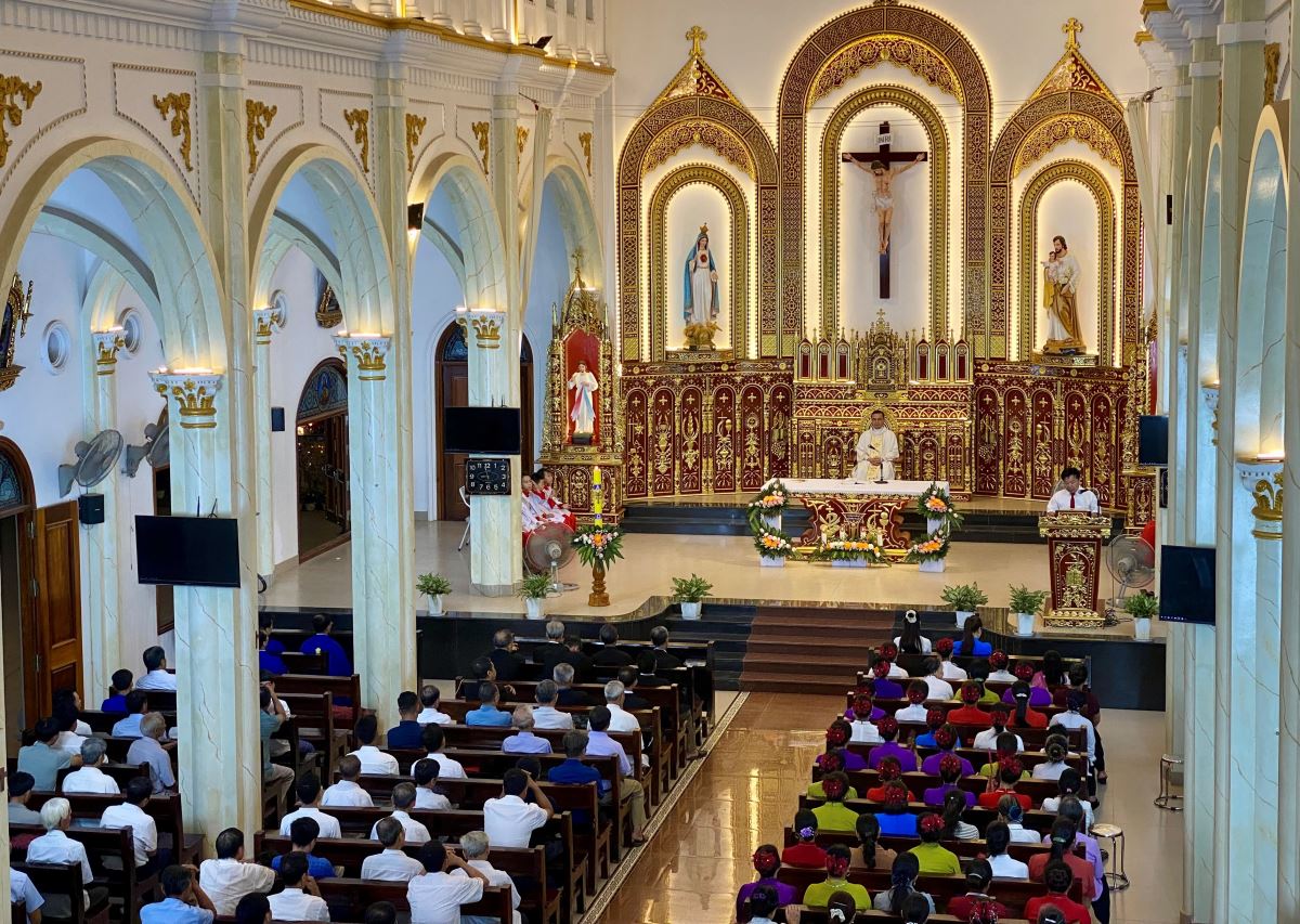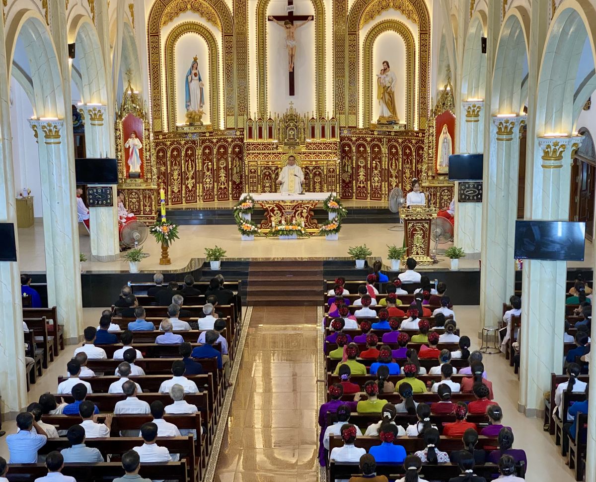Buổi rước và dâng hoa diễn ra long trọng, sốt sáng. Đỉnh cao là Thánh lễ Chúa Nhật lll Phục Sinh diễn ra trong bầu khí trang nghiêm và thánh thiện. Thánh lễ kết thúc lúc 21g25, bà con giáo dân ra về lòng đầy nô nức hân hoan.