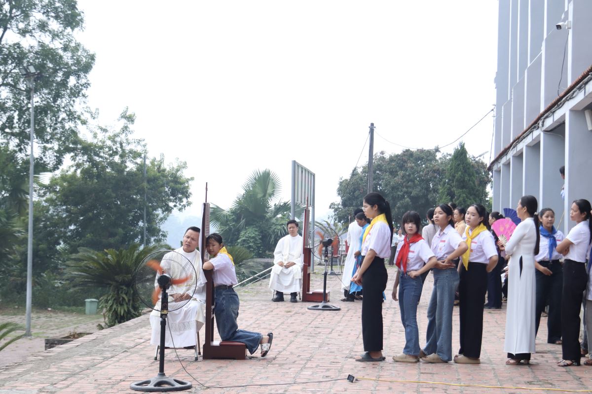 Sau đó, đoàn tiến vào nhà thờ, được các thành viên trong Tu hội Thánh Tâm Chúa Giêsu hướng dẫn tĩnh tâm, xét mình và chuẩn bị tâm hồn sốt sắng lãnh nhận các ơn lành.