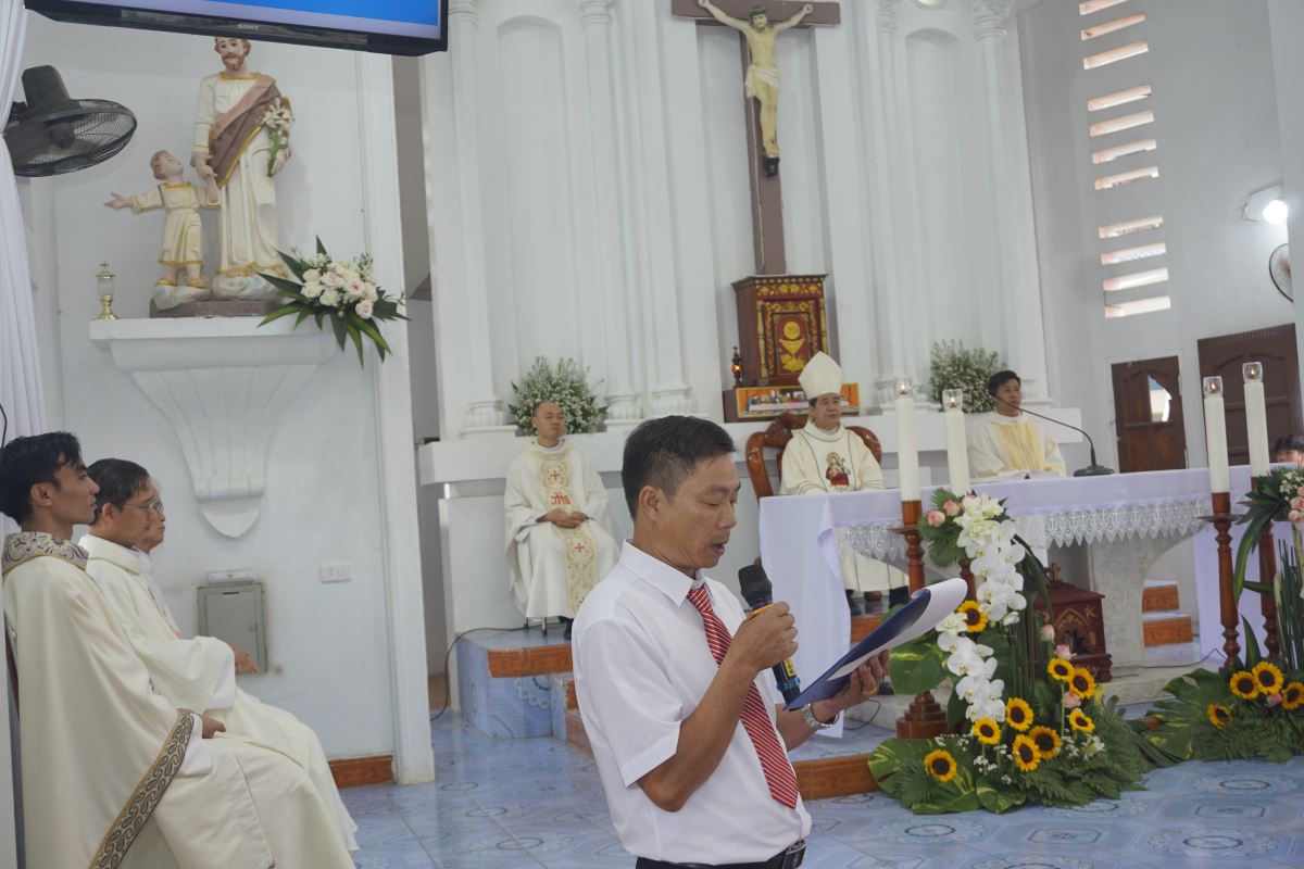 Kết thúc Thánh lễ, ông Giuse Phan Ngọc Đăng đại diện cho Hội đồng giáo xứ thay mặt cộng đoàn dâng lời tạ ơn Thiên Chúa, tri ân Đức cha, quý cha, quý khách, các ân nhân, và toàn thể cộng đoàn đã hiện diện, cầu nguyện và đồng hành với giáo xứ.
