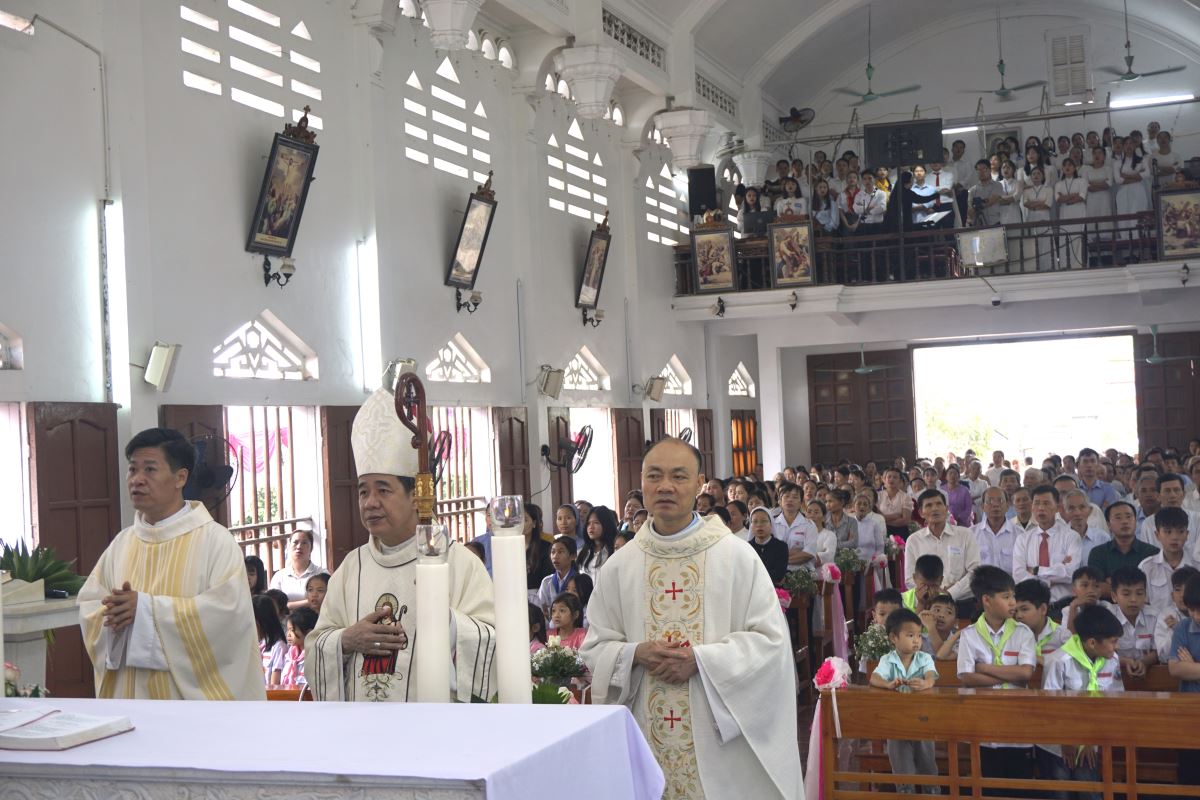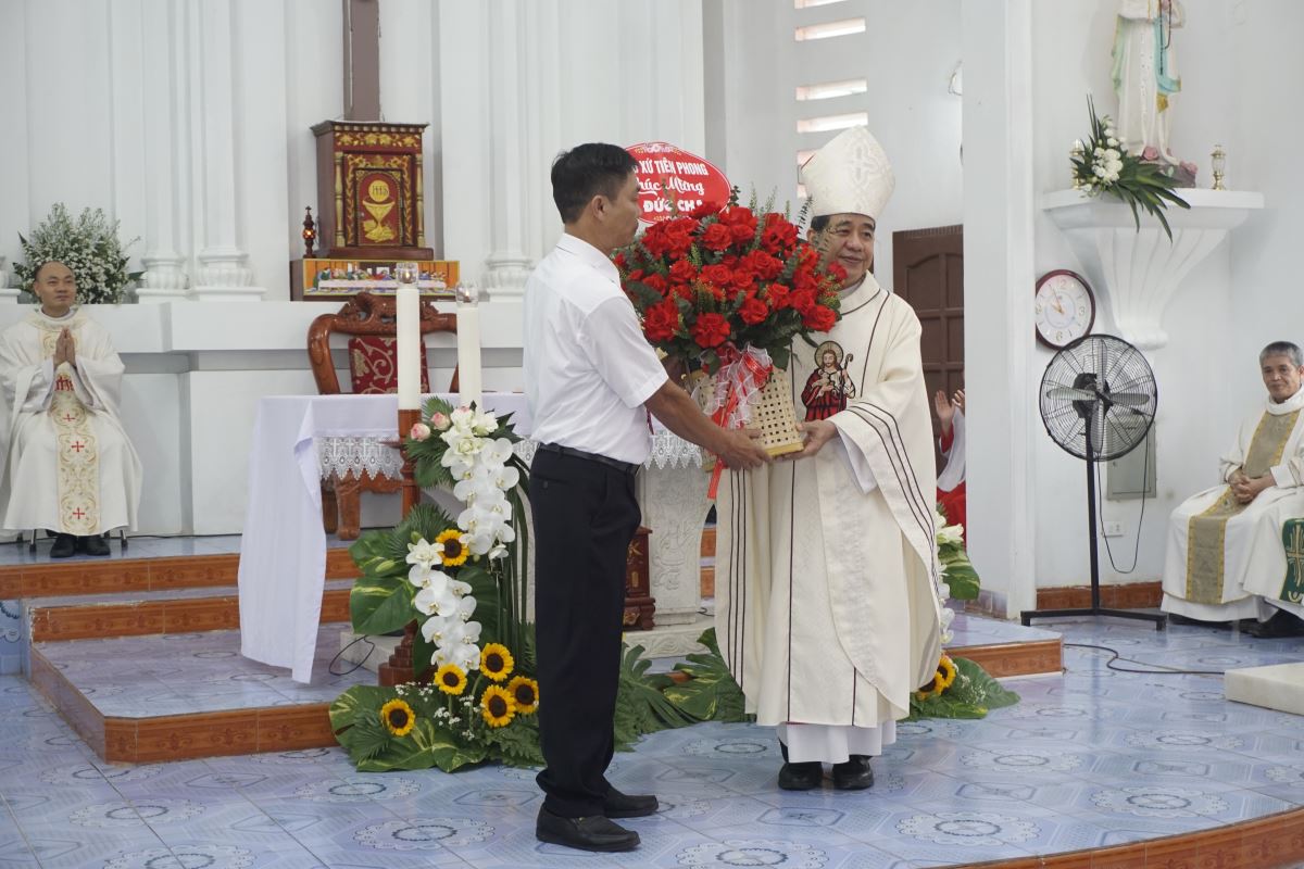 Buổi lễ trọng thể có sự hiện diện và chủ sự của Đức cha Đaminh Hoàng Minh Tiến Giám mục Giáo phận Hưng Hóa, cha quản hạt Tây Bắc Phú Thọ - Phaolô Nguyễn Quốc Anh, cha xứ Giuse Nguyễn Văn Cường, quý cha trong và ngoài giáo hạt, quý thầy, quý dì, quý Hội đồng giáo xứ, Ban hành giáo các giáo xứ trong giáo hạt, đại diện các cấp chính quyền, quý khách xa gần và đông đảo cộng đoàn dân Chúa trong và ngoài giáo xứ.