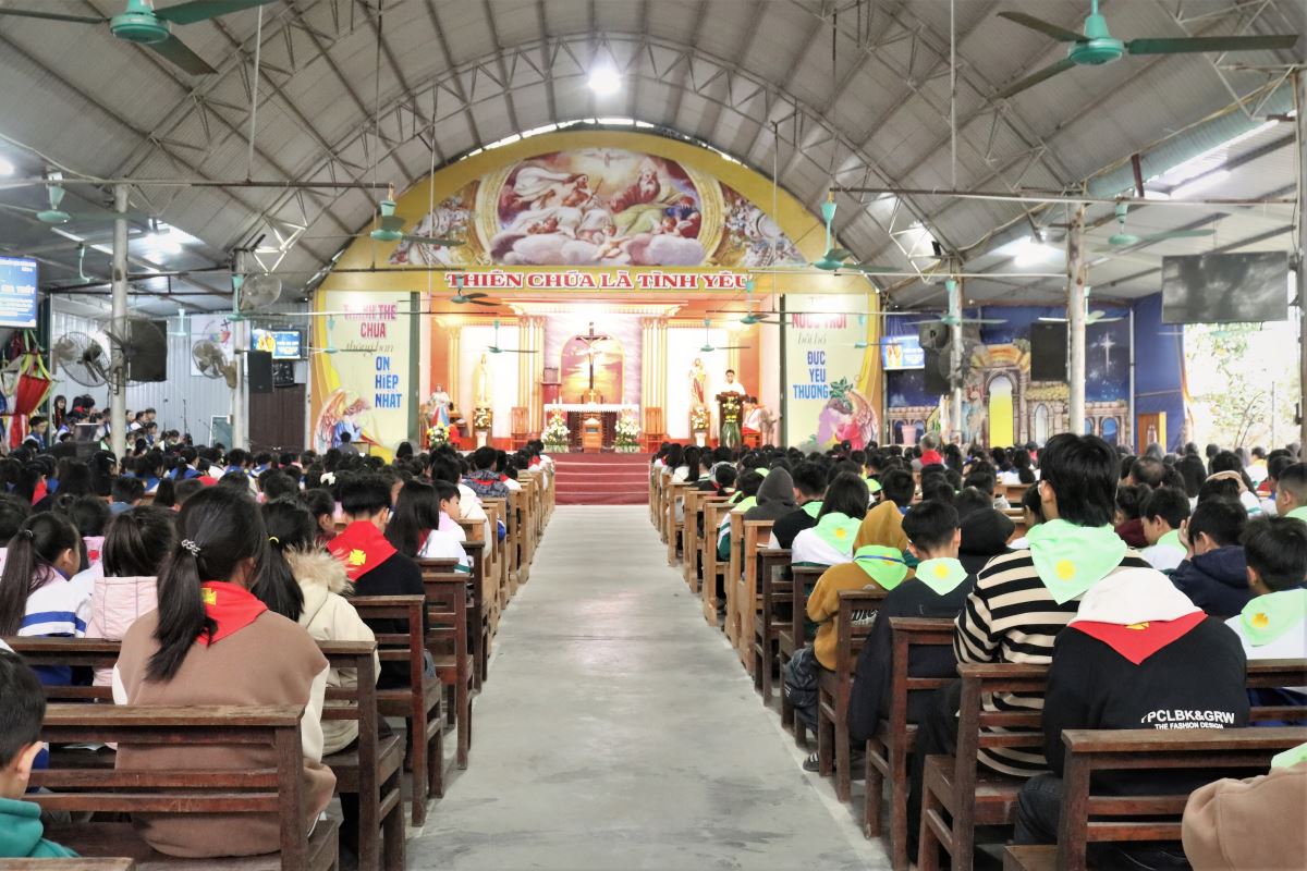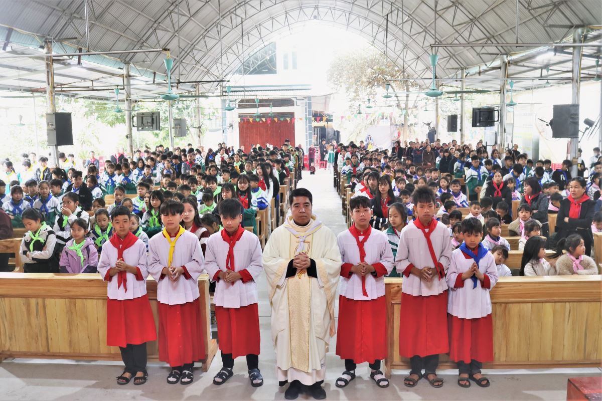 Thánh lễ do cha Giuse Trần Văn Điển chủ tế, với sự hiện diện của quý dì, quý thầy cô giáo lý viên, quý anh chị huynh trưởng cùng hơn 700 em thiếu nhi trong toàn giáo xứ.