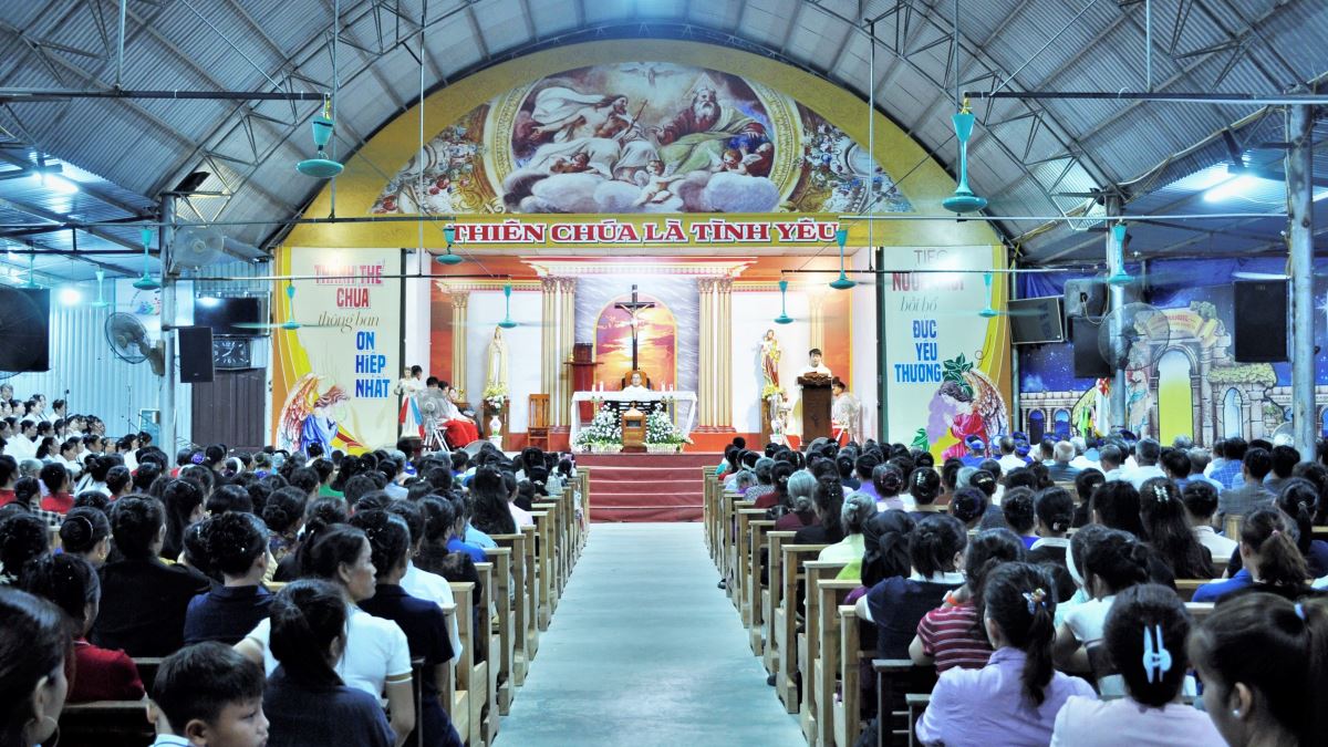 quý thầy, quý dì, cùng các ban ngành, đoàn thể và đông đảo giáo dân trong và ngoài giáo xứ. Bầu khí trang nghiêm, linh thiêng bao trùm toàn bộ phụng vụ, chan chứa niềm vui và lòng sốt mến.