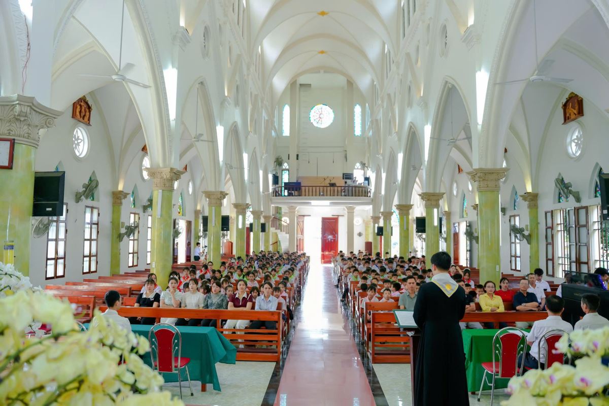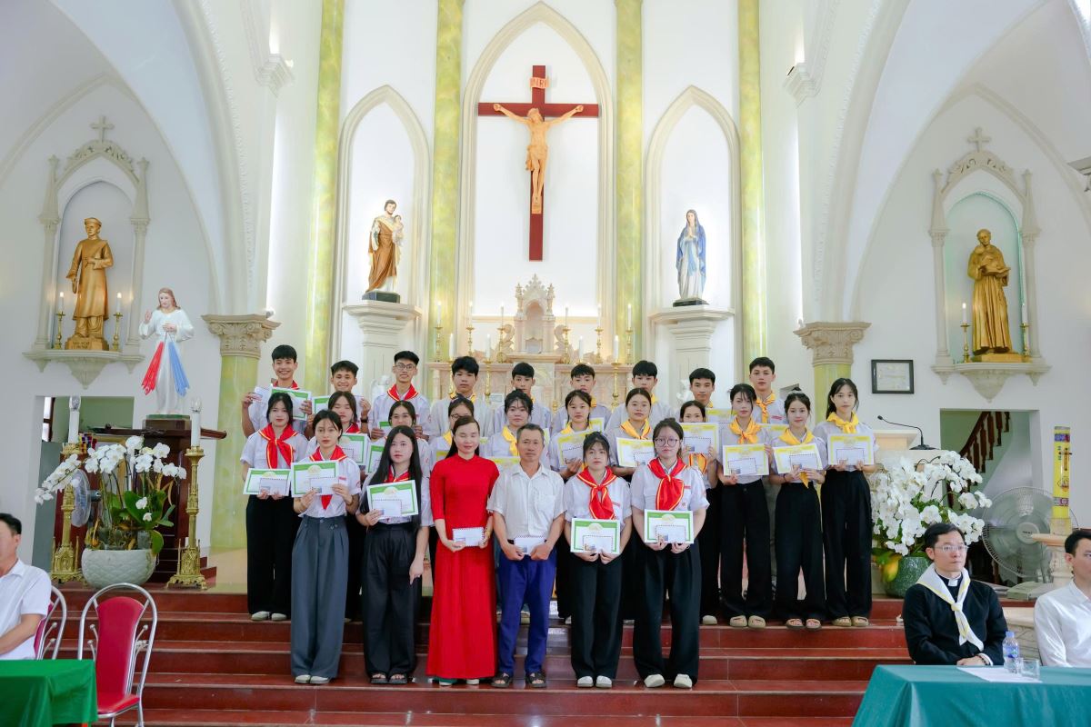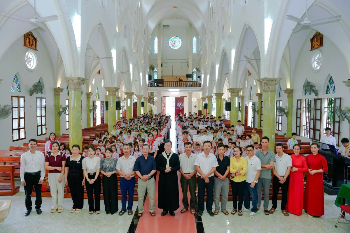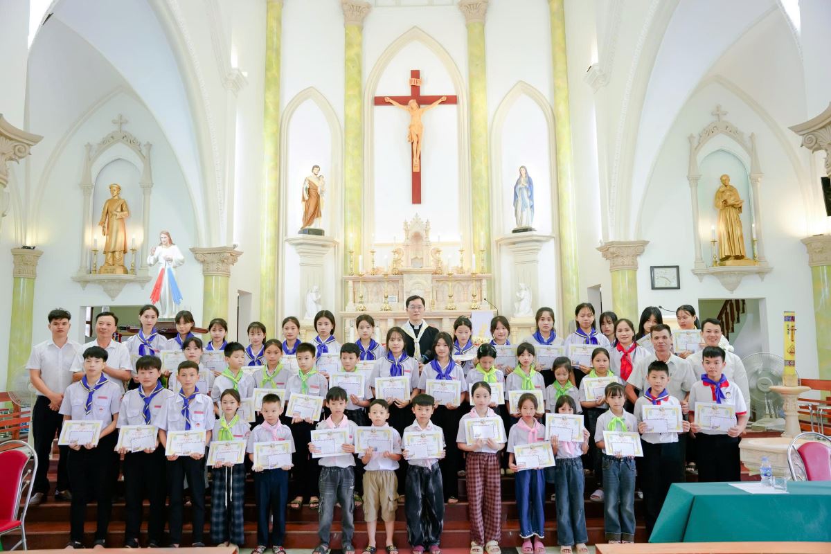 Với đoàn con thơ bé là hơn 300 thiếu nhi trong xứ, cha phó cũng ghi nhận sự nỗ lực và tinh thần tích cực của các em, cách riêng là 120 em học sinh có thành tích học tập tốt trong năm qua. Đồng thời, cha cũng không ngần ngại chỉ ra những tồn tại như một số gia đình chưa quan tâm đầy đủ đến việc giáo dục đức tin cho con cái, hay tình trạng một số em còn lơ là và thiếu chuyên cần trong các buổi học và sinh hoạt.