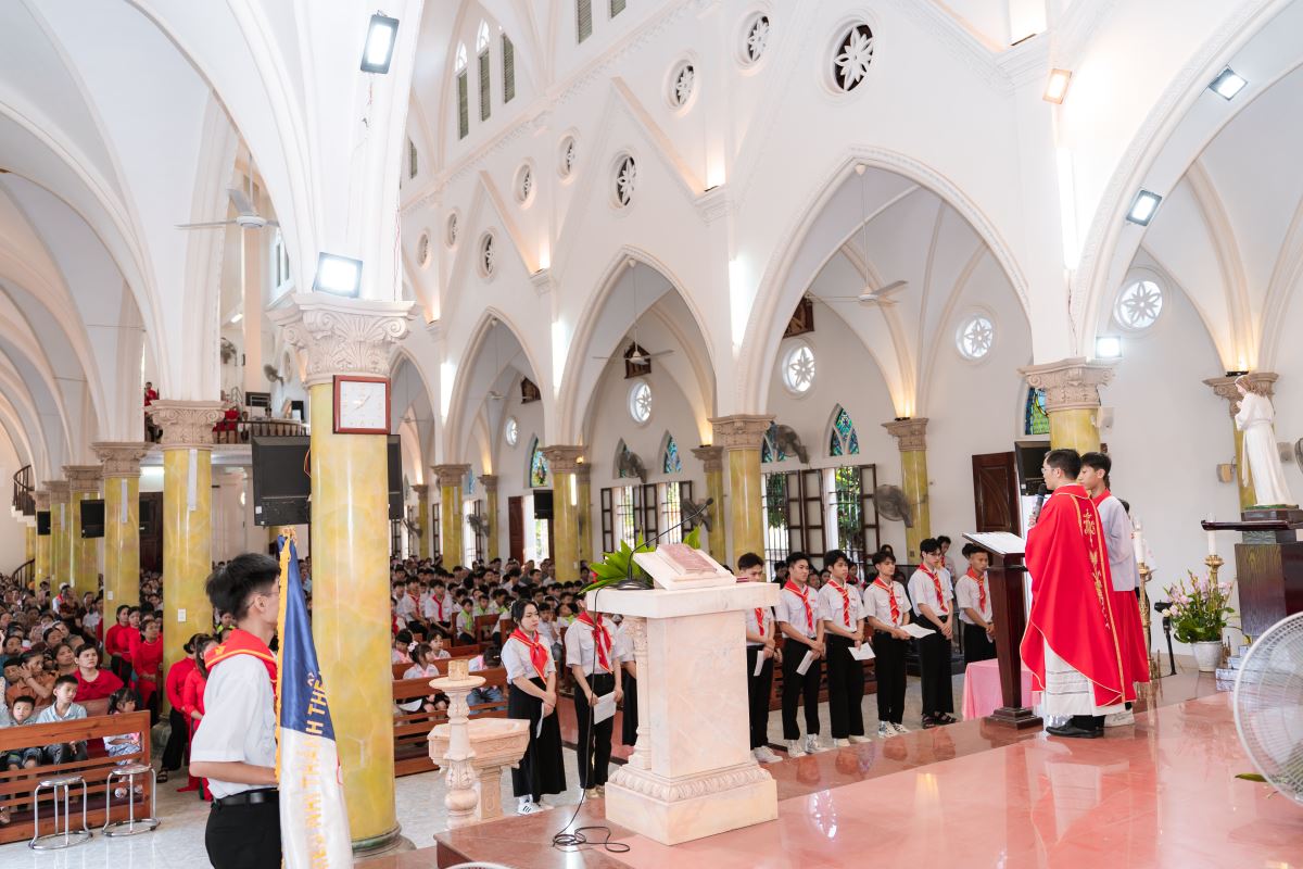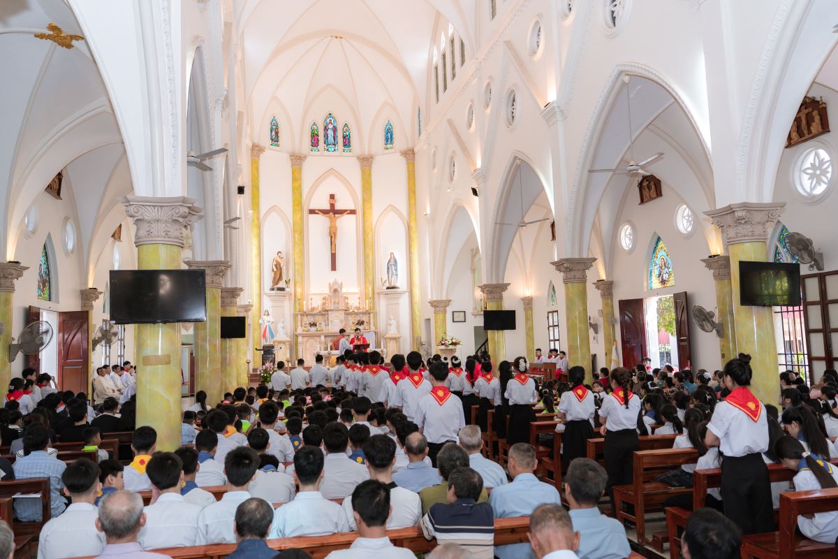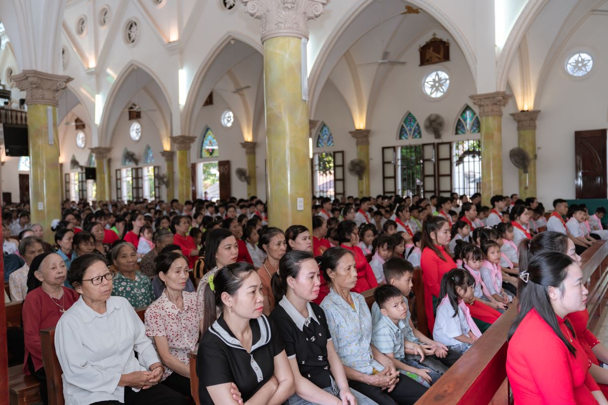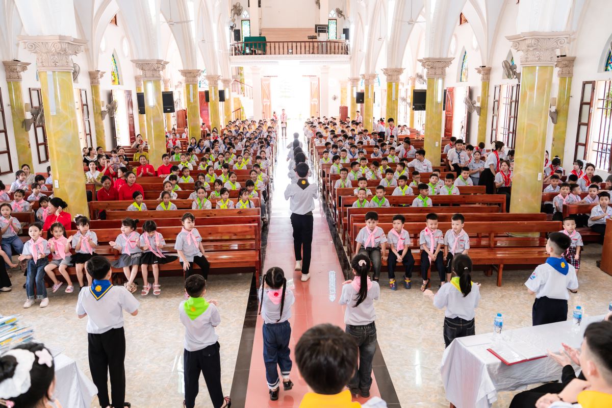 Tham dự buổi lễ có cha đặc trách giáo xứ Giuse Nguyễn Tiến Thành, Hội đồng Mục vụ Giáo xứ, quý giáo lý viên, huynh trưởng, cộng đoàn dân Chúa và toàn thể các em thiếu nhi trong giáo xứ.