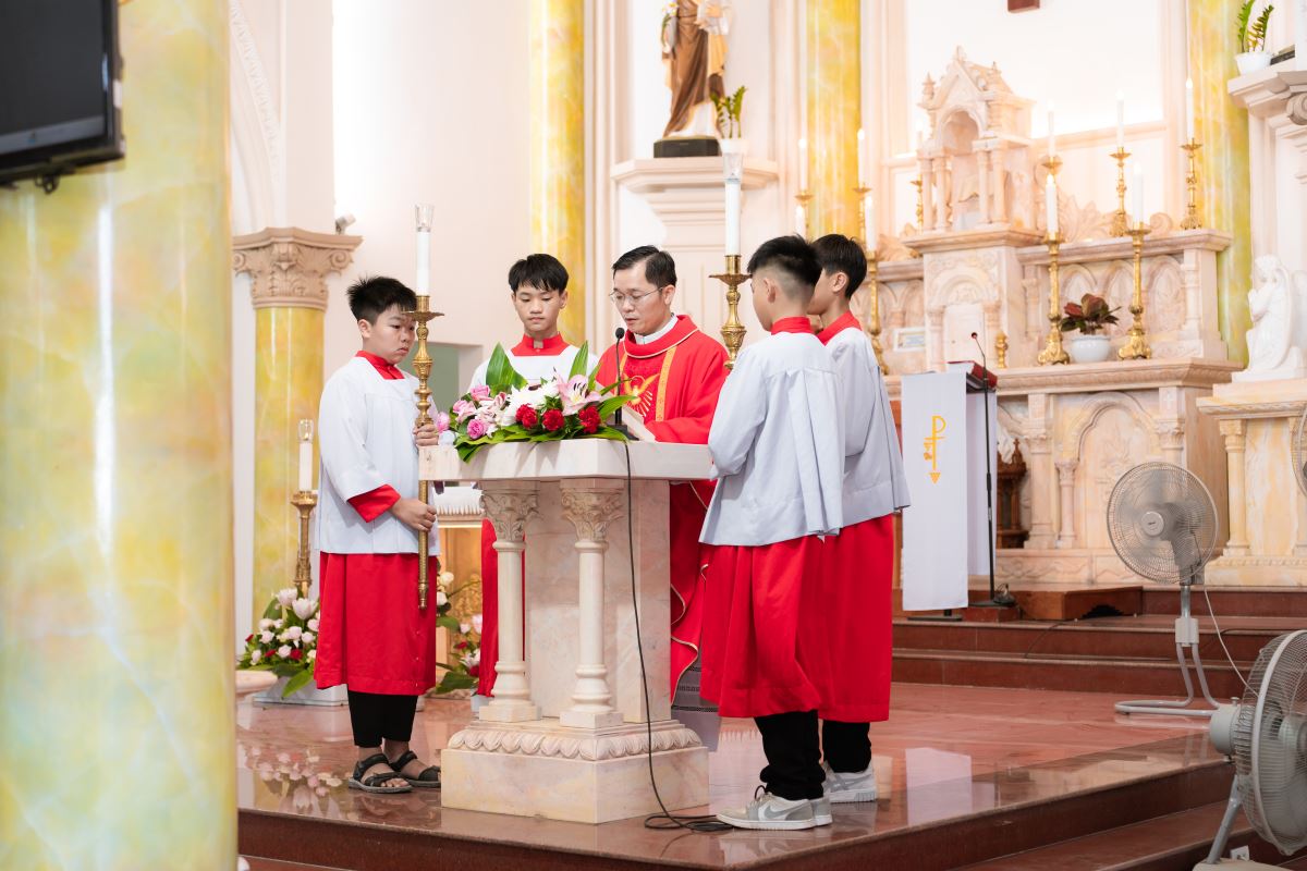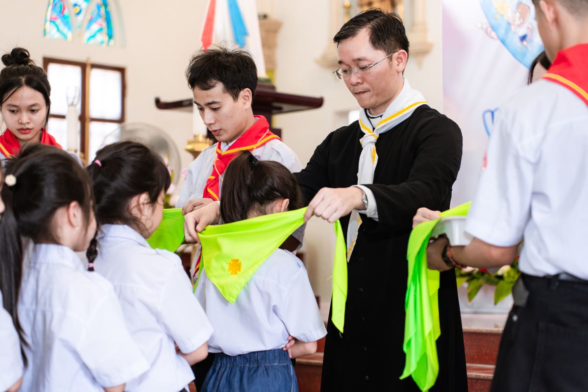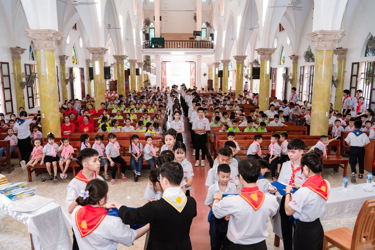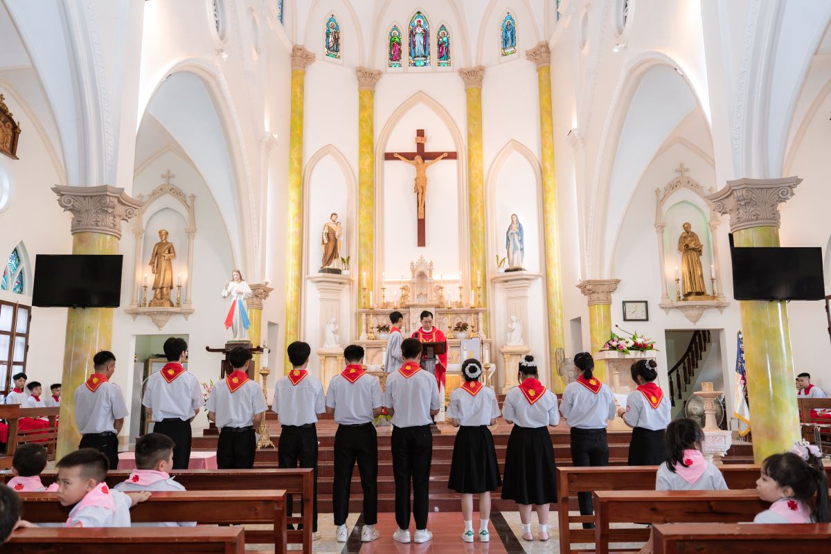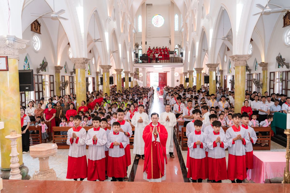 Tham dự buổi lễ có cha đặc trách giáo xứ Giuse Nguyễn Tiến Thành, Hội đồng Mục vụ Giáo xứ, quý giáo lý viên, huynh trưởng, cộng đoàn dân Chúa và toàn thể các em thiếu nhi trong giáo xứ.