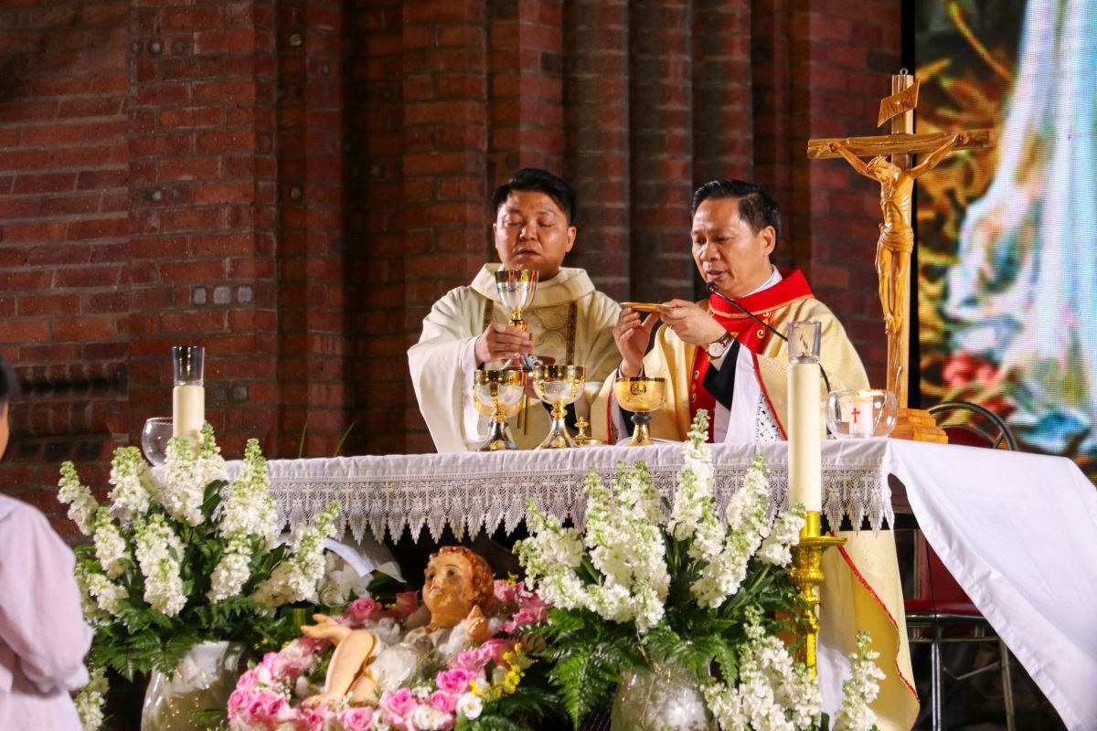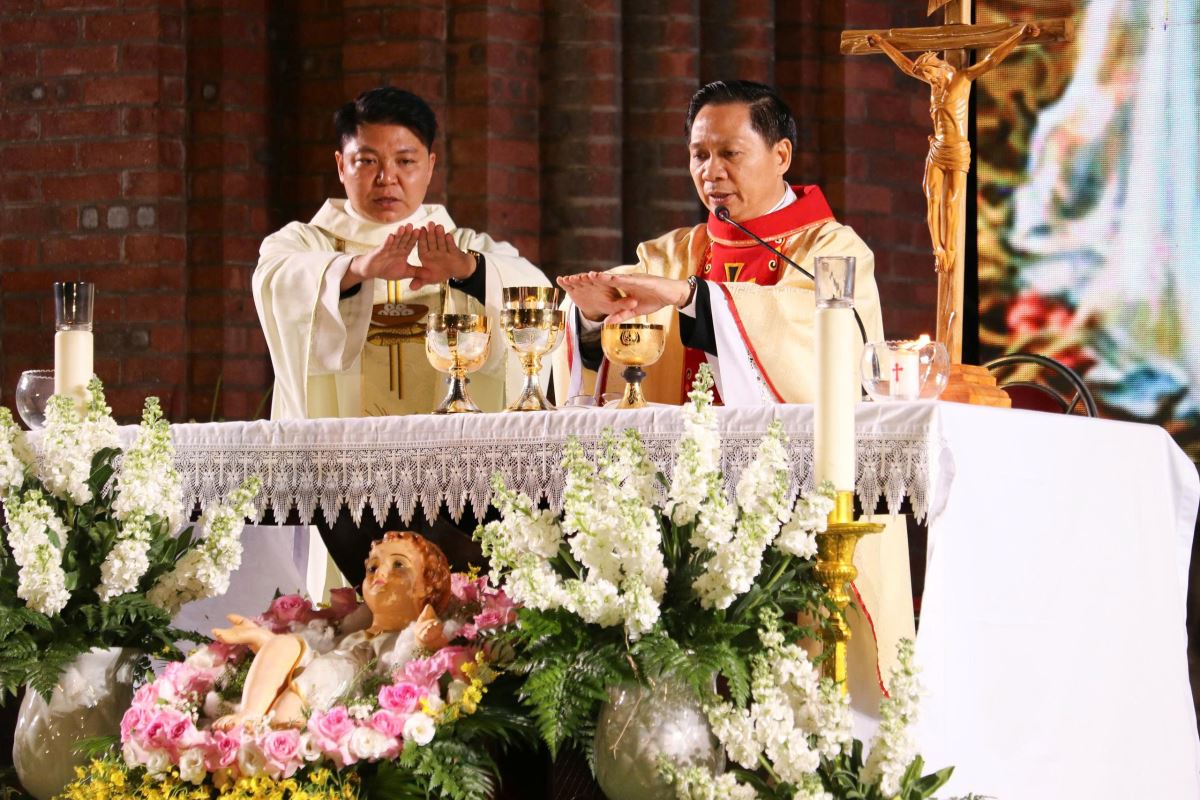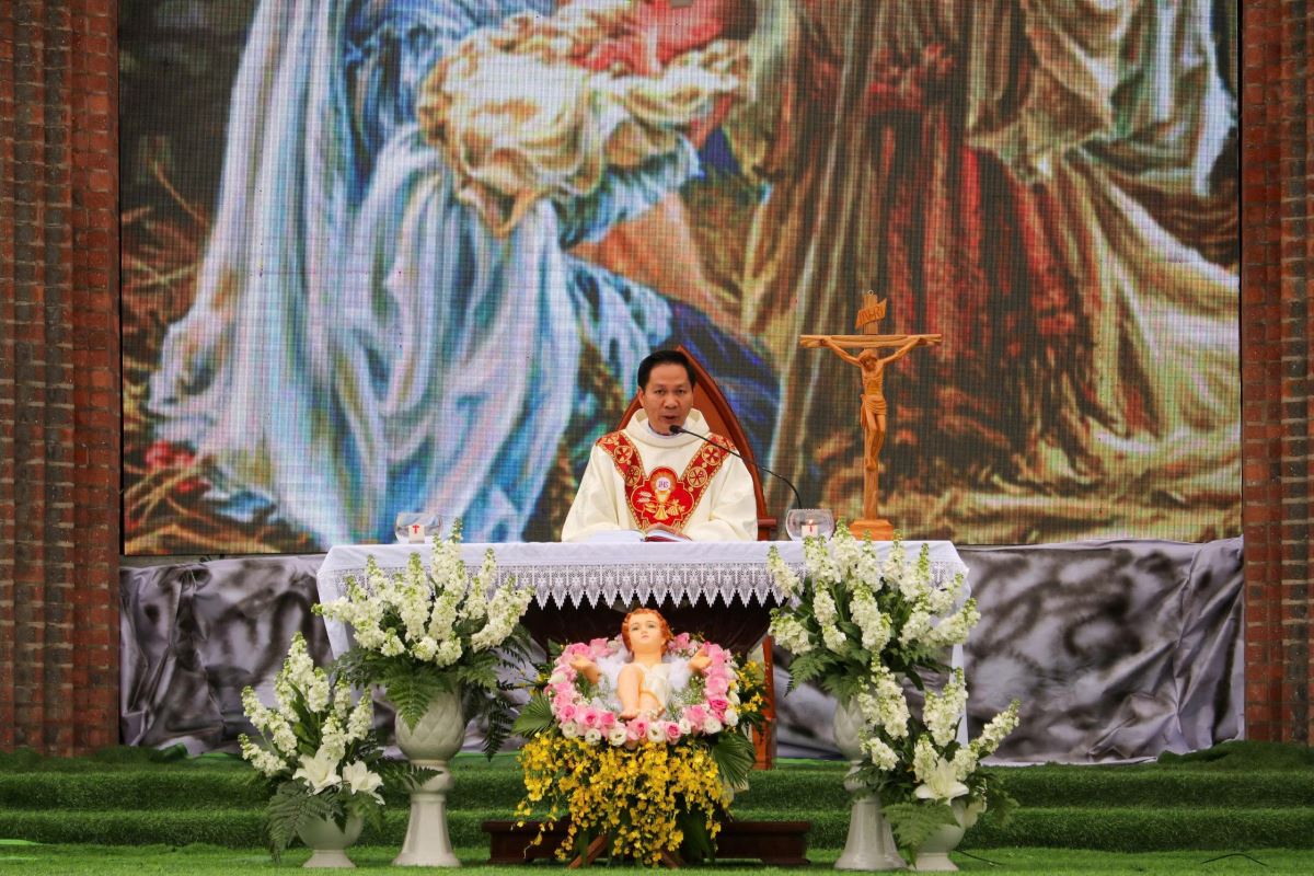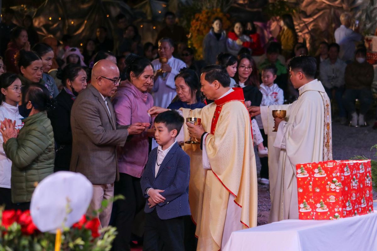 Đỉnh cao của đêm hồng phúc là Thánh lễ Đêm Giáng Sinh được cử hành trọng thể lúc 22g30 do cha xứ Giuse Nguyễn Viết Hiệp chủ sự, cùng đồng tế có cha phó Phêrô Nguyễn Xuân Điệp. Hiệp thông trong Thánh lễ còn có sự hiện diện của quý dì và đông đảo cộng đoàn dân Chúa trong Giáo xứ.