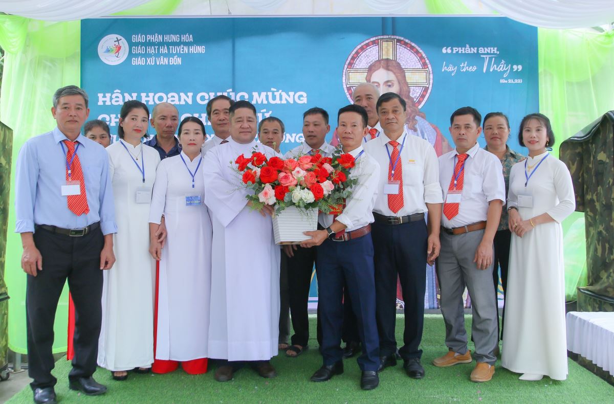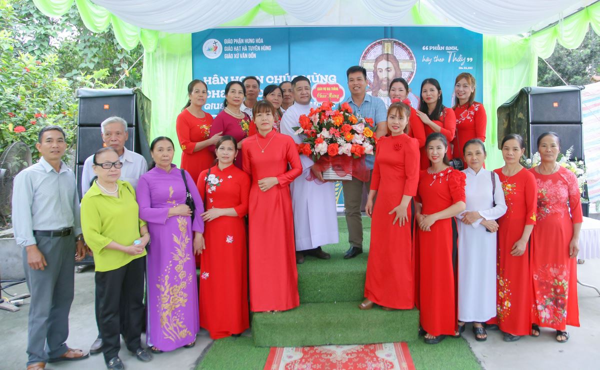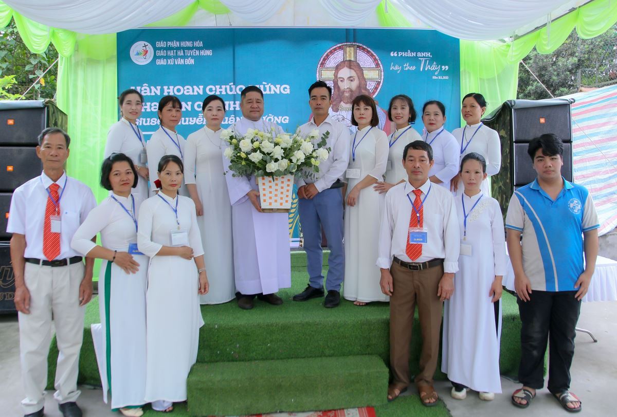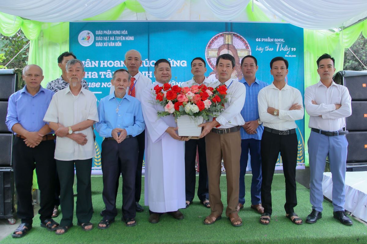 Đại diện cộng đoàn Giáo xứ Vân Đồn tặng hoa chào mừng Cha tân chính xứ Giuse |