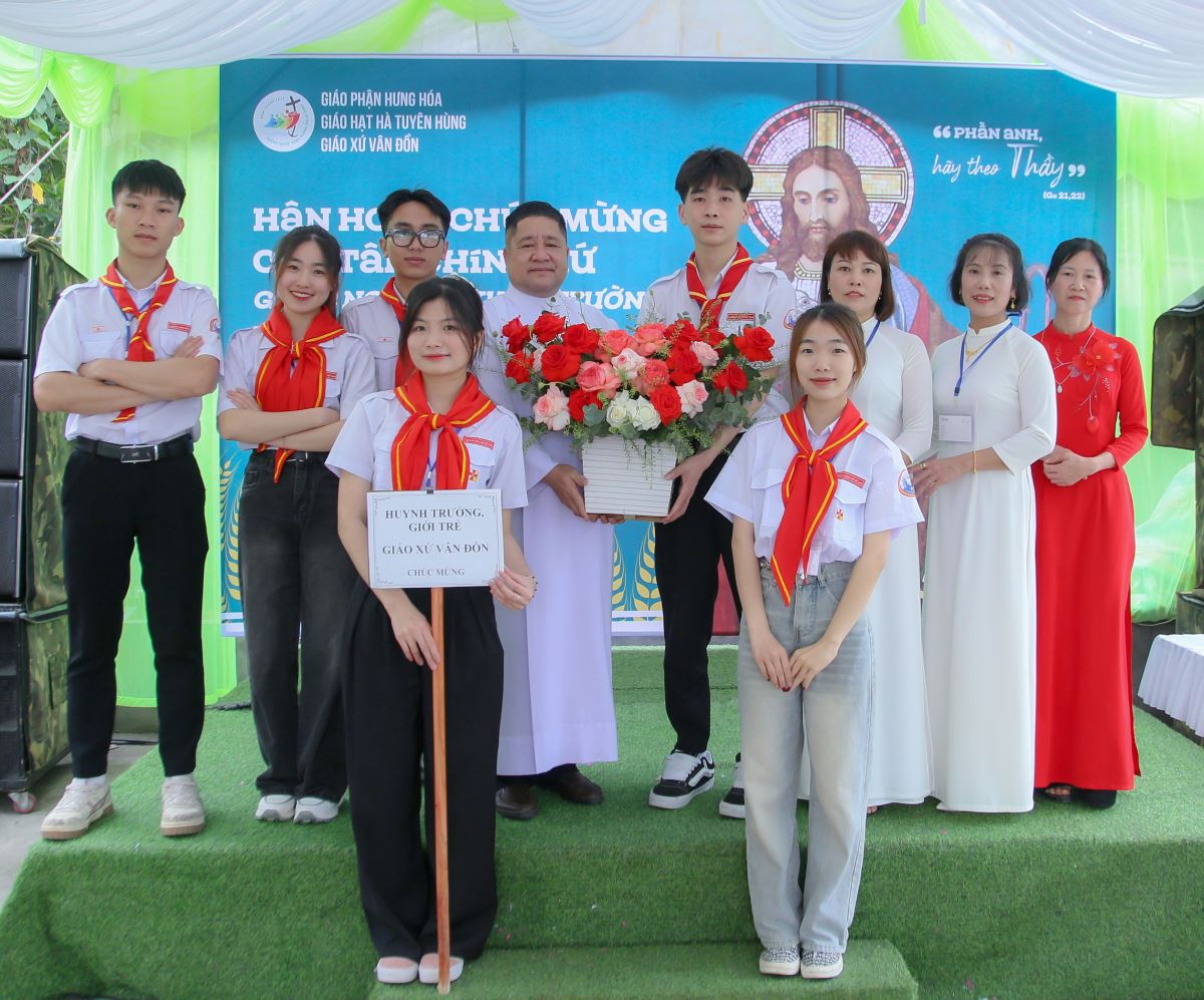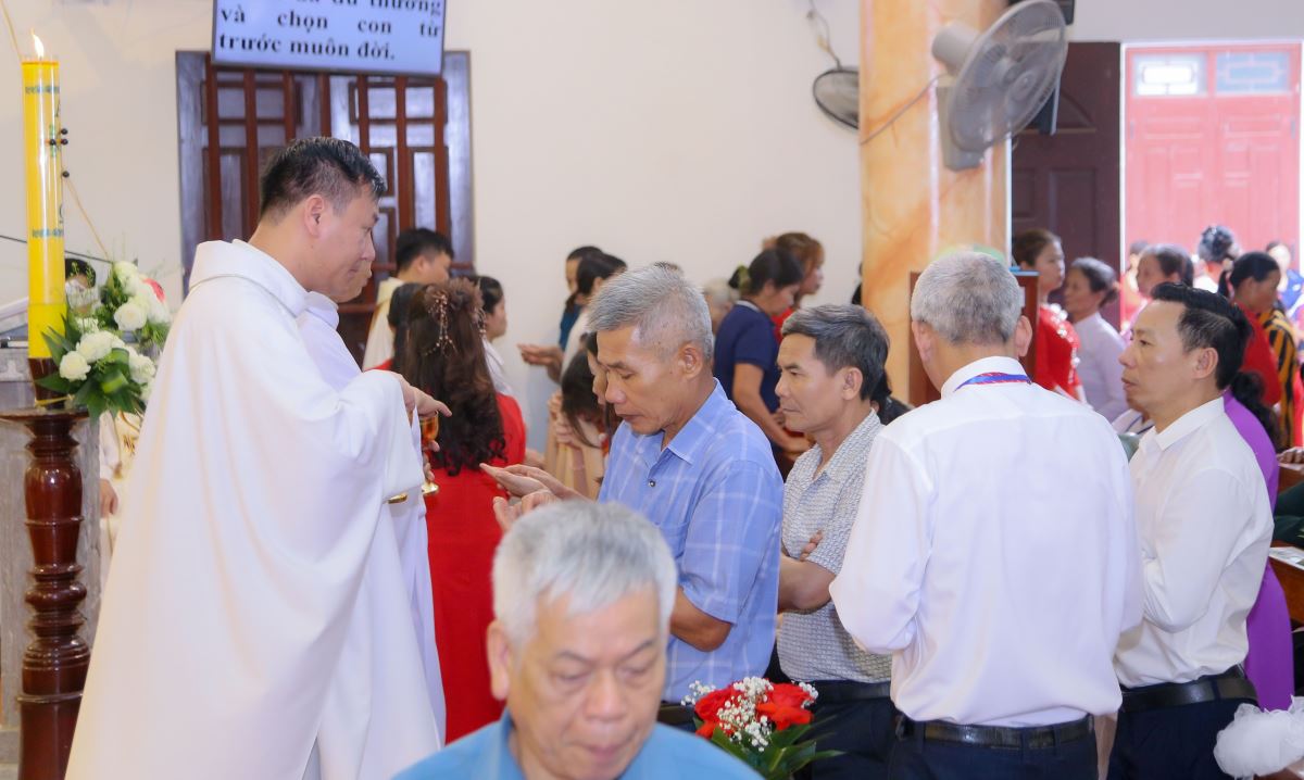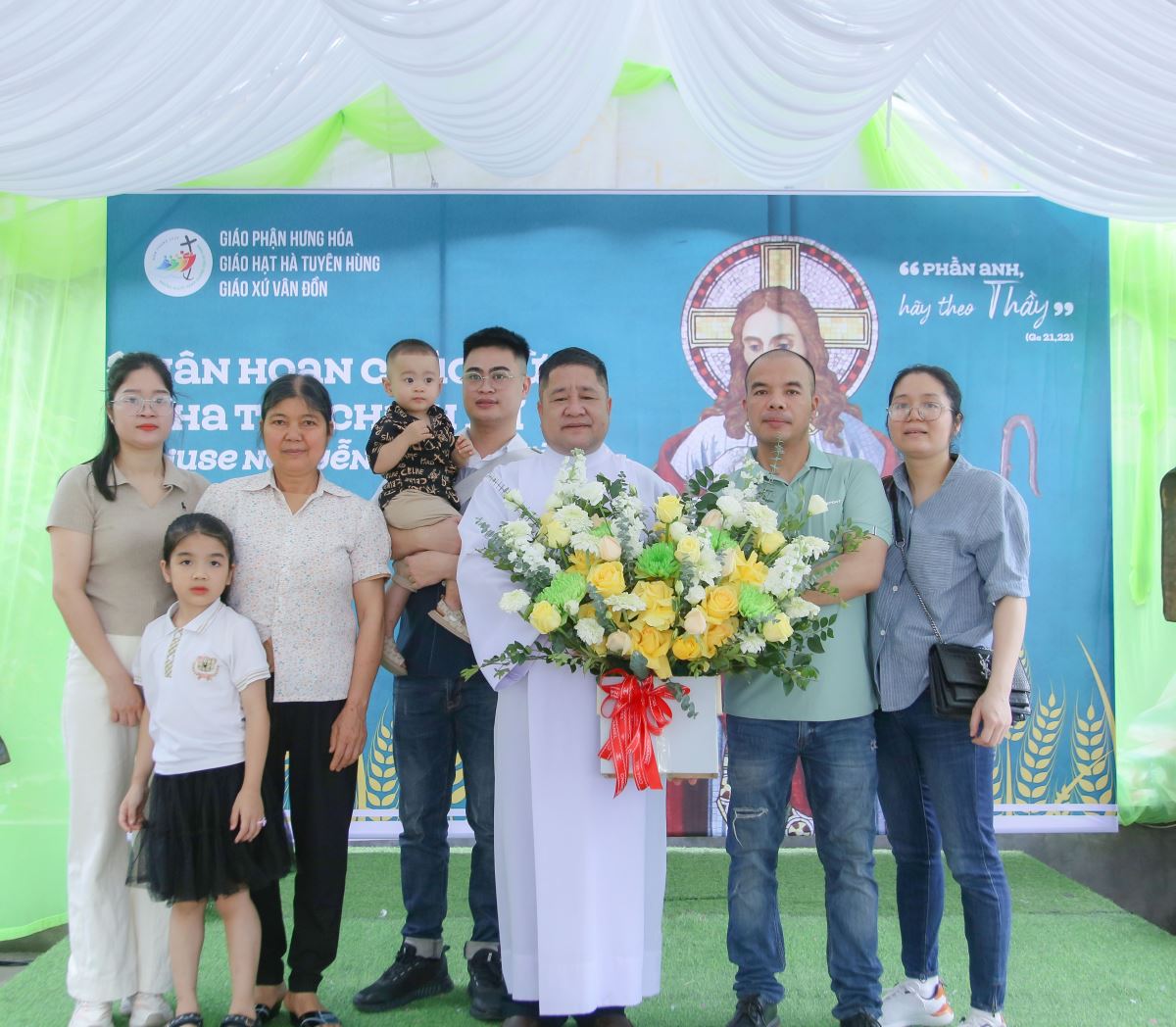 Đại diện cộng đoàn Giáo xứ Vân Đồn tặng hoa chào mừng Cha tân chính xứ Giuse |
