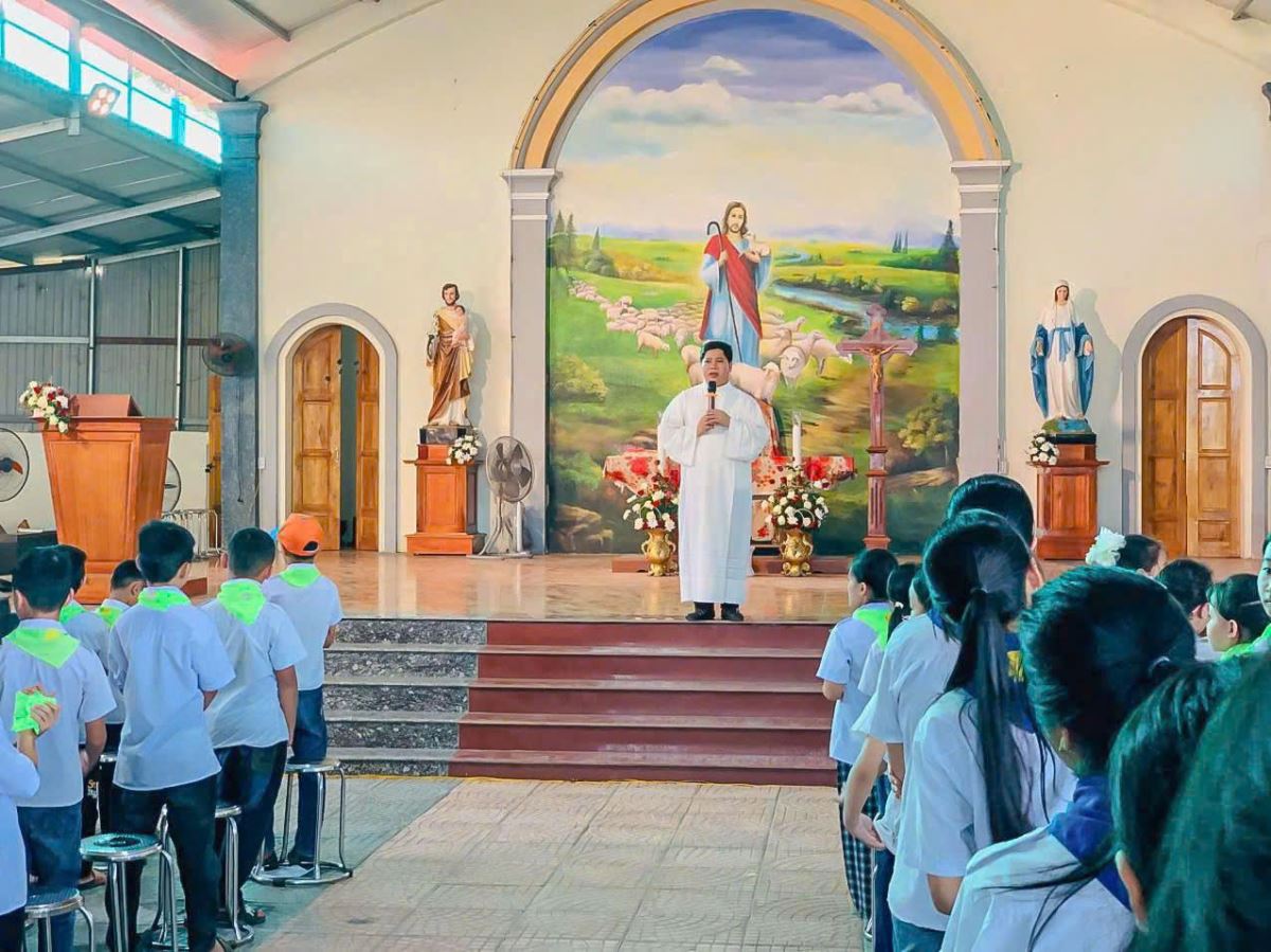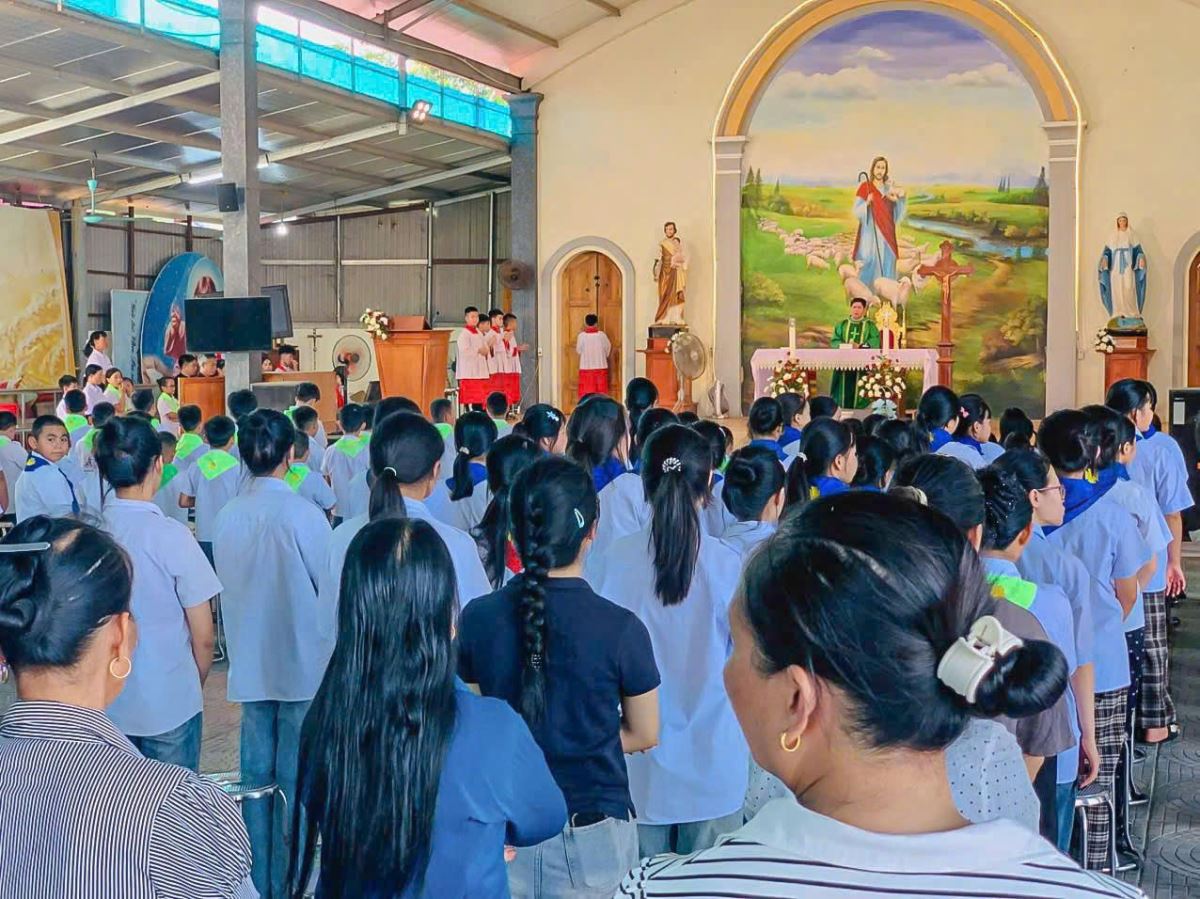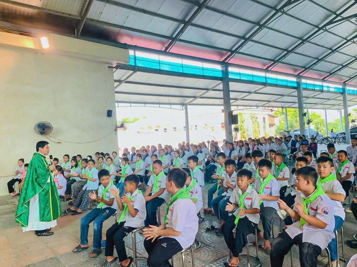 WGPHH – Sau hơn hai tháng học tập, rèn luyện và sinh hoạt, trong đó có 45 em vừa lãnh nhận Bí tích Xưng tội – Rước lễ lần đầu vào ngày 03.8.2025, cùng với các em đang chuẩn bị lãnh nhận Bí tích Thêm sức, chương trình học hè tại giáo xứ Vân Du đã khép lại trong bầu khí hân hoan và đầy ý nghĩa. Cao điểm của ngày bế giảng là Thánh lễ Tạ ơn, đồng thời là Thánh lễ Vọng Chúa Nhật XIX Thường niên Năm C, được cử hành lúc 16g00 thứ Bảy, 09.8.2025, do cha phó Gioan Vũ Ân chủ sự.