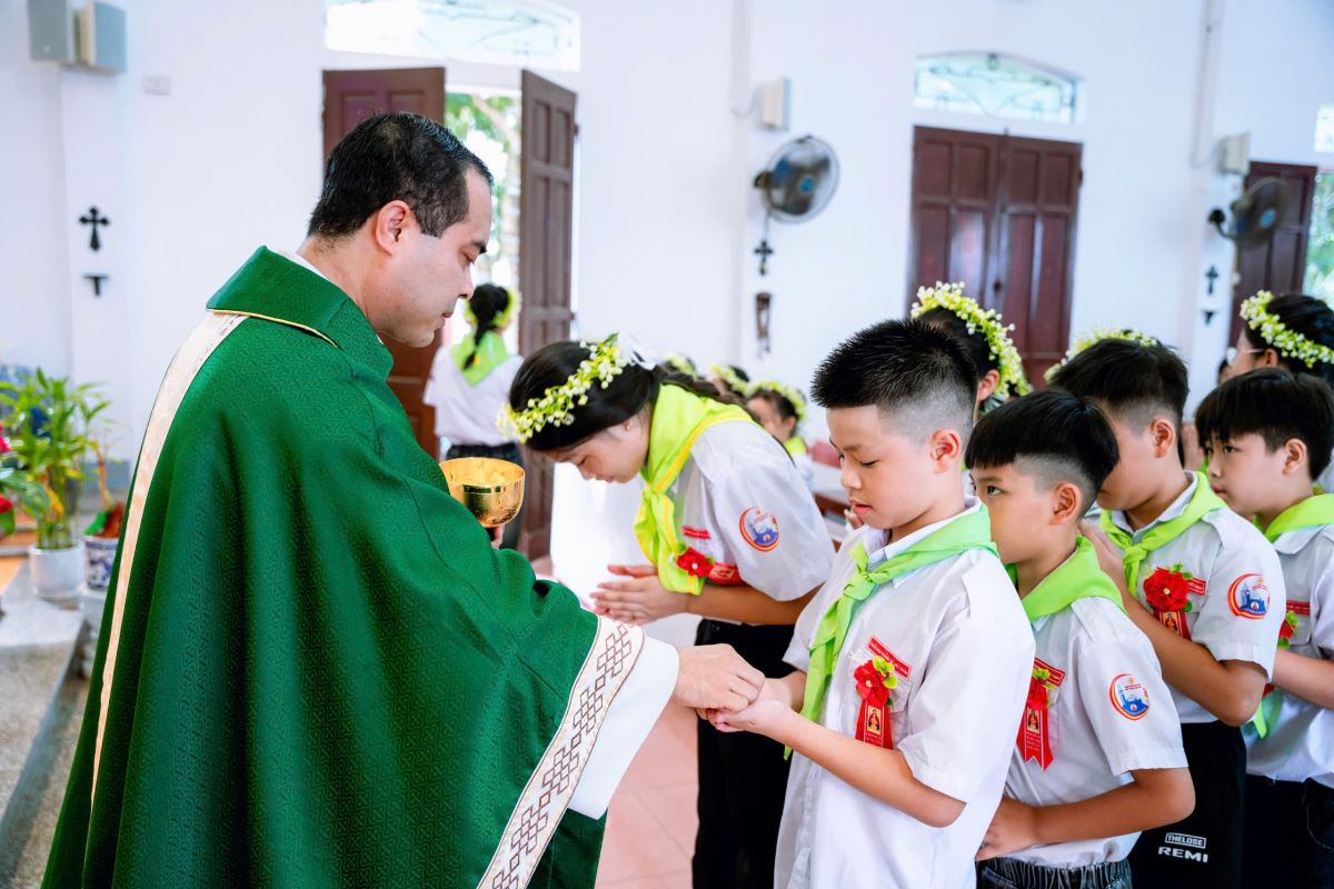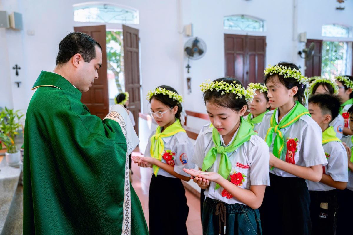 Khoảnh khắc được mở lòng đón nhận ơn tha thứ thật nhẹ nhàng nhưng chan chứa ân tình, trở thành một kỷ niệm thiêng liêng trong hành trình đức tin của mỗi em. Và hôm nay, giữa tiếng thánh ca vang vọng và hương trầm ngào ngạt, các em hân hoan tiến lên bàn thánh, cung kính rước lấy Chúa Giêsu Thánh Thể lần đầu tiên – giây phút đánh dấu một bước ngoặt quan trọng trên con đường trưởng thành đức tin.