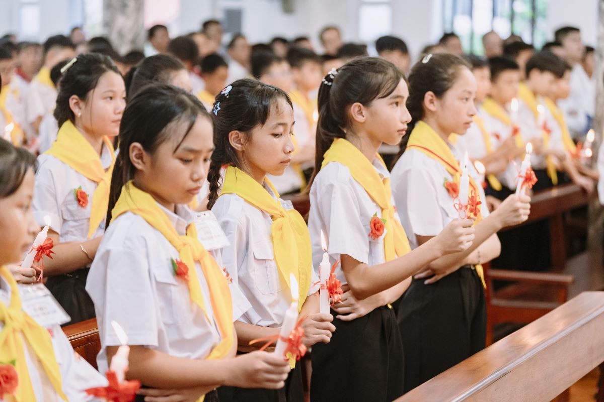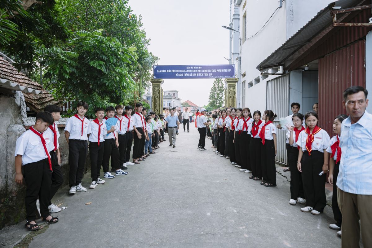 Chiều ngày 30.7.2025 cộng đoàn giáo xứ Vĩnh Thọ hân hoan ngợi khen Thiên Chúa, Đấng là nguồn mạch mọi ân sủng và vui mừng chào đón Đức Cha Đaminh Hoàng Minh Tiến – Giám mục Giáo phận Hưng Hoá về thăm Giáo xứ để ban Bí Tích Thêm Sức cho 99 em thiếu nhi đến độ tuổi trưởng thành. Đồng tế và hiện diện trong thánh lễ có Cha xứ Giuse Nguyễn Văn Ninh, quý Cha đồng tế, quý thầy, cùng quý phụ huynh, thầy cô giáo lý viên, các anh chị huynh dự trưởng và toàn thể cộng đoàn dân Chúa.