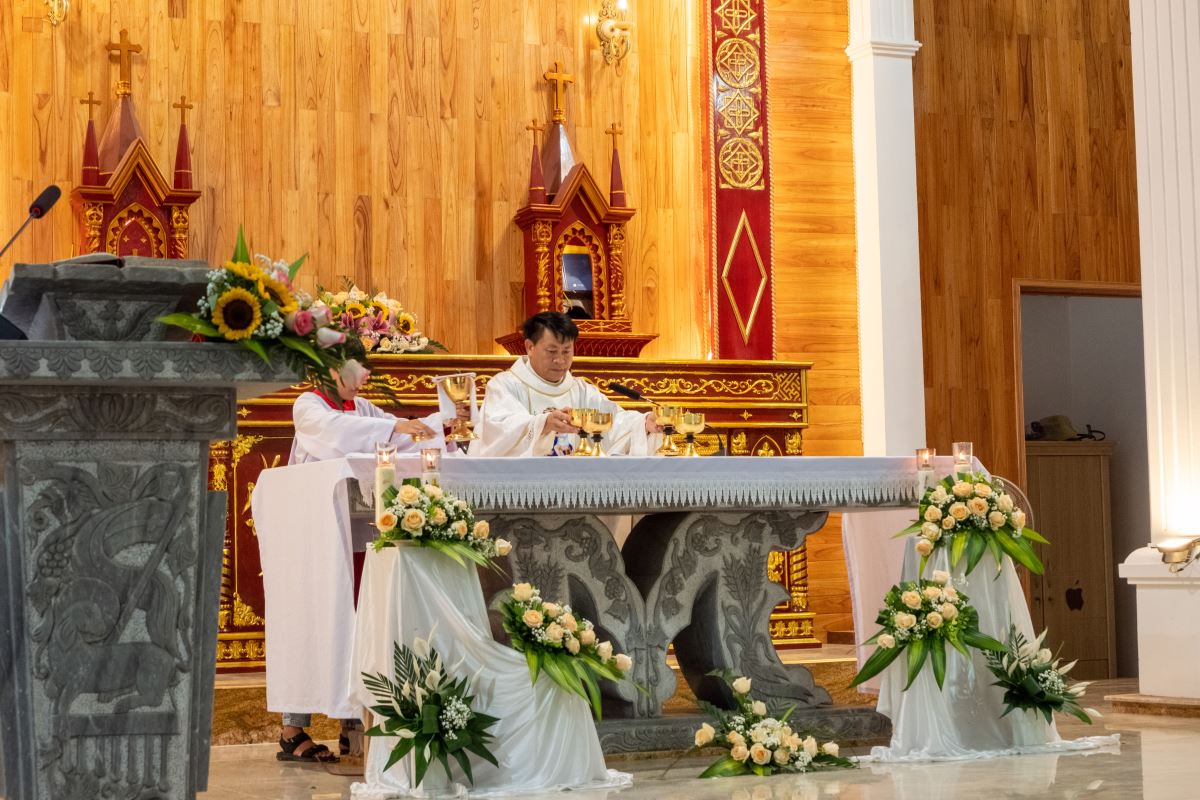 Thánh lễ được cử hành trong bầu khí Phụng vụ trang nghiêm, sốt sắng và đầy tâm tình của mọi thành phần Dân Chúa. Ngôi nhà thờ giáo họ Phú Châu trở nên dấu chỉ sống động diễn tả sự hiệp thông trong gia đình giáo xứ.