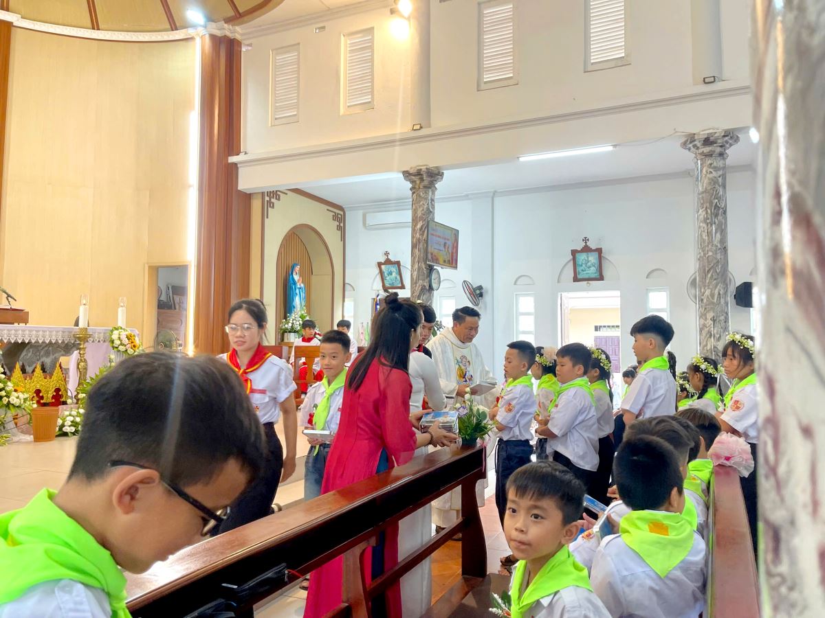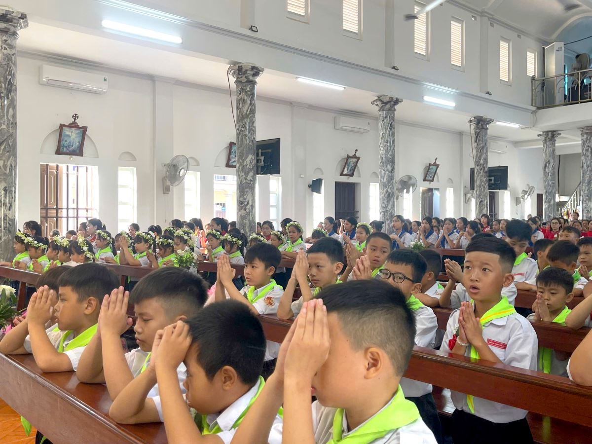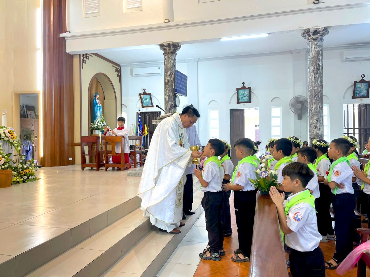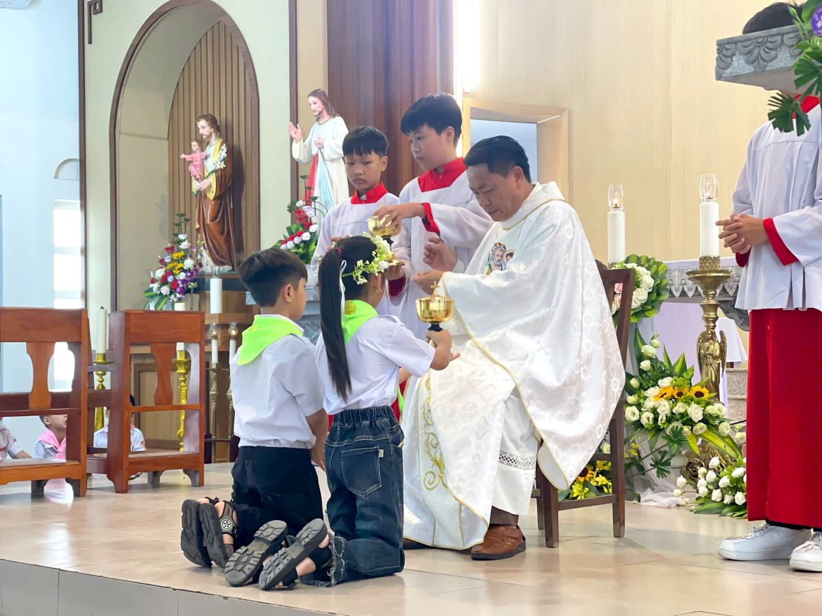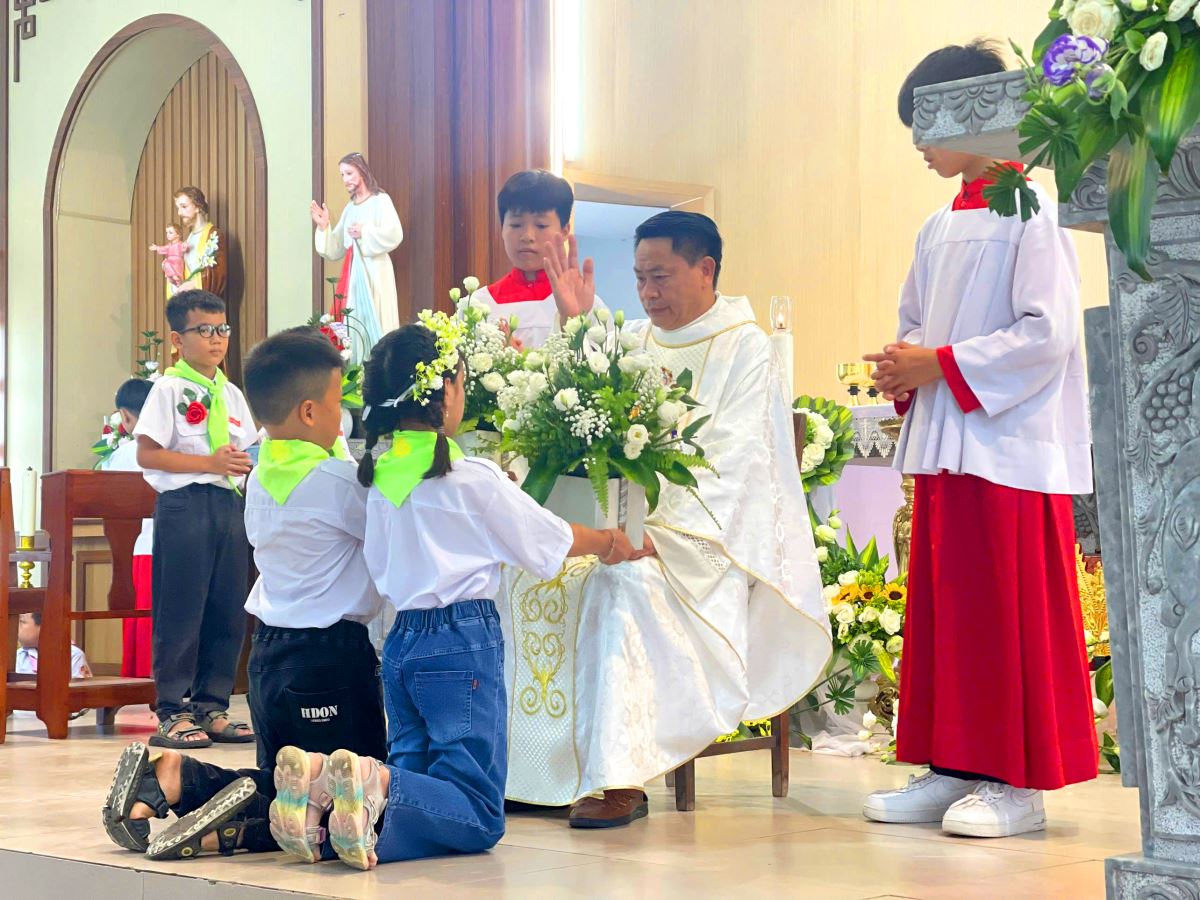 Thánh lễ do cha xứ Giuse Nguyễn Văn Ninh chủ sự, đồng tế có cha cố Giuse Nguyễn Thái Hà, cùng sự tham dự đông đảo của phụ huynh, người thân, quý thầy cô giáo lý viên và cộng đoàn dân Chúa.