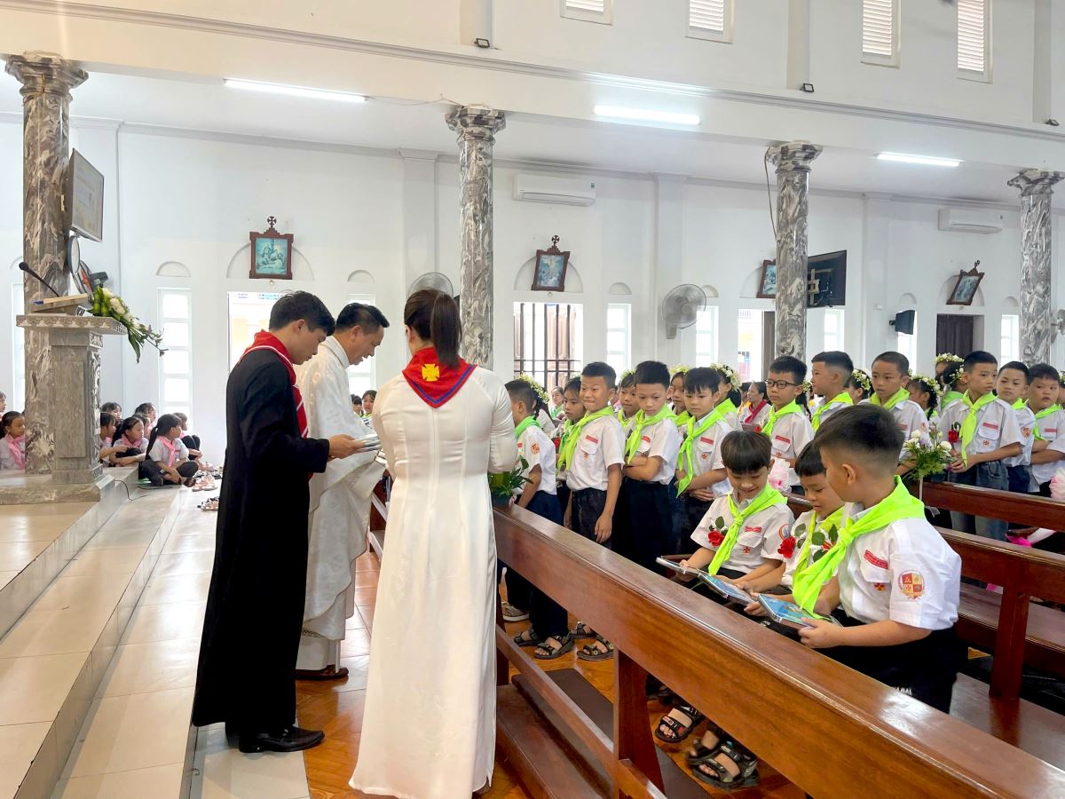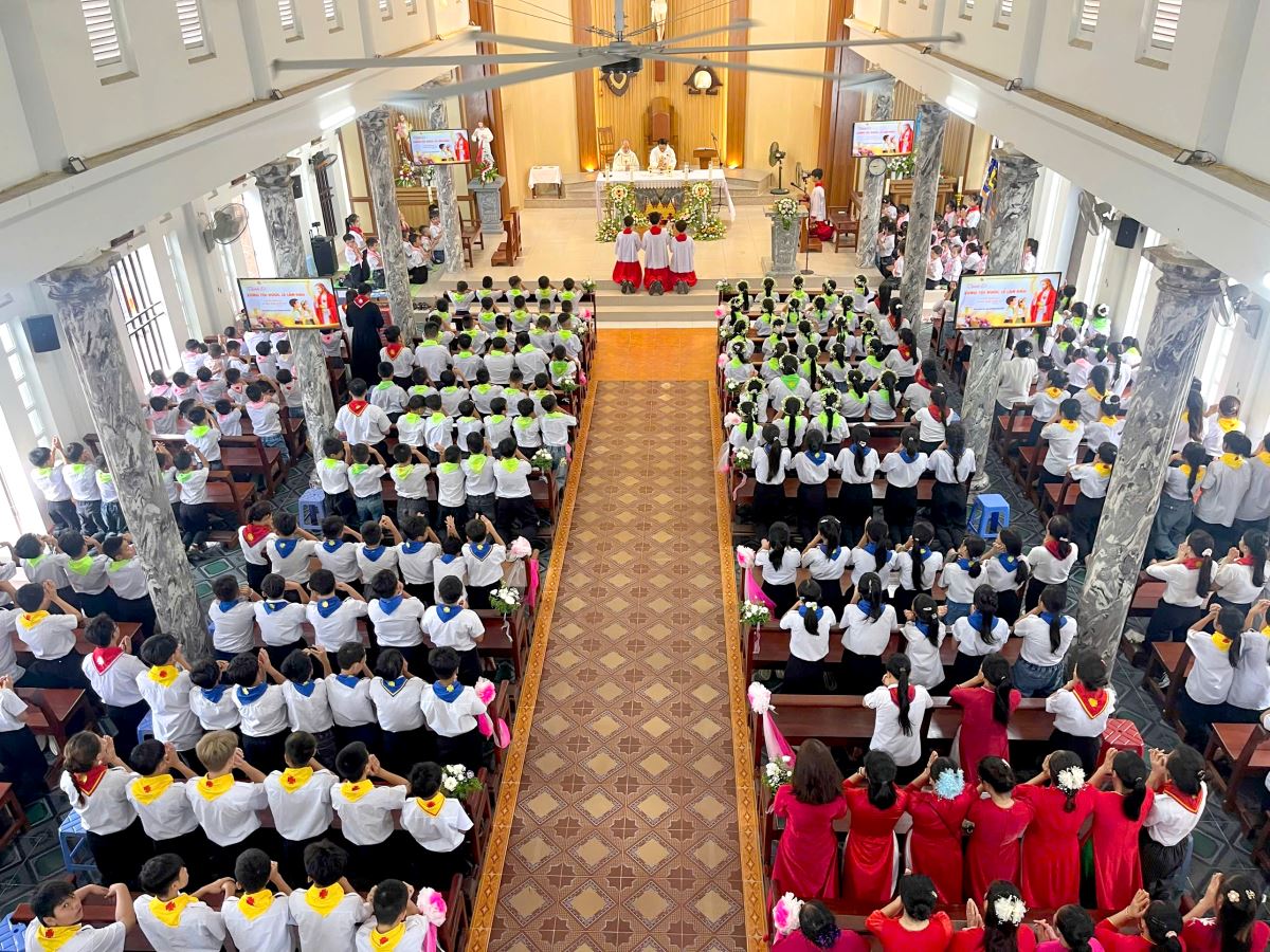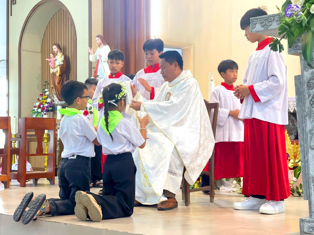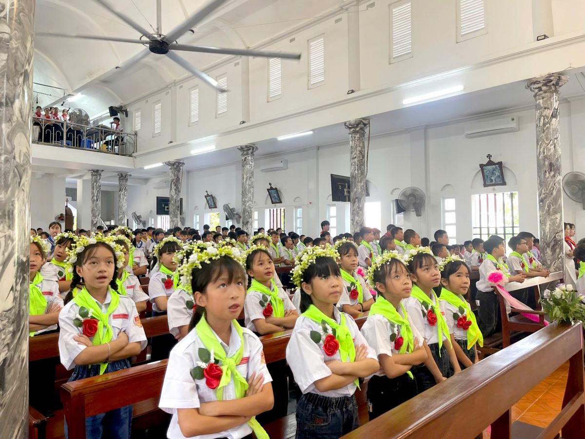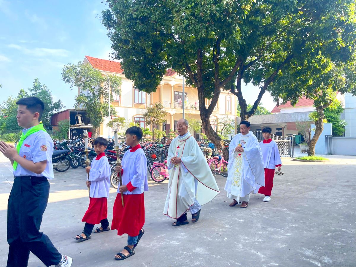 Thánh lễ do cha xứ Giuse Nguyễn Văn Ninh chủ sự, đồng tế có cha cố Giuse Nguyễn Thái Hà, cùng sự tham dự đông đảo của phụ huynh, người thân, quý thầy cô giáo lý viên và cộng đoàn dân Chúa.