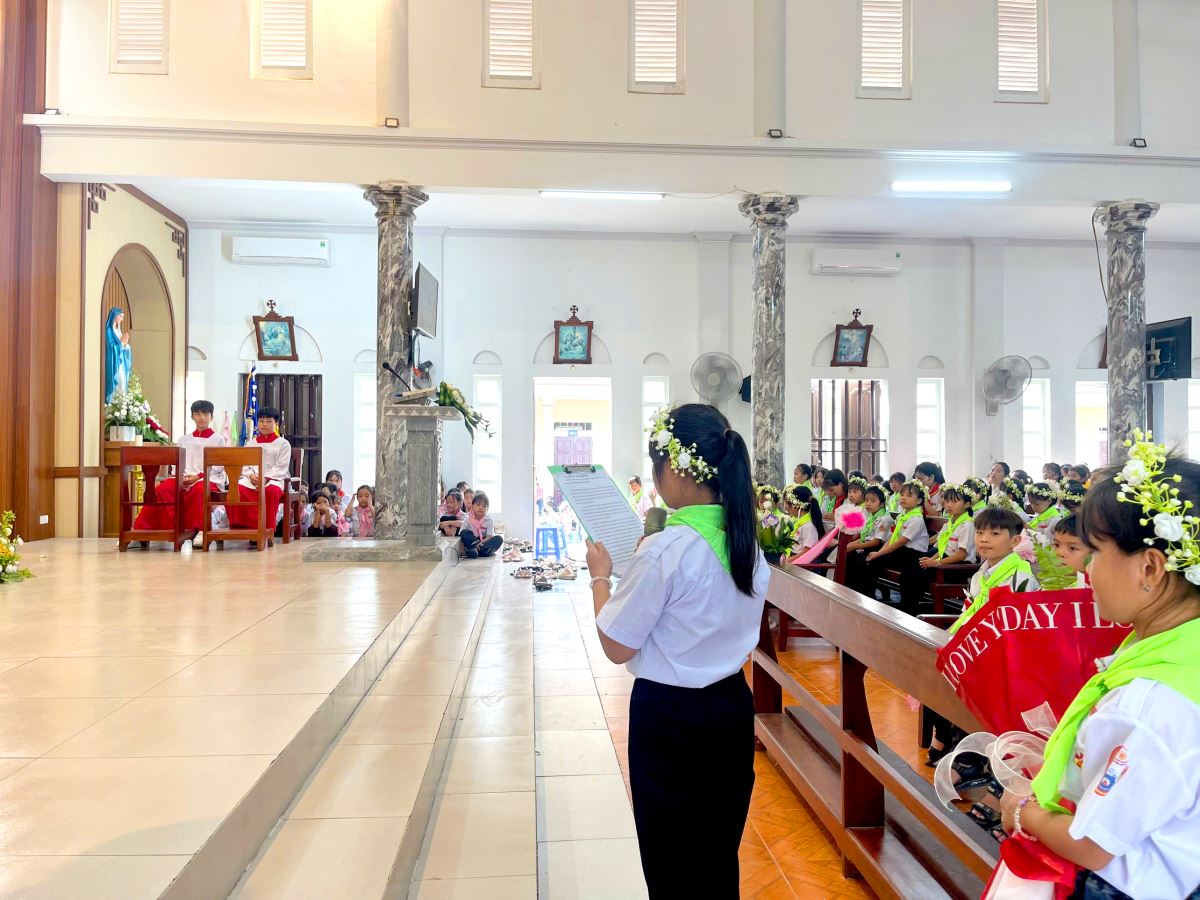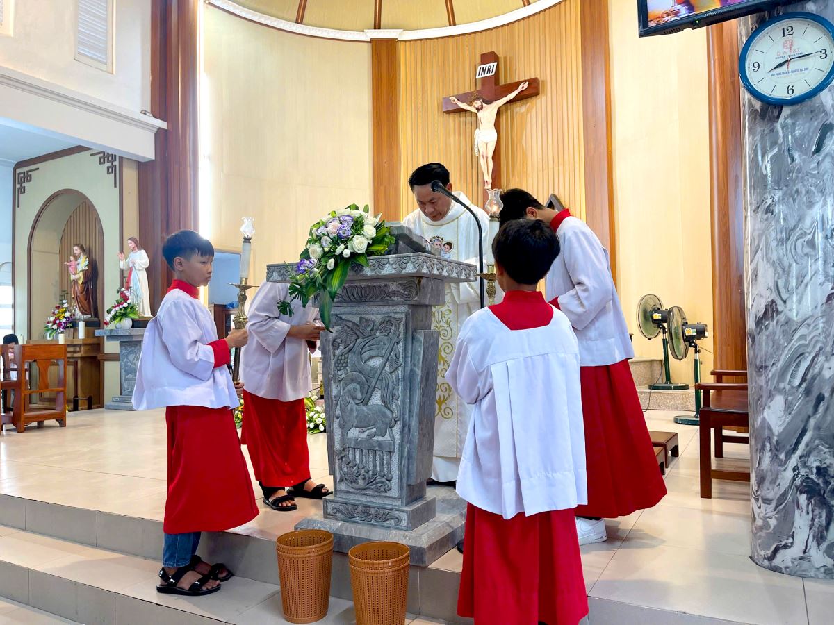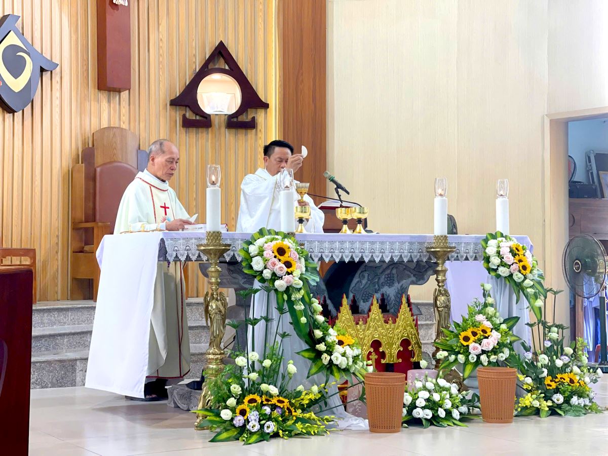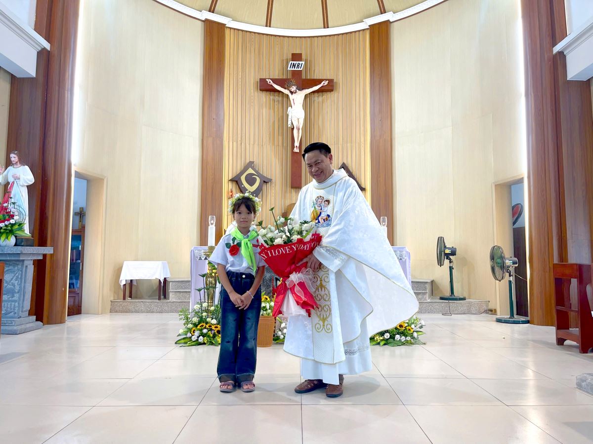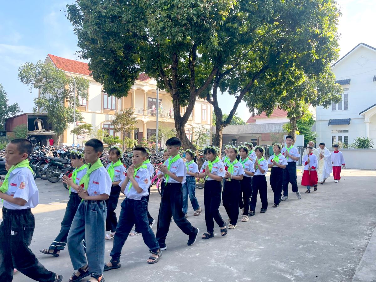 Thánh lễ do cha xứ Giuse Nguyễn Văn Ninh chủ sự, đồng tế có cha cố Giuse Nguyễn Thái Hà, cùng sự tham dự đông đảo của phụ huynh, người thân, quý thầy cô giáo lý viên và cộng đoàn dân Chúa.