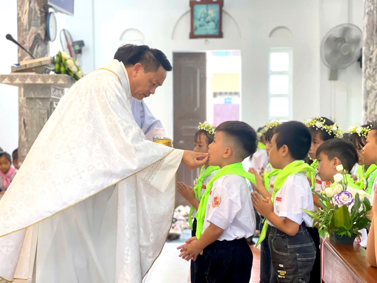 Trước đó, vào chiều ngày 22.8.2025, các em đã sốt sắng lãnh nhận Bí tích Hòa Giải, lần đầu tiên được Chúa thứ tha và cảm nhận sâu sắc lòng thương xót của Ngài. Qua đó, tâm hồn các em trở nên trong sạch, sẵn sàng để rước Chúa Giêsu Thánh Thể vào lòng lần đầu tiên – một hồng ân cao cả và trọn vẹn.