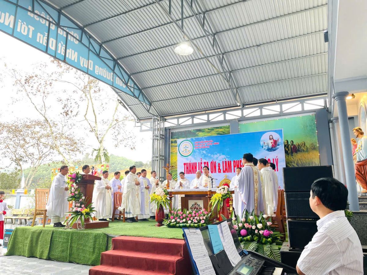 Thánh lễ Tạ ơn do cha quản hạt Giuse Nguyễn Viết Hiệp chủ tế, được cử hành trong bầu khí trang nghiêm, sốt sắng, thấm đượm tâm tình tri ân Thiên Chúa vì muôn hồng ân Ngài đã thương ban trên giáo xứ, đặc biệt qua việc hoàn thành công trình Nhà Giáo lý.