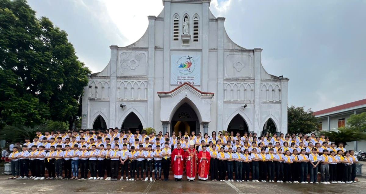 WGPHH - Vào lúc 8 giờ sáng thứ Bảy ngày 16 tháng 8 năm 2025, cộng đoàn giáo xứ Yên Phú hân hoan chào đón Đức Cha Phụ tá Phaolô Nguyễn Quang Đĩnh đến thăm mục vụ và chủ sự Thánh lễ ban Bí tích Thêm Sức cho 159 em thiếu nhi trong giáo xứ.