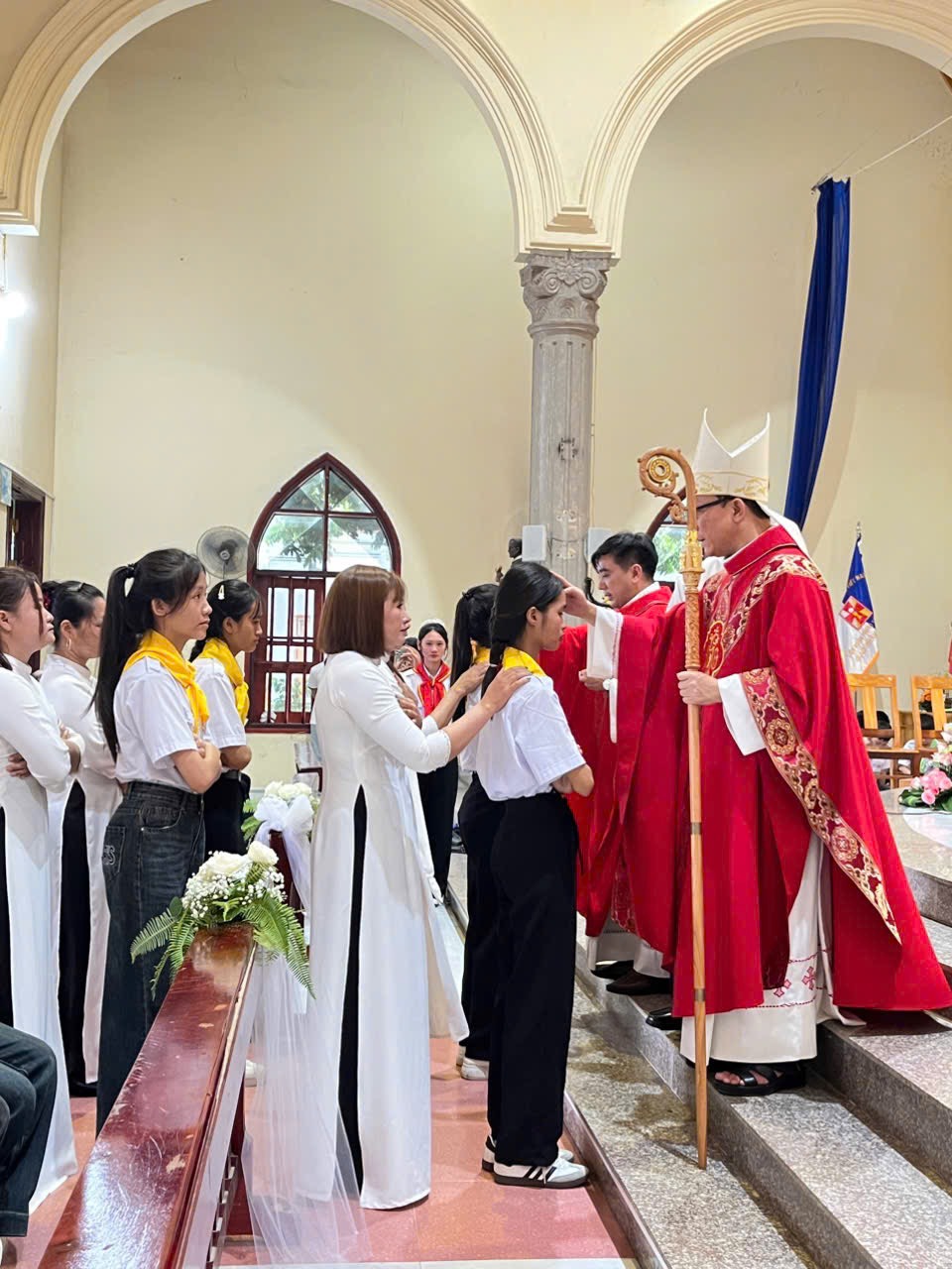 Ngay từ sáng sớm, ngôi thánh đường giáo xứ Yên Phú đã rộn ràng và trang nghiêm với sự hiện diện đông đảo của quý cha, quý tu sĩ, các bậc phụ huynh cùng toàn thể cộng đoàn dân Chúa. Trong niềm vui hiệp thông, mọi người cùng cầu nguyện cho các em lãnh nhận Bí tích Thêm Sức được tràn đầy ơn Chúa Thánh Thần để trở nên chứng nhân sống động cho Tin Mừng giữa lòng thế giới hôm nay.