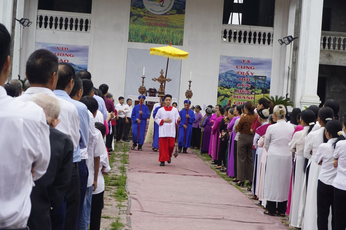 Cộng đoàn tín hữu theo sau Thánh giá, tiến vào Nhà thờ |