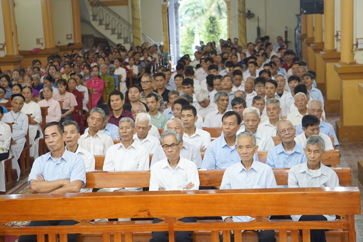 Vào lúc 07g30 sáng, đông đảo tín hữu quy tụ tại sảnh nhà giáo lý để tham dự nghi thức khởi sự hành hương do
