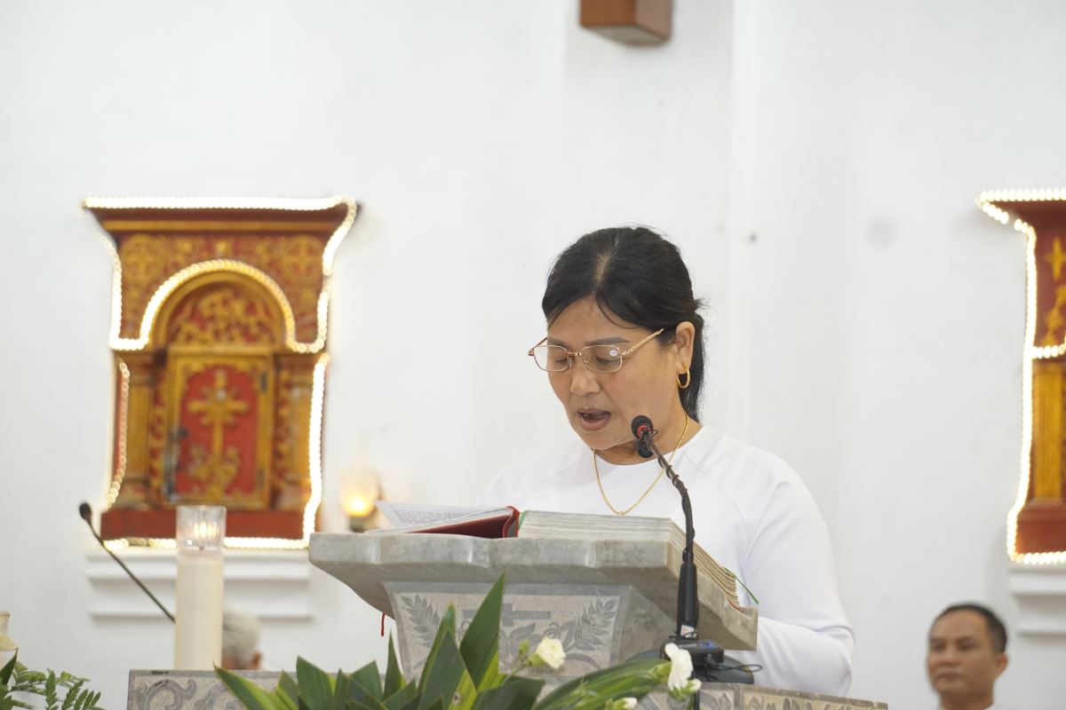 cha Giuse Nguyễn Đức Khoái chủ sự, sau đó cộng đoàn tín hữu theo sau Thánh giá, tiến vào Nhà thờ để chuẩn bị tâm hồn lãnh nhận các ơn cao trọng trong Năm Thánh 2025.