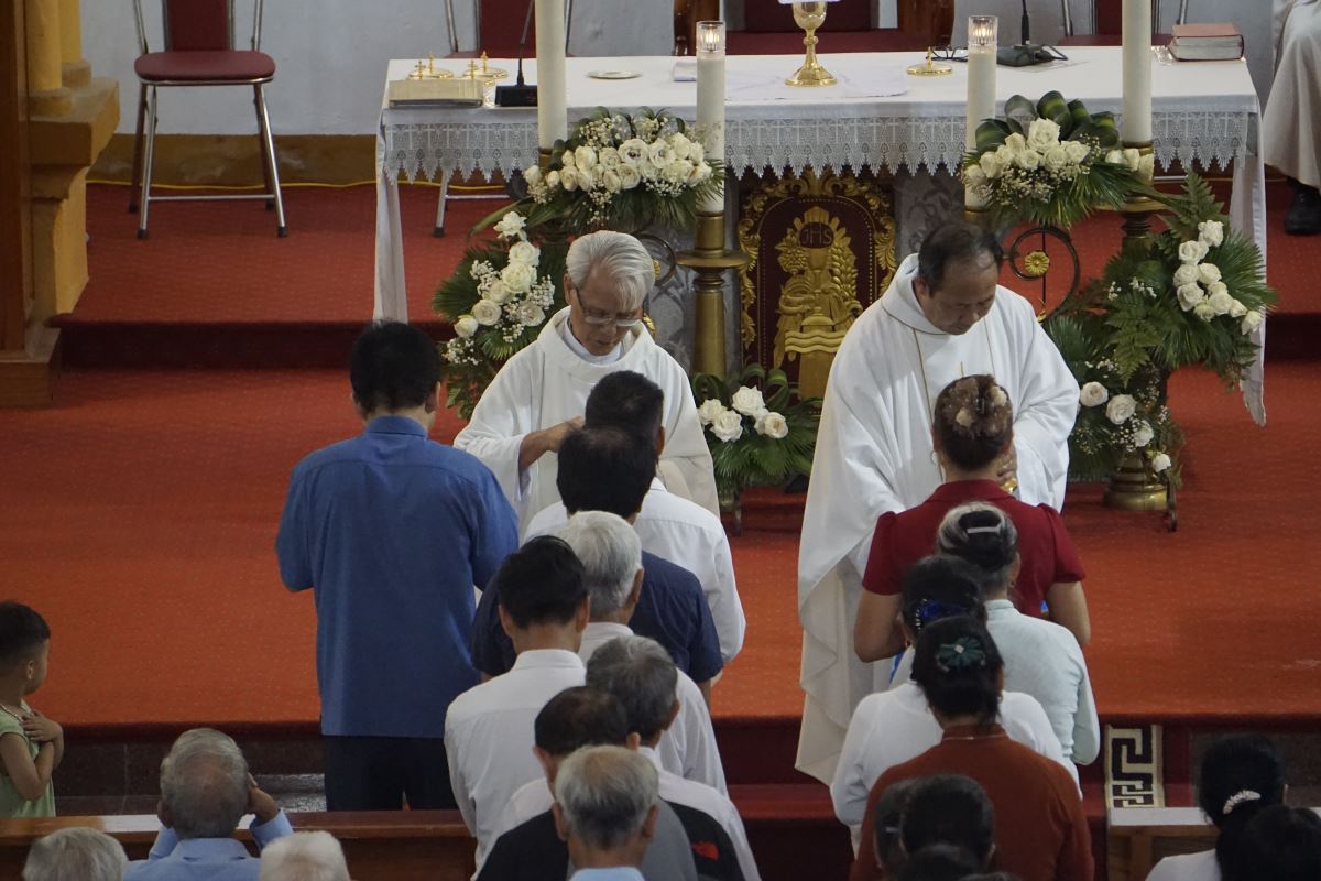 Cao điểm của ngày hành hương là Thánh lễ do cha Giuse Nguyễn Đức Khoái chủ tế, cùng đồng tế có các cha trong phiên trực.