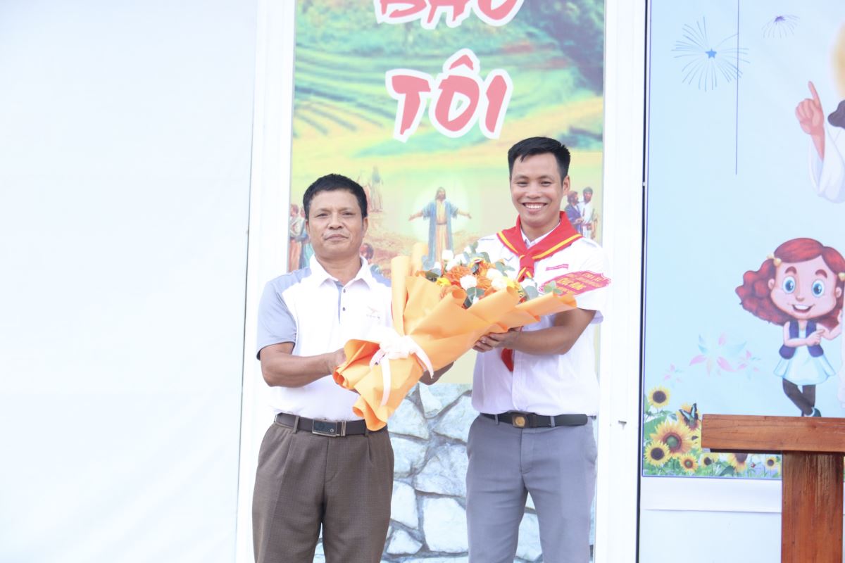 Đại diện HĐGX - BHG ông Giuse Nguyễn Văn Công, Chủ tịch Hội đồng Giáo xứ đã ghi nhận những thành quả năm học qua, gửi lời chúc mừng và trao lẵng hoa tươi thắm đến Ban giáo vụ.