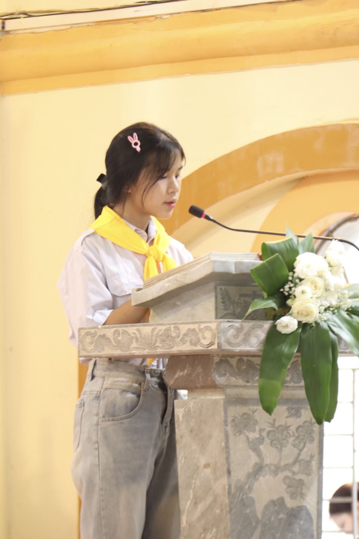 Phát biểu tại buổi lễ, Đại diện cho quý Dì cộng đoàn Mến Thánh Giá, đánh giá cao những kết quả tích cực trong năm học qua, là những người đồng hành trực tiếp, quý Dì cũng chỉ ra những mặt còn tồn tại, cần khắc phục, và góp ý cho Ban Giáo vụ cần nghiên cứu triển khai số hoá một số hoạt động trong năm học mới, như việc điểm danh tự động học sinh, thông báo kết quả học tập, chuyên cần của học sinh tới phụ huynh qua nền tảng số để phụ huynh nắm bắt kịp thời quá trình học tập của con mình.