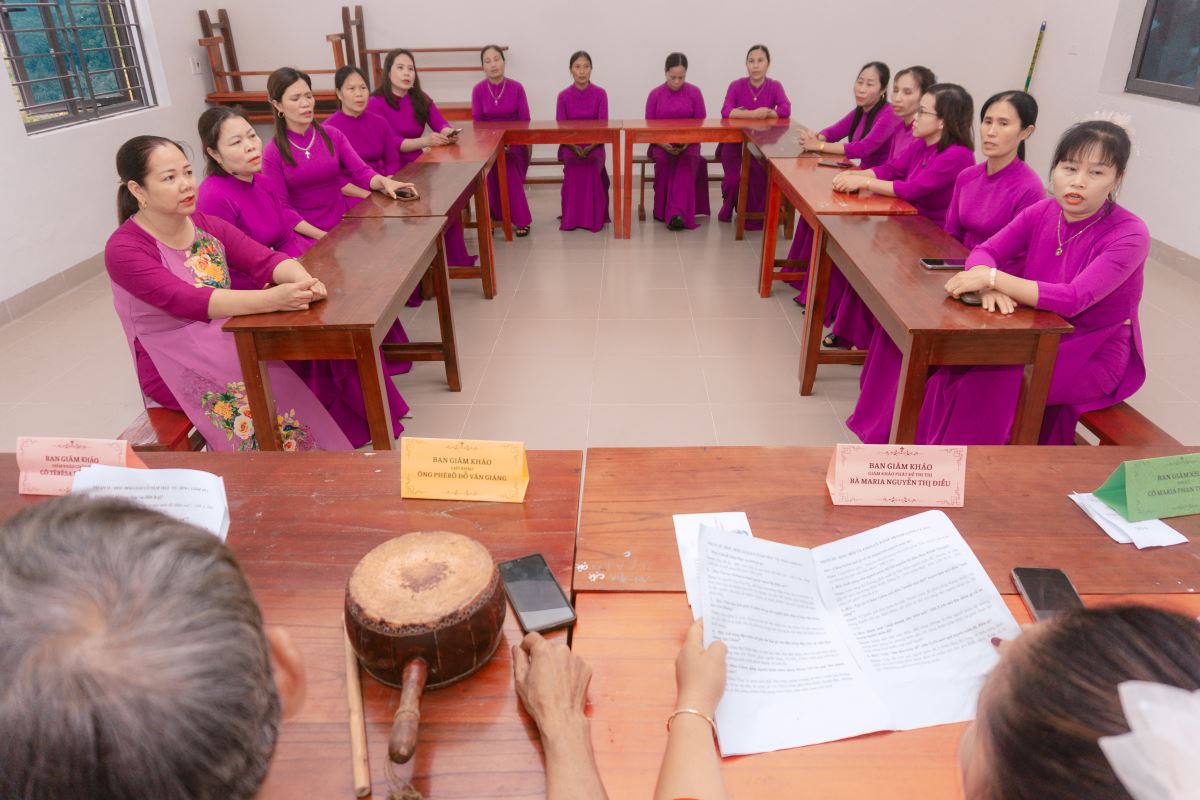 Các thí sinh sau đó trở về vị trí, bước vào phần thi chính thức trong bầu khí nghiêm túc và trật tự. Theo tổng hợp từ Ban Tổ chức, thành phần tham gia năm nay đa dạng về độ tuổi, trong đó các lớp đại nam, đại nữ (là nhóm tuổi trẻ, đang trong độ tuổi lao động) chiếm tỷ lệ lớn. Đây là tín hiệu tích cực, cho thấy các thành viên không chỉ tích cực trong đời sống xã hội mà còn ý thức học hỏi, gắn bó với đời sống đức tin. Bên cạnh đó, hội thi ghi nhận sự hiện diện của các cụ cao niên và các thành phần giới trẻ, tạo nên sự nối kết giữa các thế hệ trong cộng đoàn.
