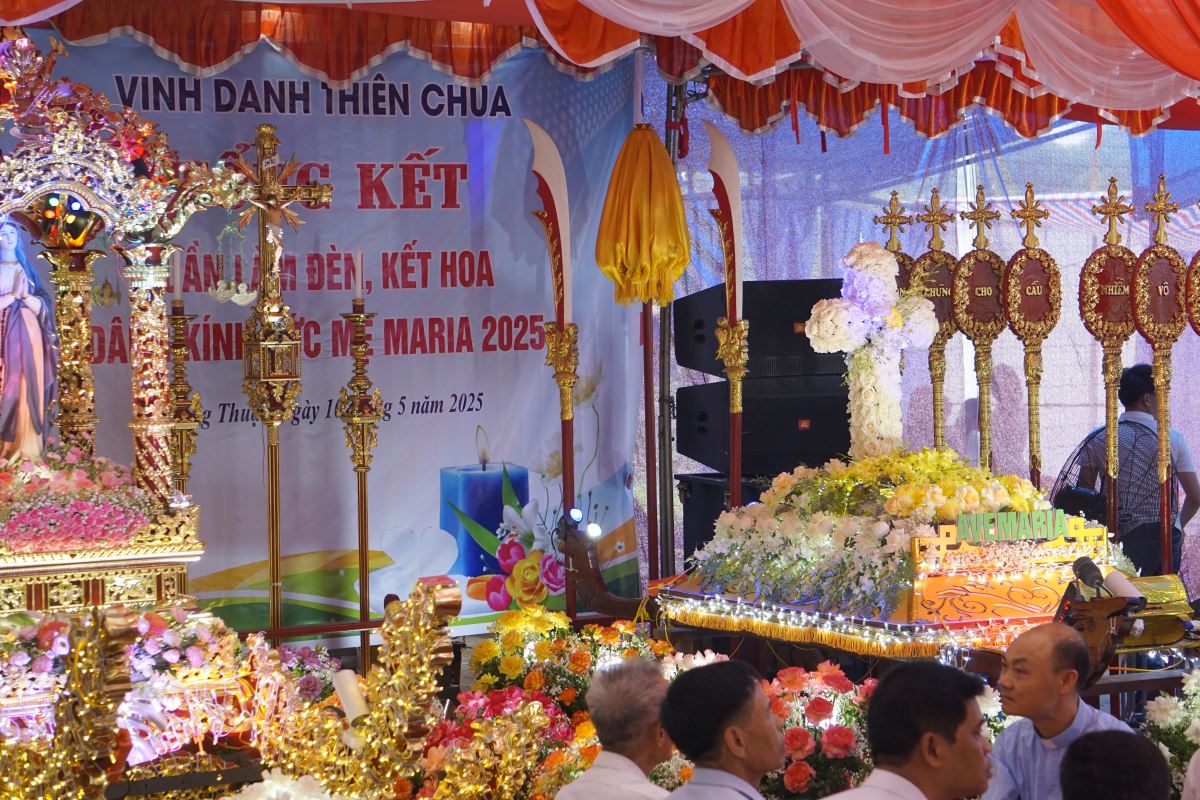 Buổi rước kiệu và dâng hoa khép lại, nhưng âm hưởng của lòng mến Mẹ vẫn còn đọng lại trong lòng mỗi tín hữu. Xin cho từng cánh hoa dâng lên hôm nay không chỉ là hình ảnh trang trí, tôn kính bề ngoài, mà còn là lời hứa âm thầm sống đẹp lòng Mẹ trong từng việc nhỏ hằng ngày. Và từ cuộc rước này, Xin Mẹ Maria che chở cầu bầu cho xứ đạo chúng con luôn mãi an vui, hướng dẫn và nâng đỡ mọi gia đình trên hành trình sống đạo giữa cuộc đời.