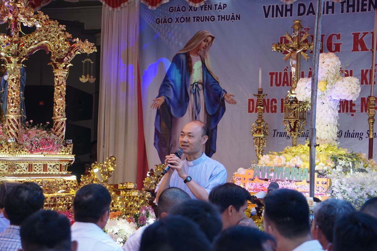 Trên tinh thần đó, Thứ Bảy, ngày 10 tháng 5 năm 2025, Giáo xóm Trung Thuận thực hiện phiên thứ nhất chương trình rước kiệu, dâng hoa kính Đức Mẹ Maria.