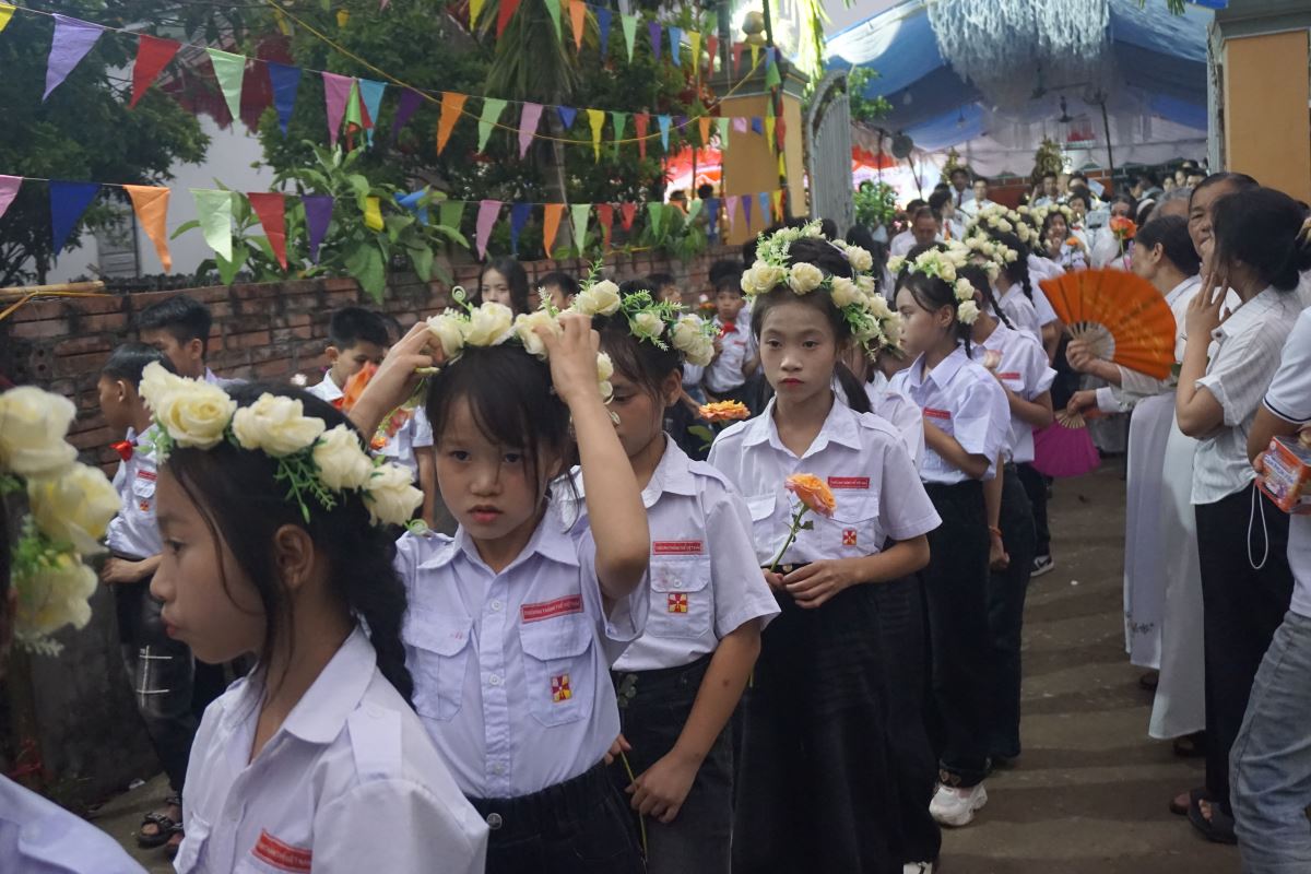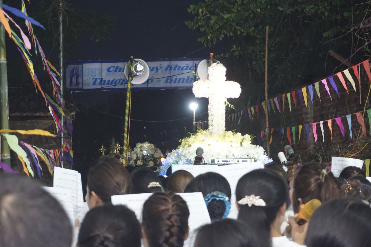 Sau cuộc rước, các em thiếu nhi trong đội hoa của giáo xóm đã dâng lên Mẹ những đóa hoa thiêng liêng qua các cử điệu thánh thiện và đầy cảm xúc. Cao điểm là Thánh lễ tạ ơn được cử hành trang nghiêm, đong đầy tâm tình biết ơn và phó thác.