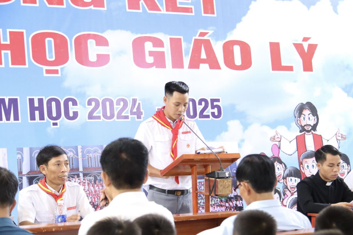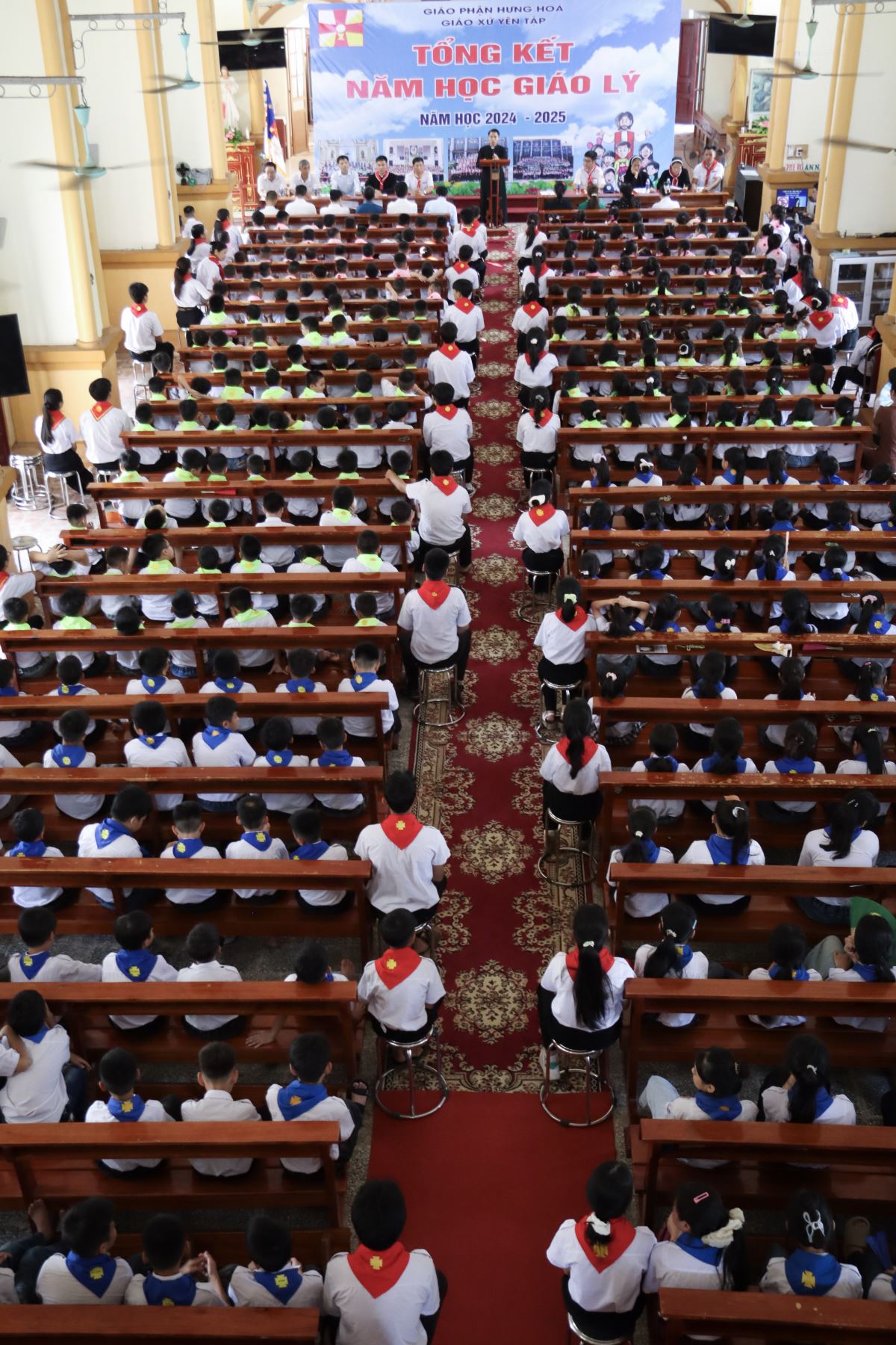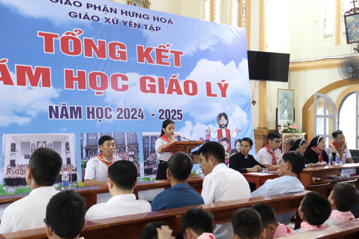 Báo cáo tổng kết do thầy Phêrô Nguyễn Tiến Hân - Trưởng ban Giáo vụ trình bày cho biết: hiện giáo xứ có 41 giáo lý viên, Ban Giáo vụ gồm 5 thành viên. Trong năm học vừa qua, có 663/855 em trong độ tuổi tham dự thường xuyên (đạt 77,54%). Nhờ sự đồng hành tận tình của quý Dì và giáo lý viên, nhiều em đã lãnh nhận các bí tích và chứng chỉ: 75 em Xưng tội và Rước lễ lần đầu, 161 em lãnh nhận Bí tích Thêm sức, 29 em hoàn tất chương trình giáo lý Dự tòng và Hôn nhân, 46 em nhận chứng chỉ giáo lý Kinh Thánh và 52 em nhận chứng chỉ giáo lý Sống Đạo. Phong trào Thiếu Nhi Thánh Thể cũng phát triển mạnh với nhiều em được thăng ngành, đặc biệt 29 em lớp cuối đã hoàn tất chương trình giáo lý căn bản, được khích lệ bước vào đời sống trưởng thành trong đức tin.