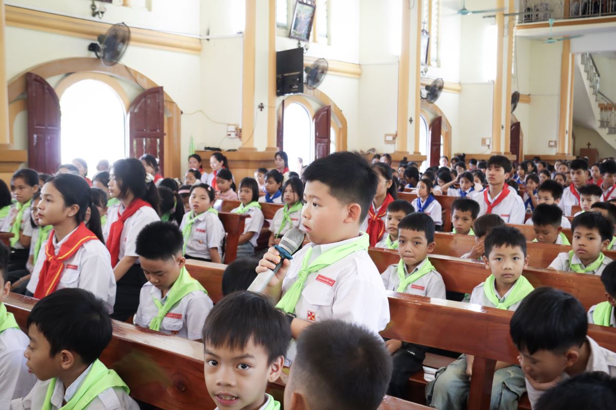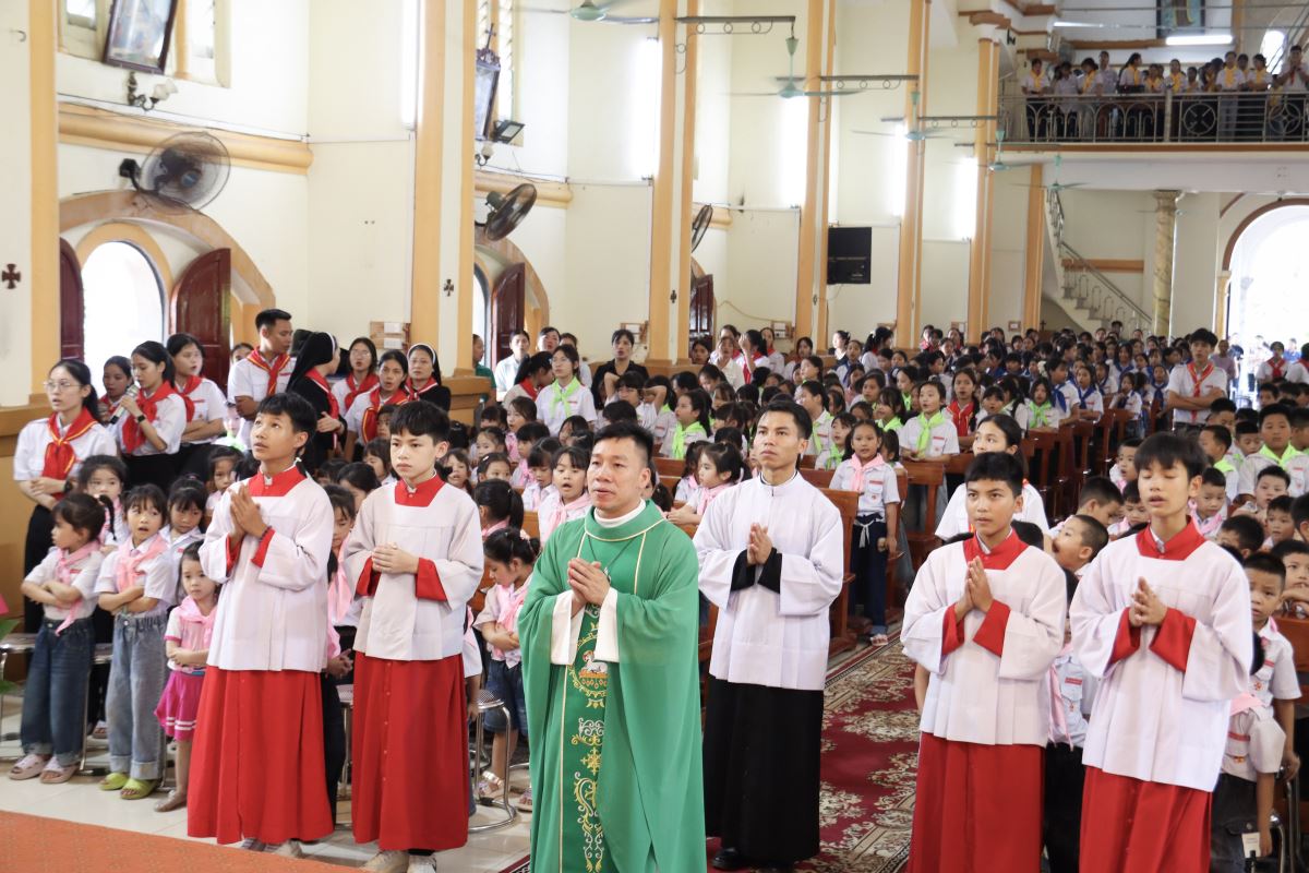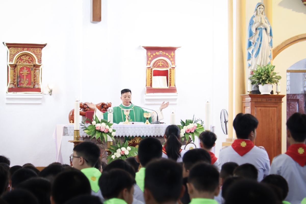 Trong bài giảng, khởi đi từ bài Tin Mừng theo thánh Luca, Cha Giuse mời gọi các em thiếu nhi hãy biết “chiến đấu” với thói hư tật xấu, sống quảng đại, siêng năng tham dự Thánh lễ, chăm chỉ học giáo lý, vâng lời ông bà cha mẹ và thầy cô, để trở nên những người con ngoan của Chúa và của Hội Thánh. Cha nhấn mạnh: việc học giáo lý không chỉ là bổn phận, nhưng còn là con đường gặp gỡ Chúa Giêsu, giúp các em biết sống đức tin và làm chứng cho Tin Mừng trong gia đình, học đường và xã hội.