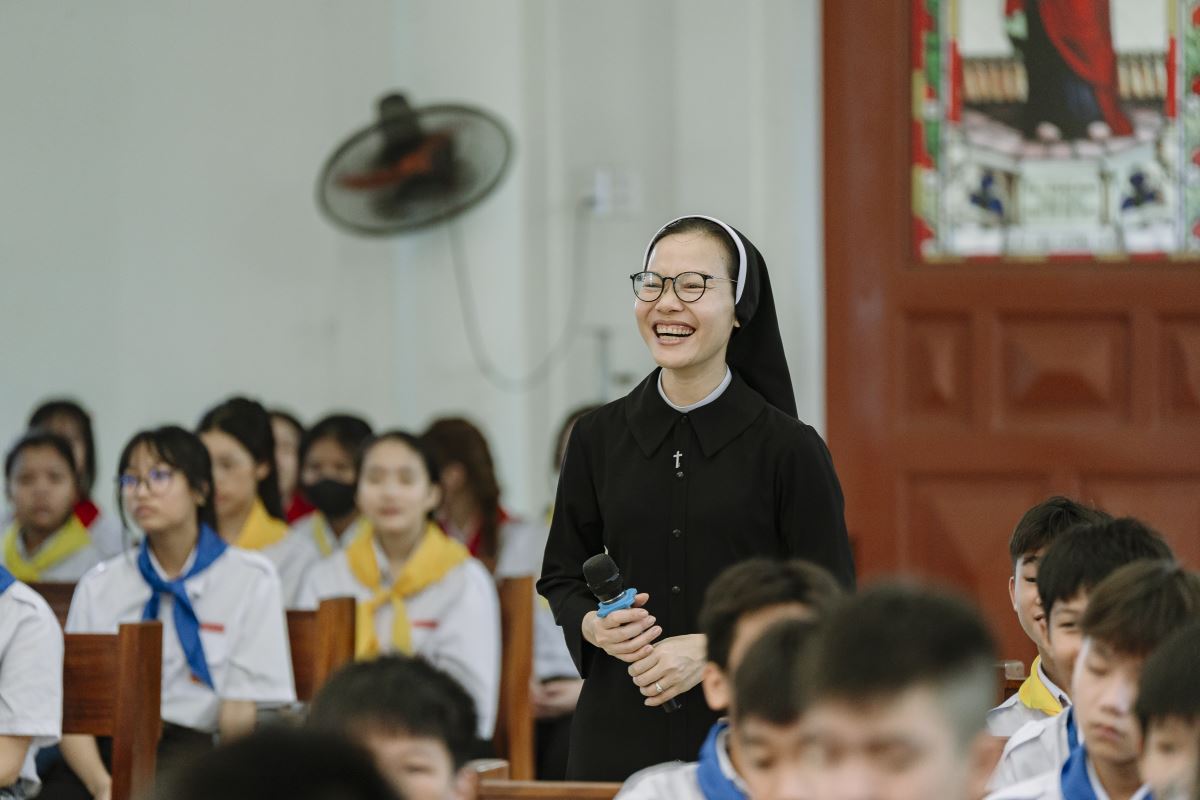 Trong buổi giao lưu, các sơ và các thầy lắng nghe, và giải đáp những thắc mắc ngây thơ của các em thiếu nhi về đời sống tu trì. Từ câu hỏi đơn sơ “Đi tu có khó không?” cho đến những thắc mắc rất đời thường “Đi tu có được ăn vặt không?”, tất cả đều được giải thích với tinh thần vui tươi và gần gũi. Nhờ đó, các em cảm nhận đời sống thánh hiến không xa lạ, nhưng thật gần gũi và chan chứa tình yêu thương của Thiên Chúa.